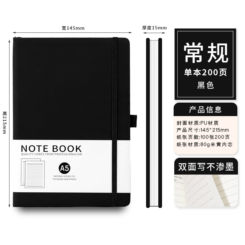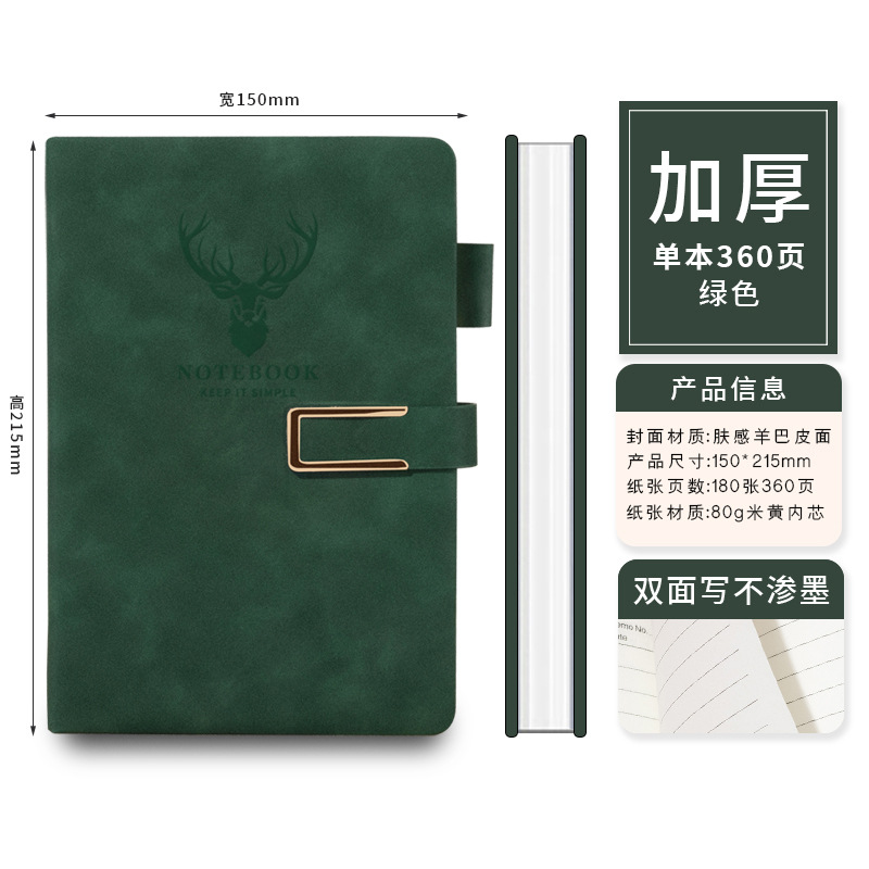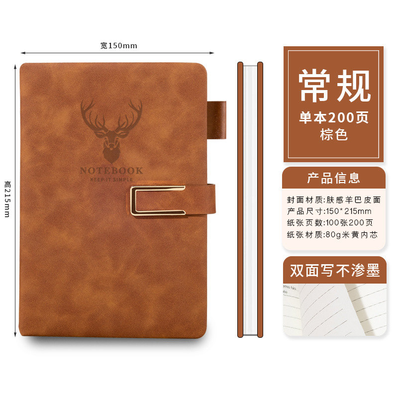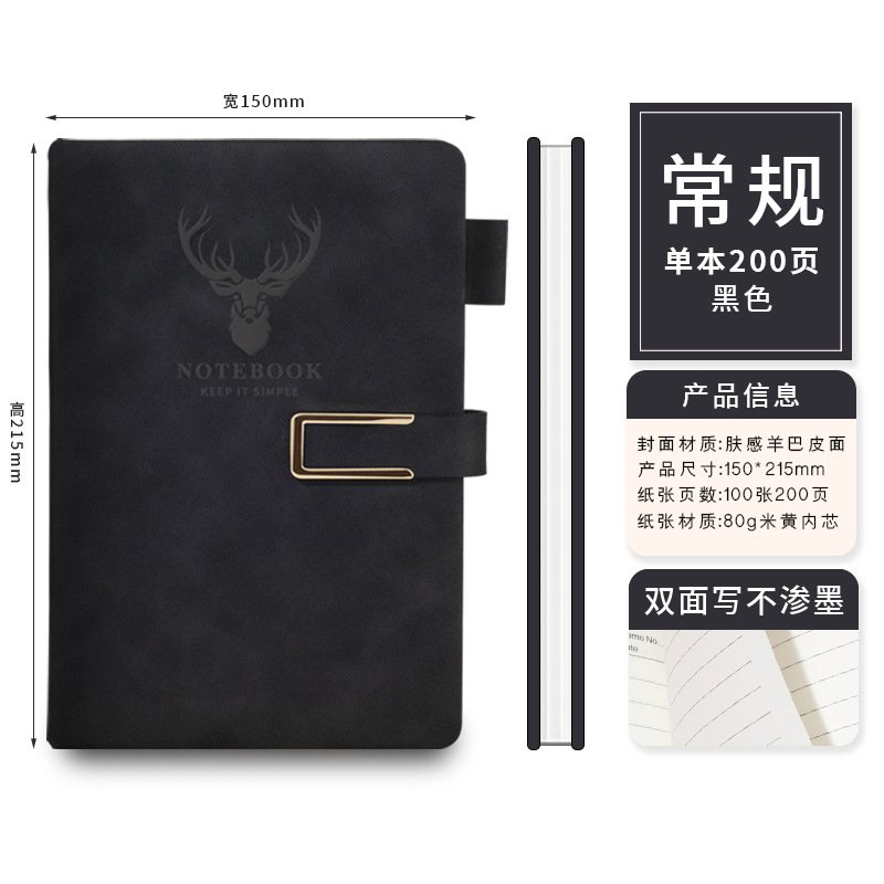 商务a5硬皮绑带松紧带记事本A5鹿头款搭扣笔记本办公会议记录本