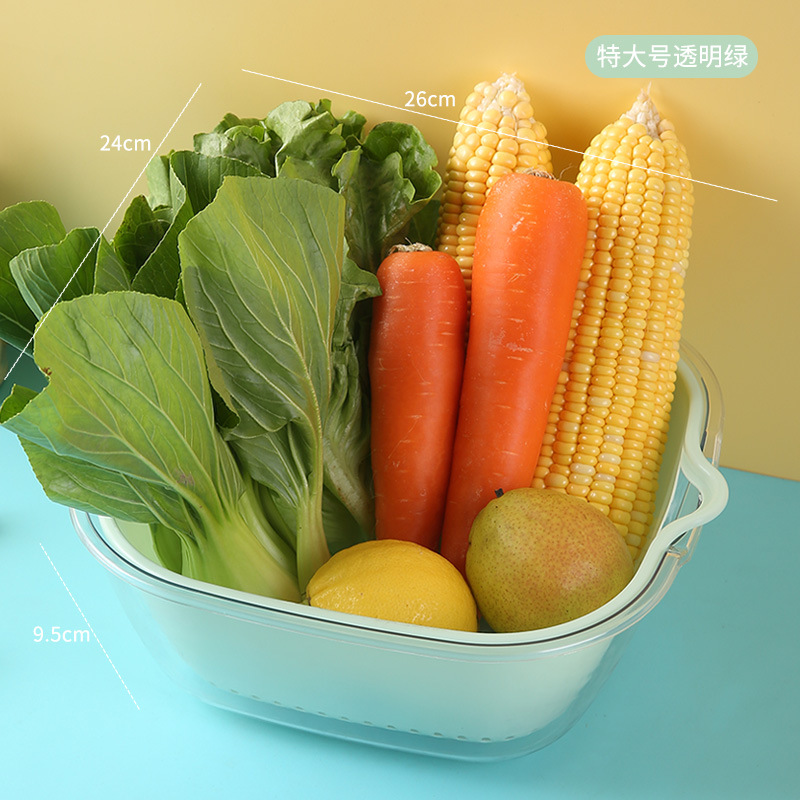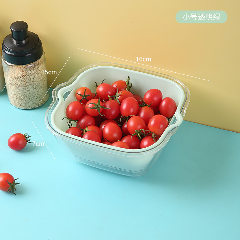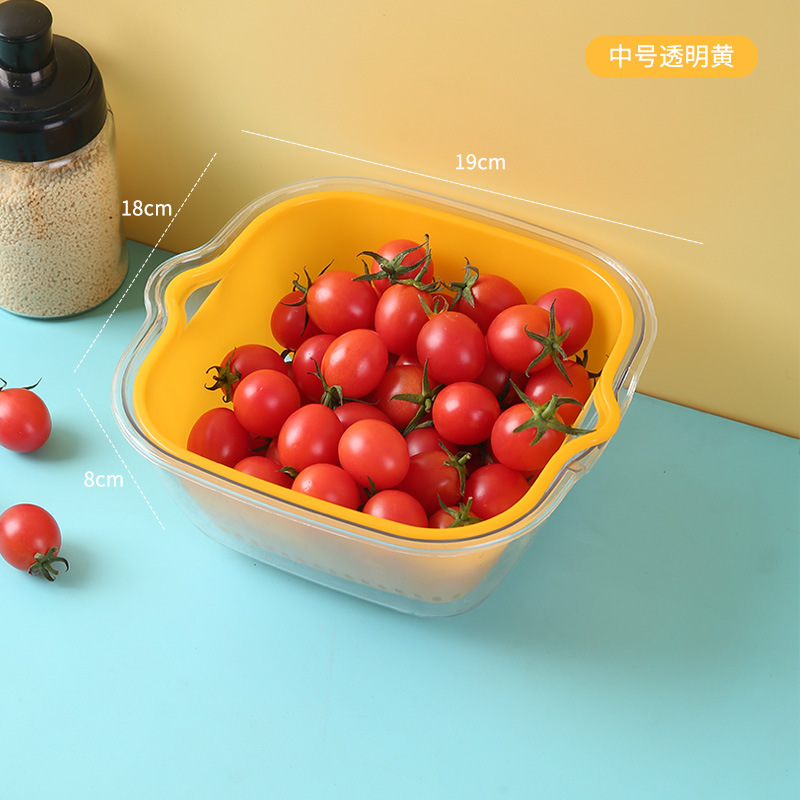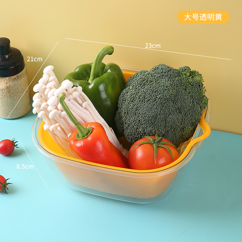 PET双层撞色蔬菜沥水篮厨房家用塑料水果盘客厅滤水菜篓淘洗菜篮