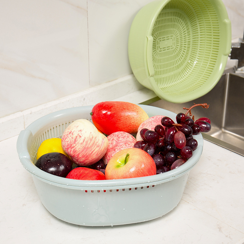 厂店厨房置物架厨房多功能沥水篮双层洗菜篮椭圆水果篮塑料收纳篮