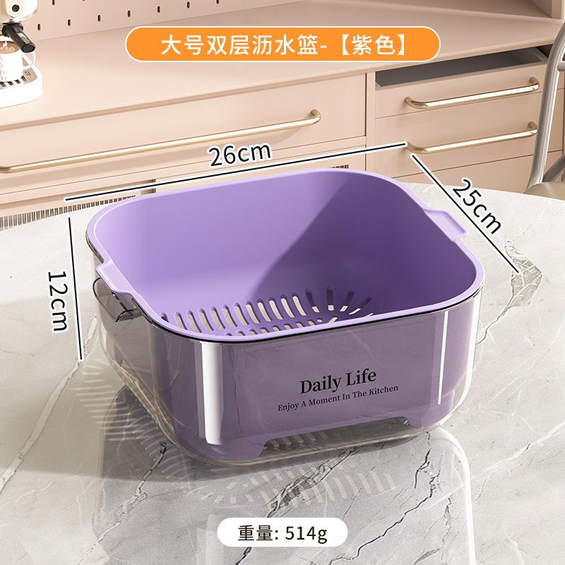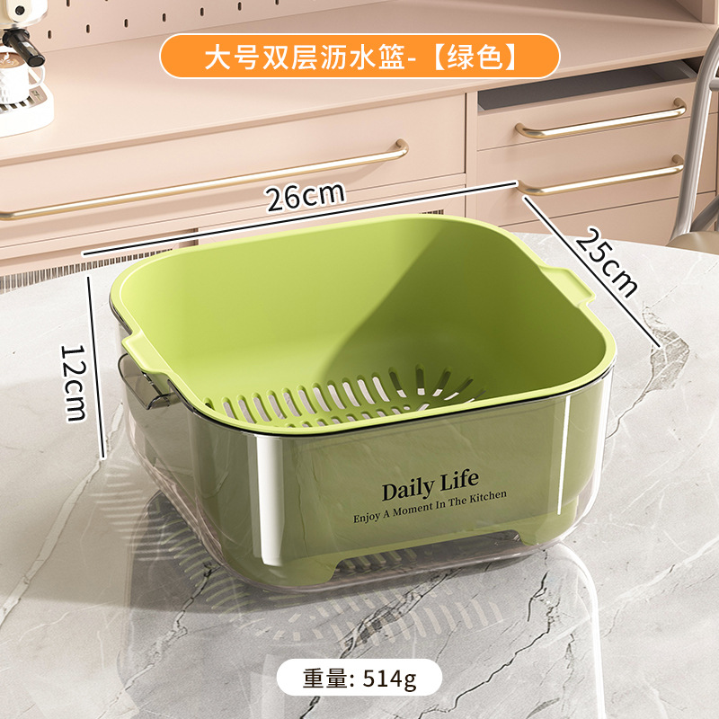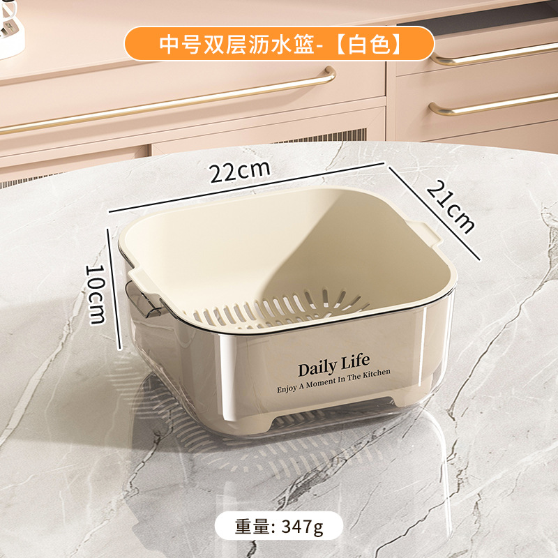 厨房双层沥水篮ins风高颜值洗菜盆沥干篮厨用大容量洗水果洗菜篮