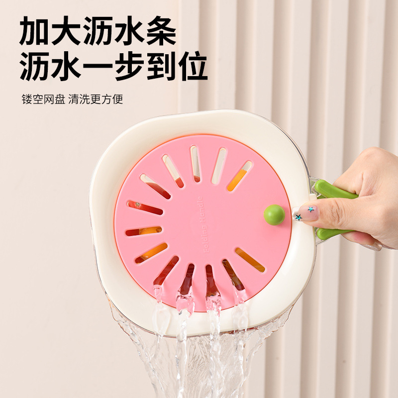 多功能沥水篮新款洗水果蔬菜家用折叠手柄厨房保鲜碗水果篮滤水篮