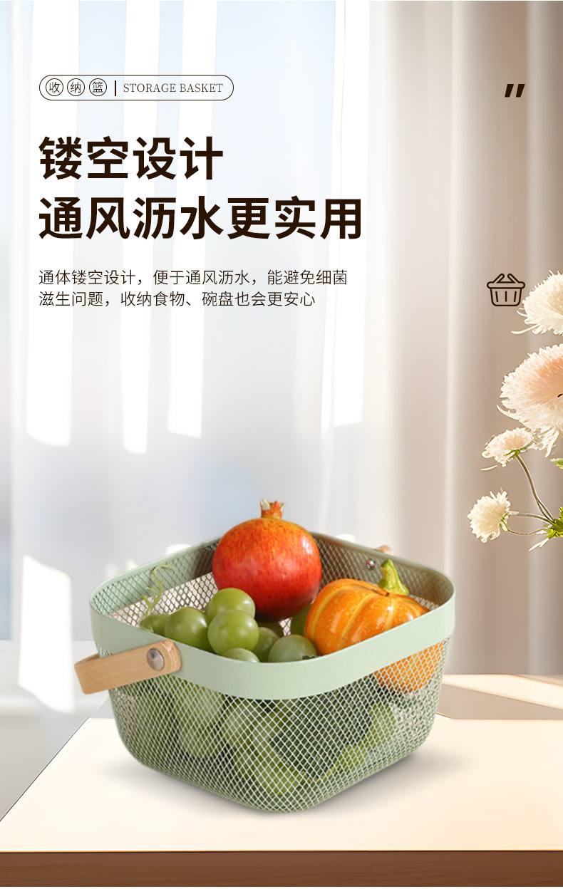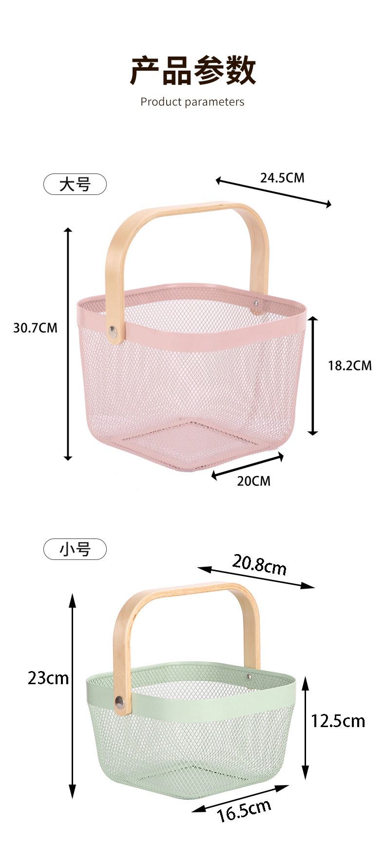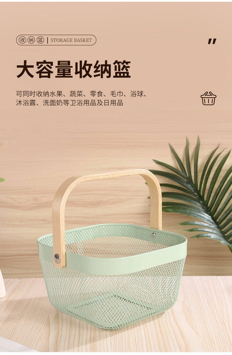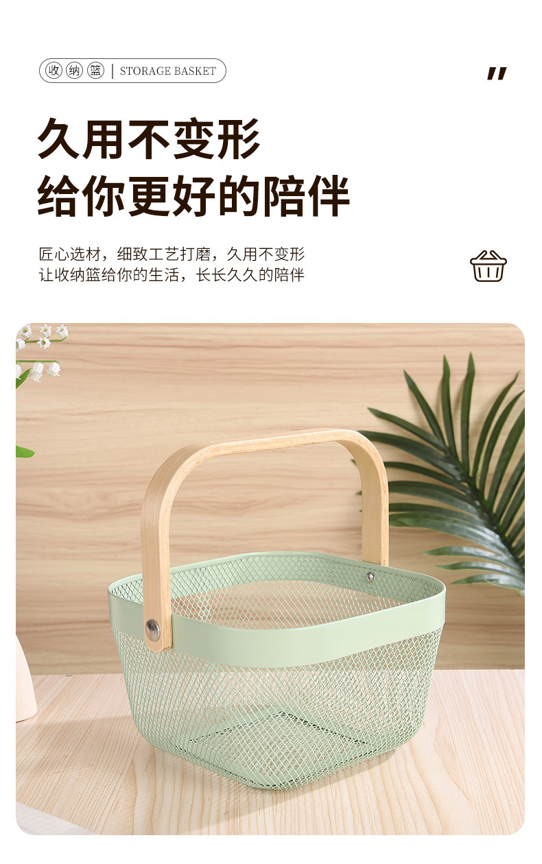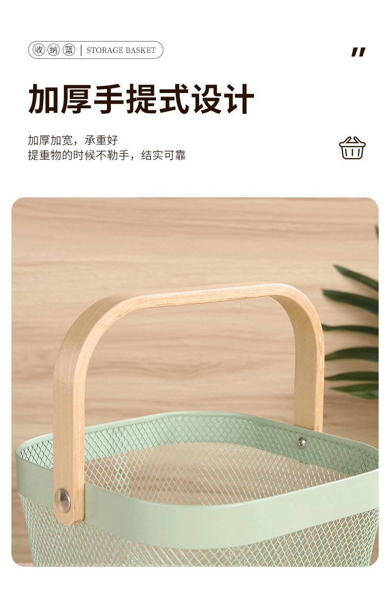 伴手礼篮子木柄提手铁艺收纳篮镂空家用果蔬篮户外便携菜篮子批发
