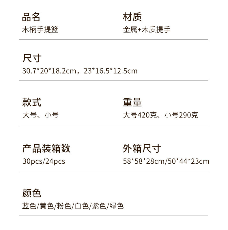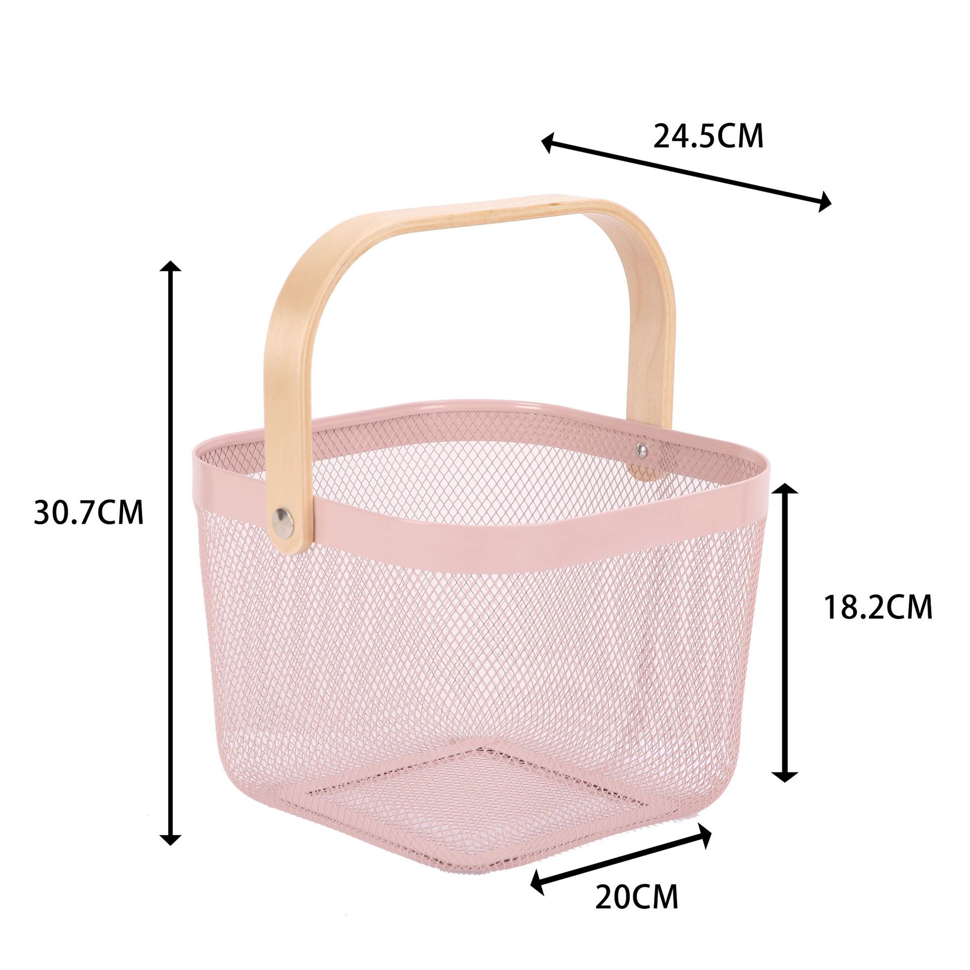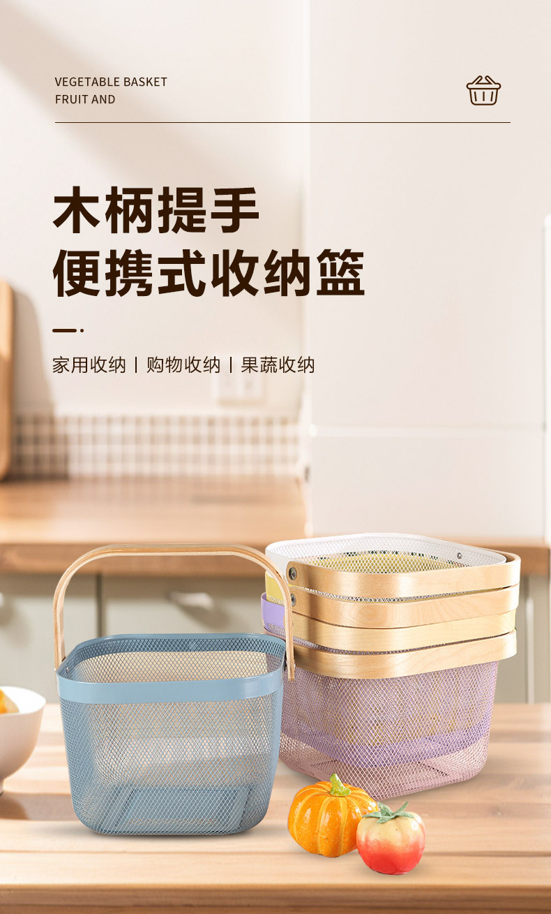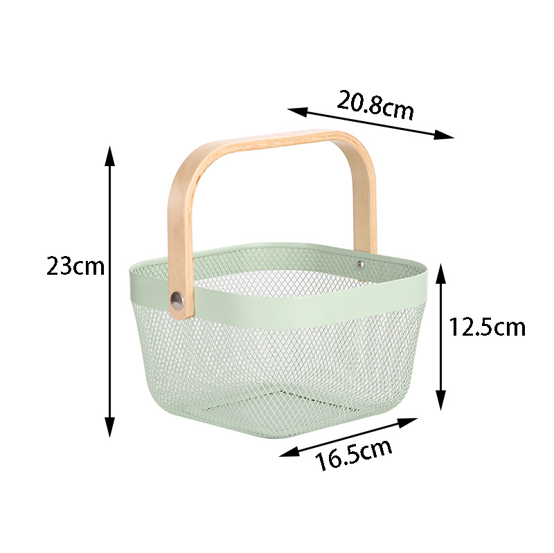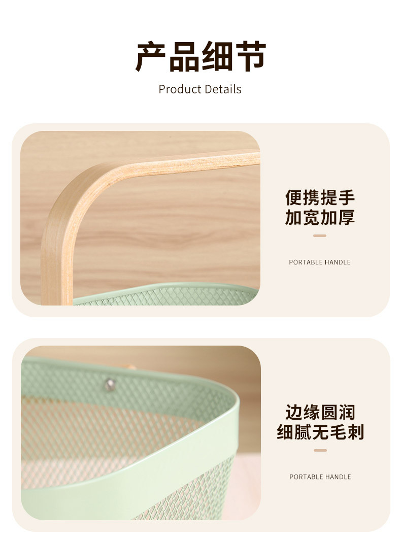 伴手礼篮子木柄提手铁艺收纳篮镂空家用果蔬篮户外便携菜篮子批发
