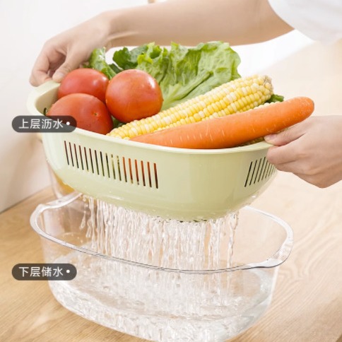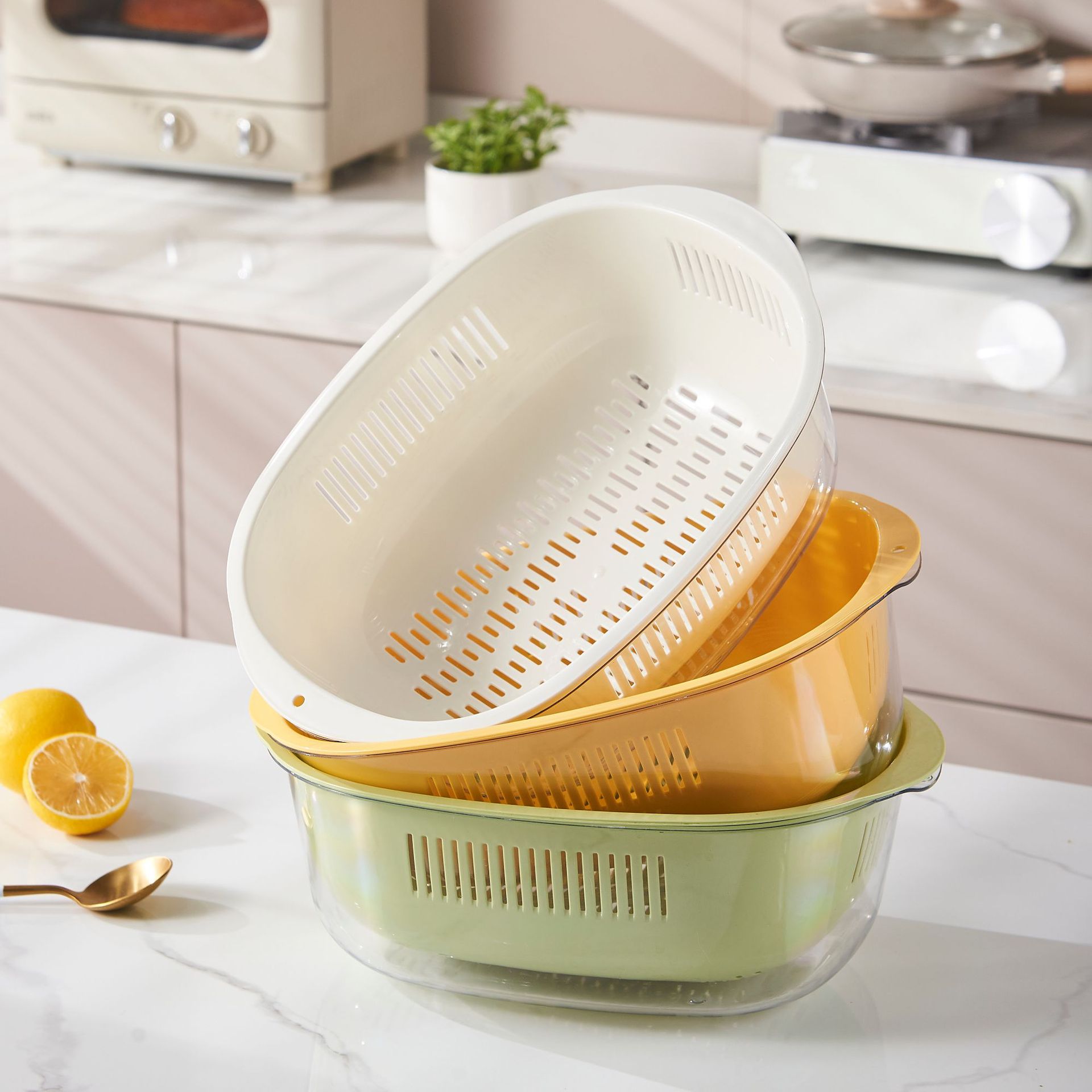 新款双层PET沥水篮多功能洗水果滤水盆洗菜 现代简约家用厨房菜篮