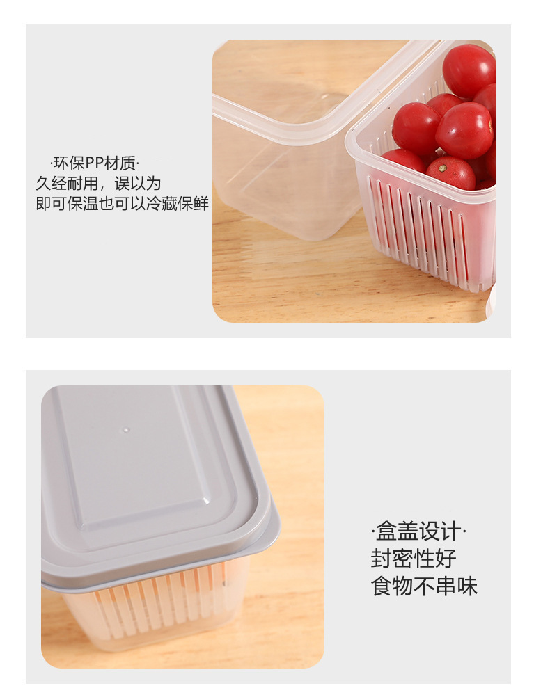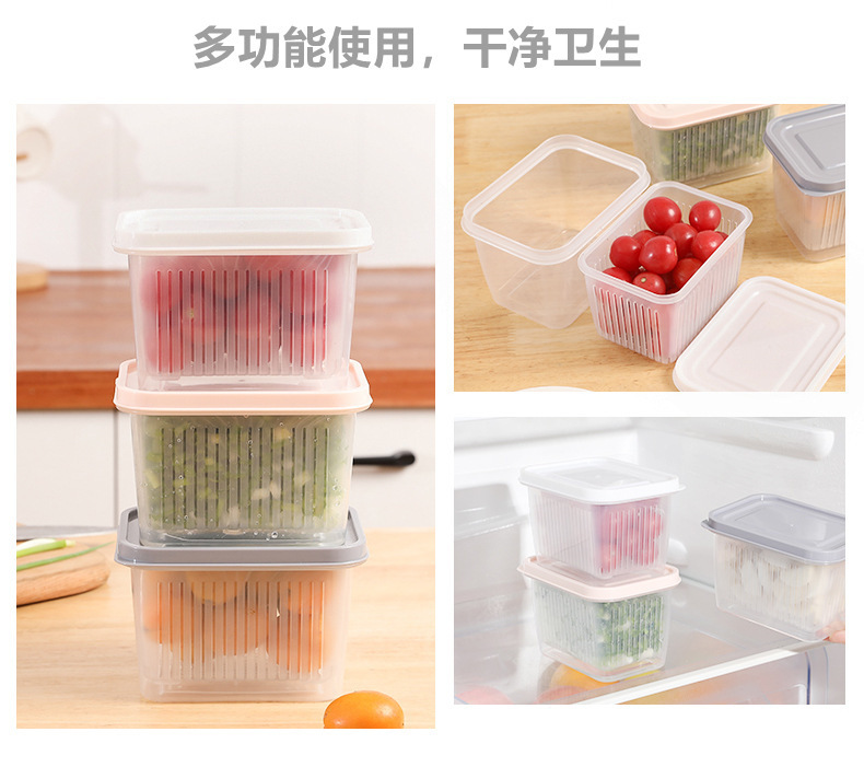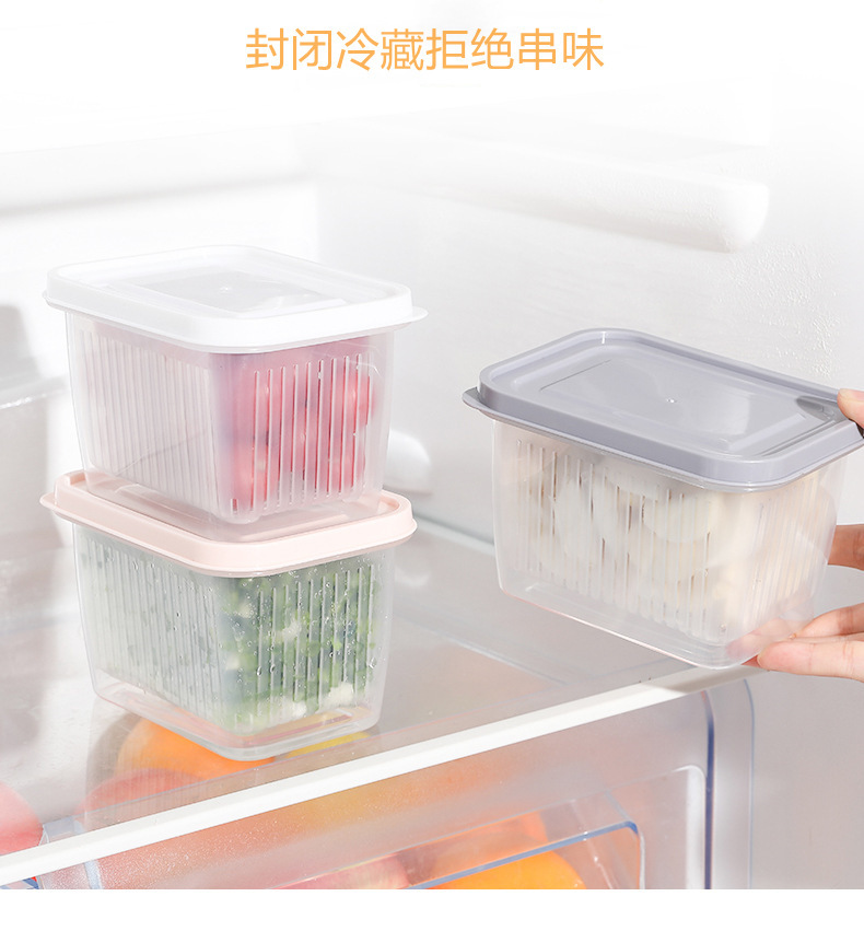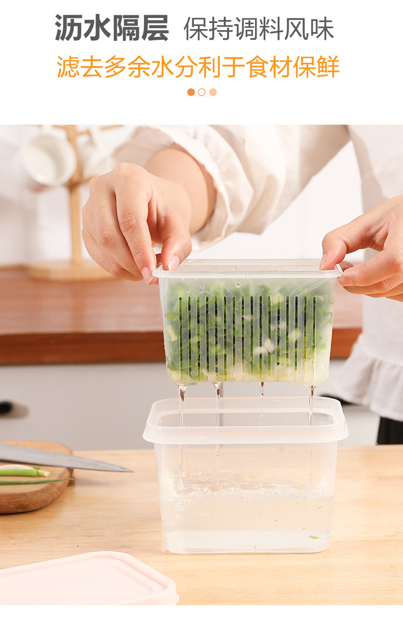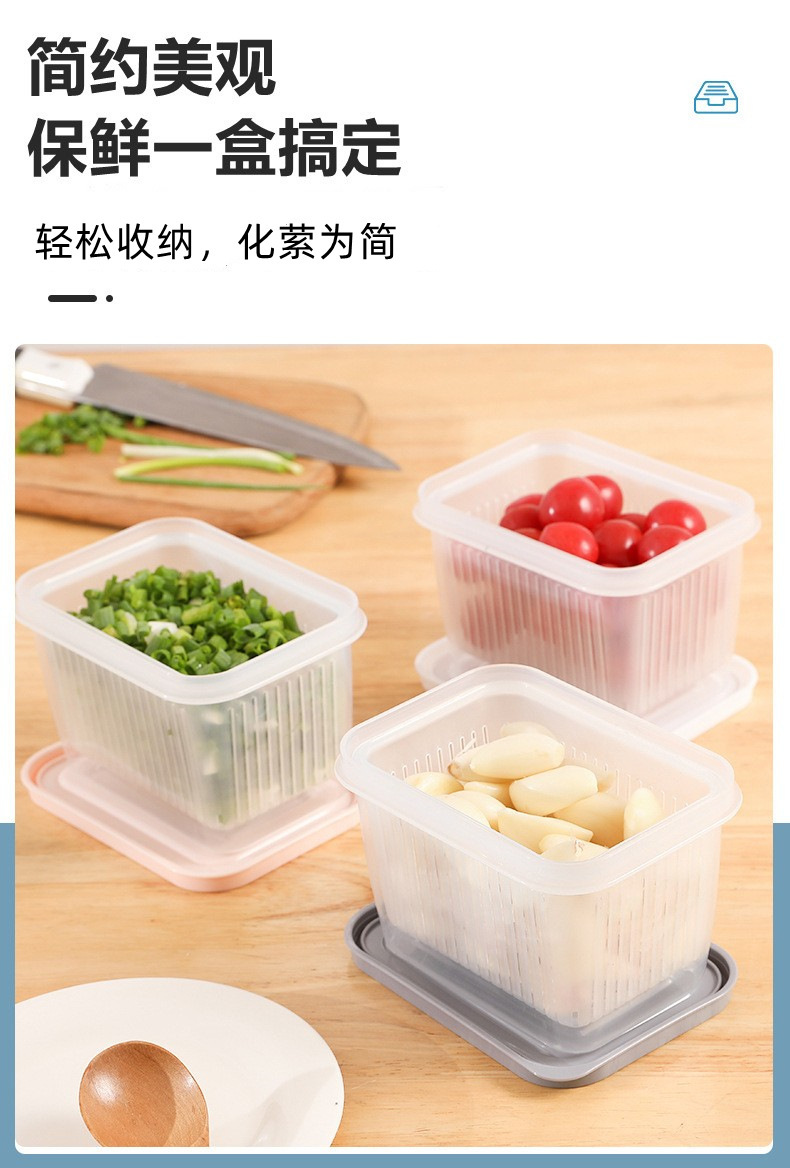 厂家新款双层沥水葱花保鲜盒冰箱收纳盒家用厨房蔬菜水果沥水篮