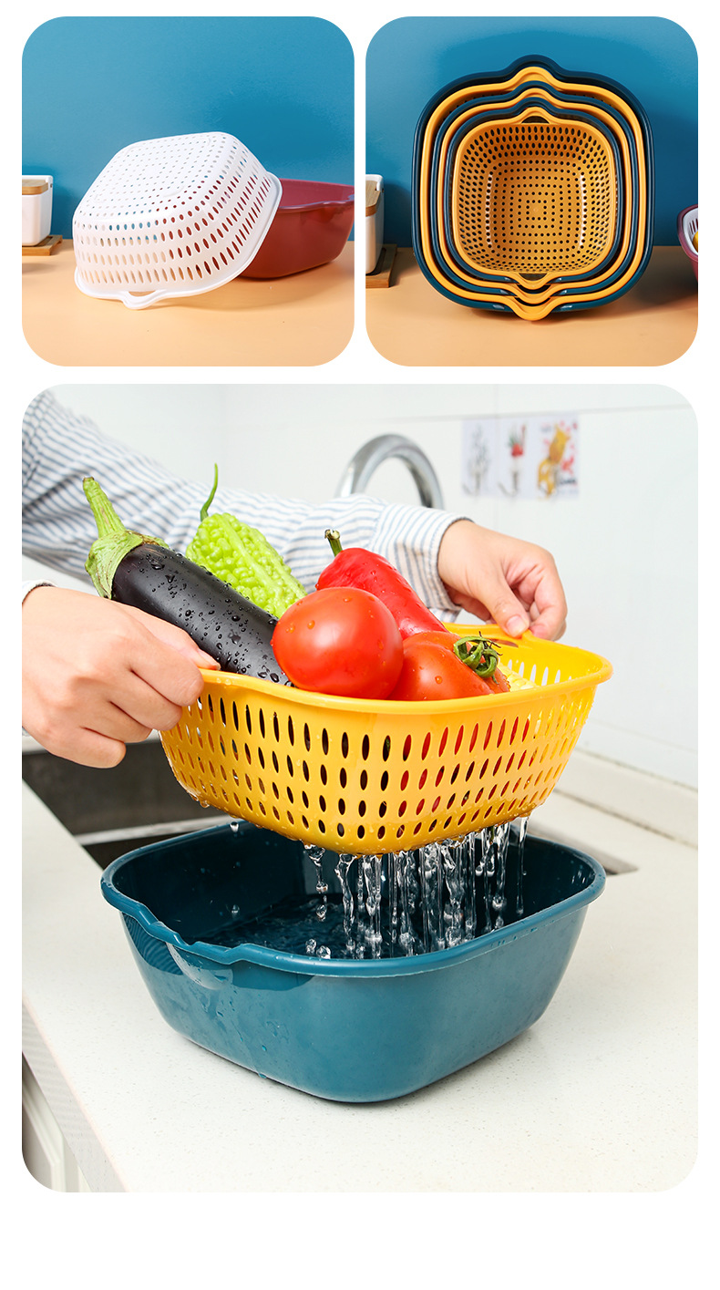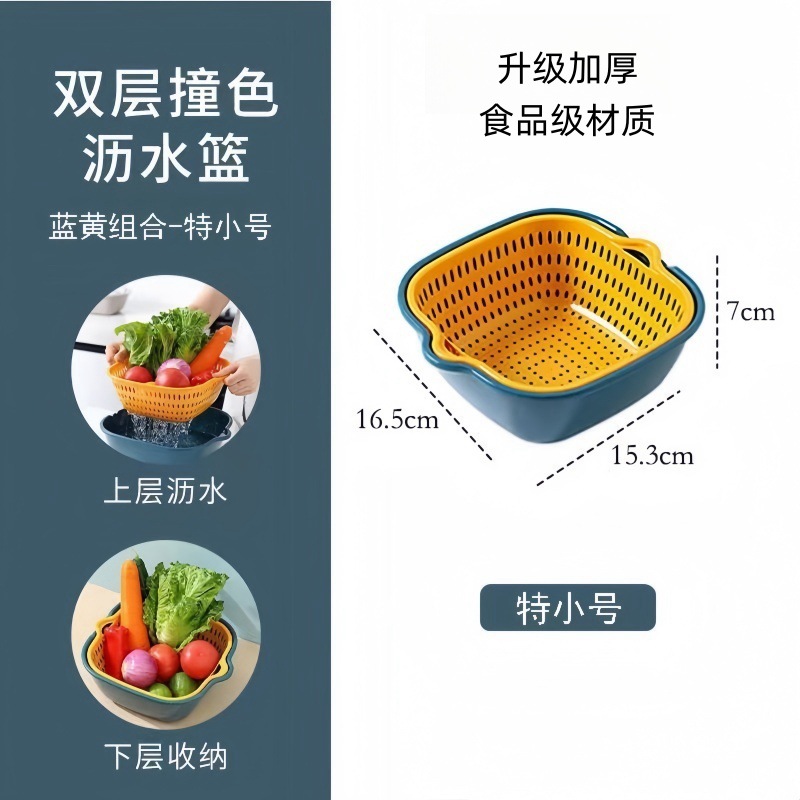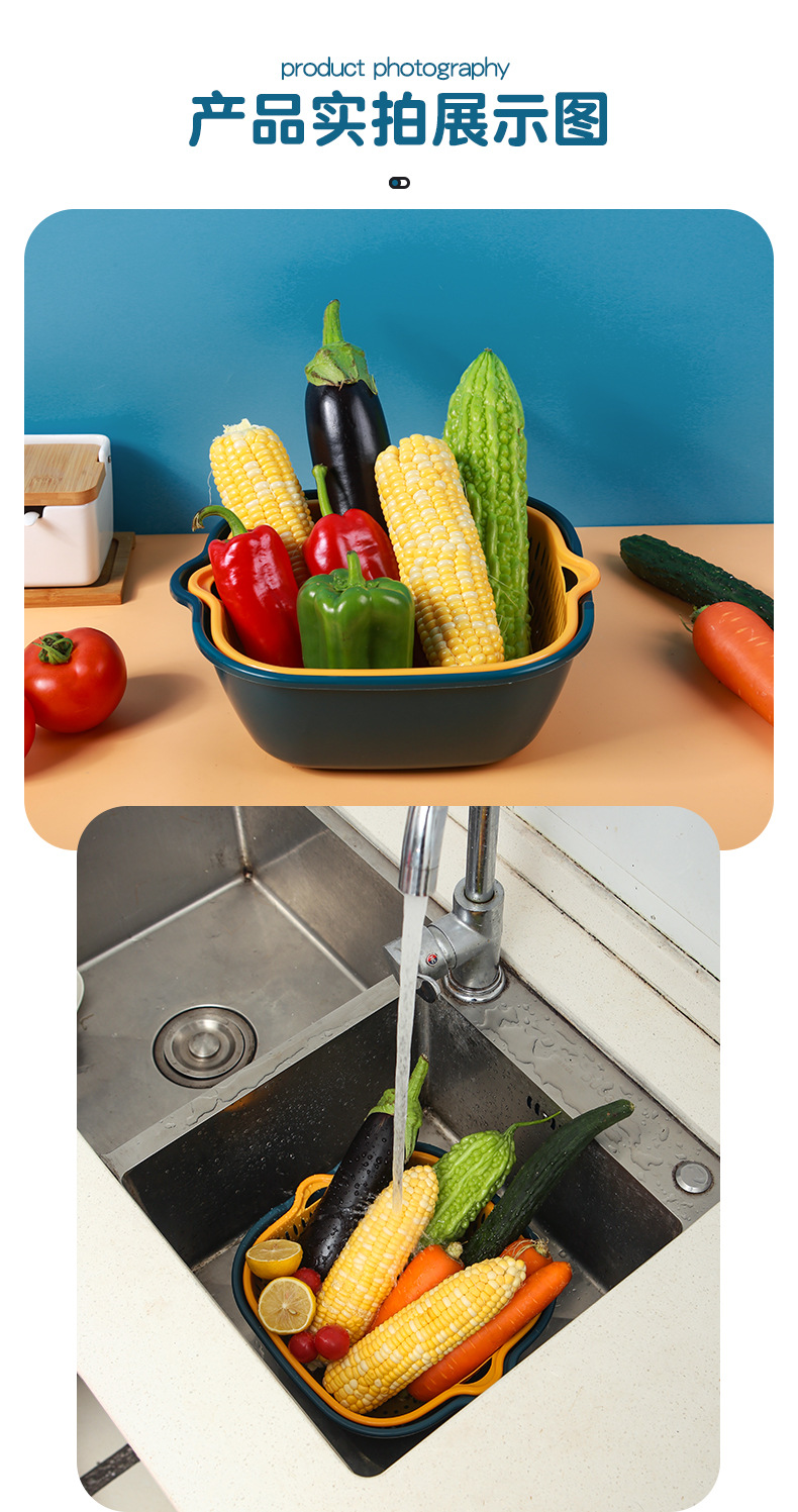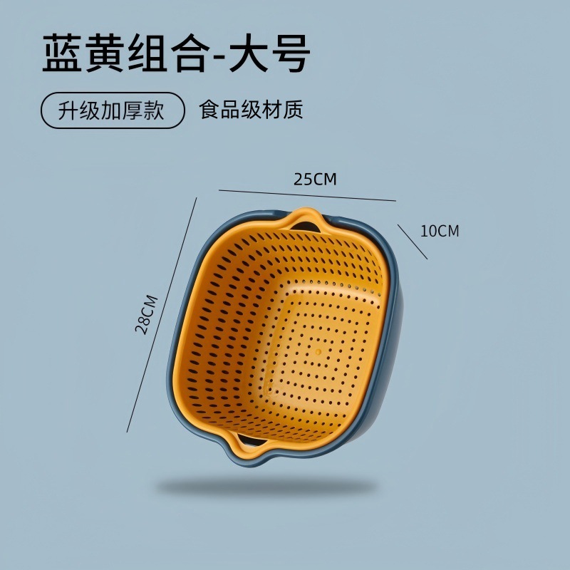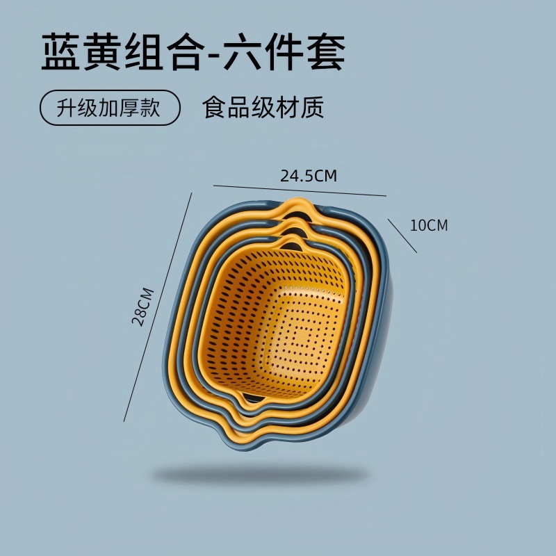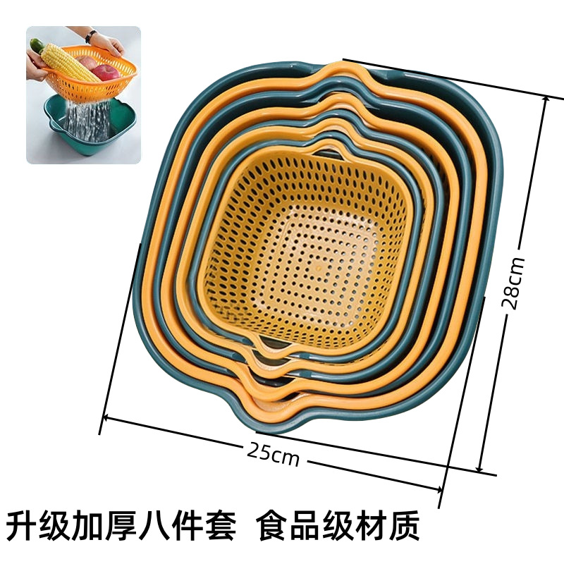 升级加厚双层沥水篮8件套家用厨房蔬菜水果清洗客厅果盘摆放批发