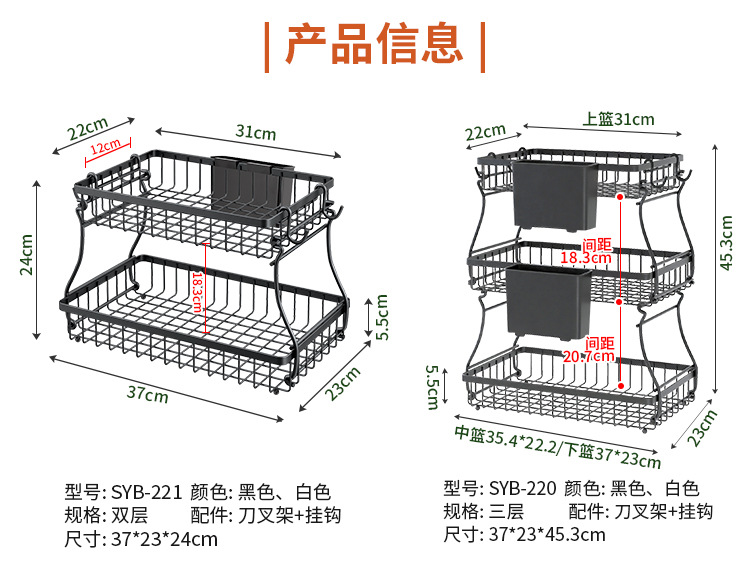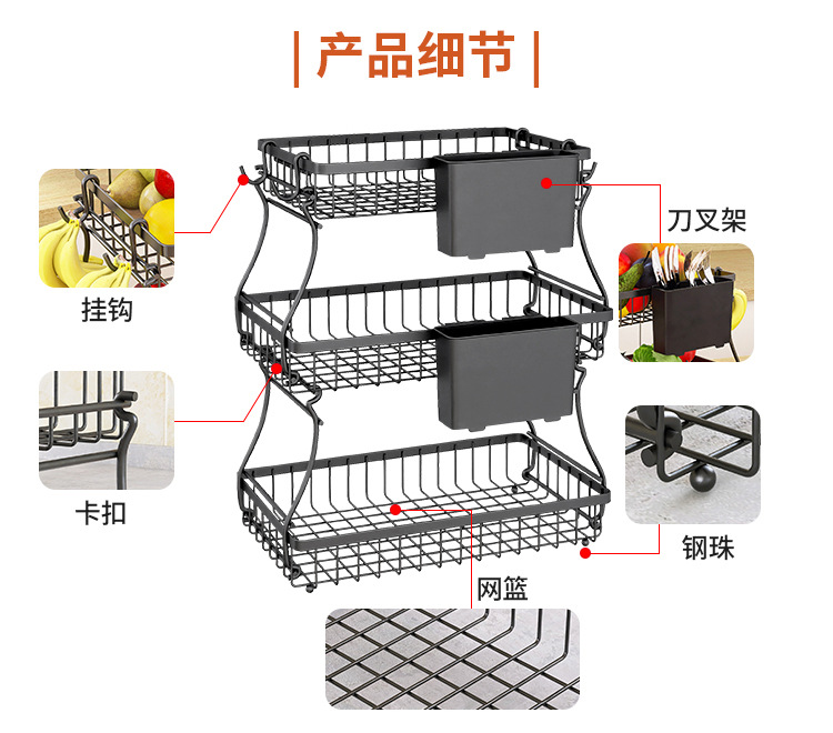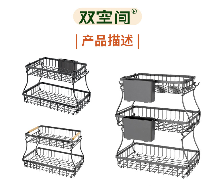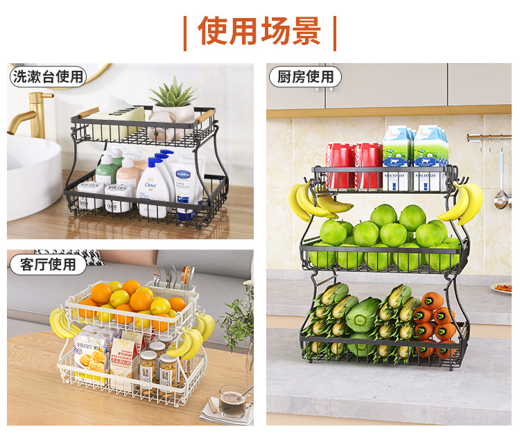 客厅桌面双层零食水果收纳篮浴室收纳筐家用铁艺多层可拆卸蔬果篮