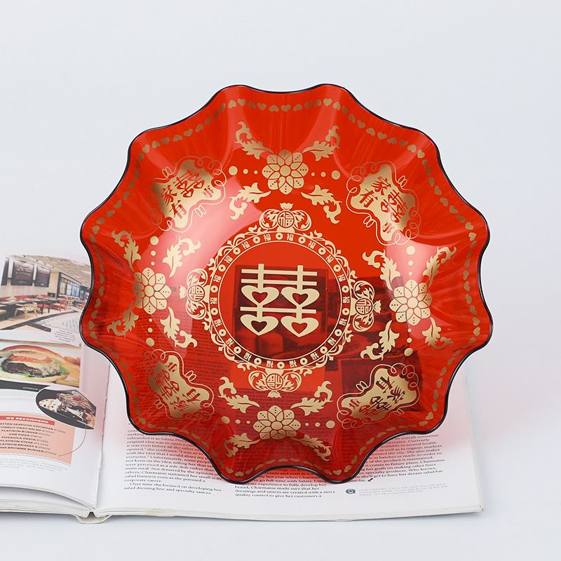 红色透明果盘厂家批发婚庆结婚果盘批发塑料盘果盘亚克力果盘果篮
