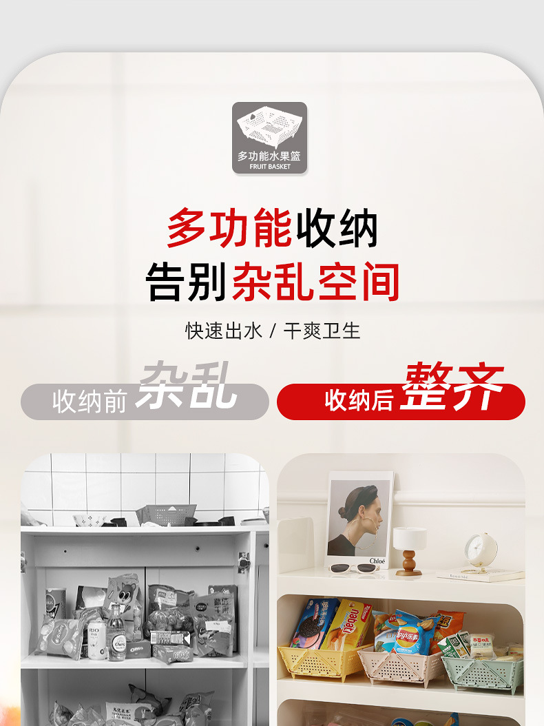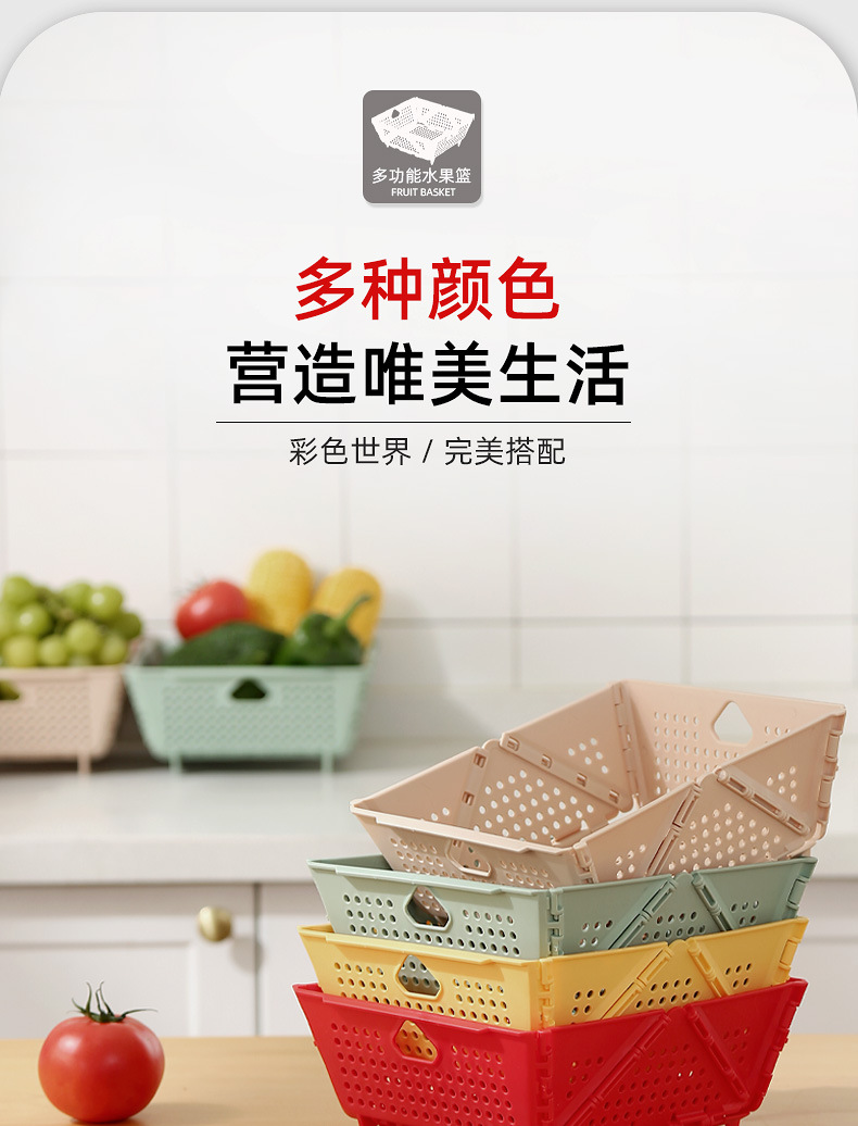 创意水果篮可折叠洗菜盆家用收纳篮新款塑料客厅水果篮厨房沥水篮