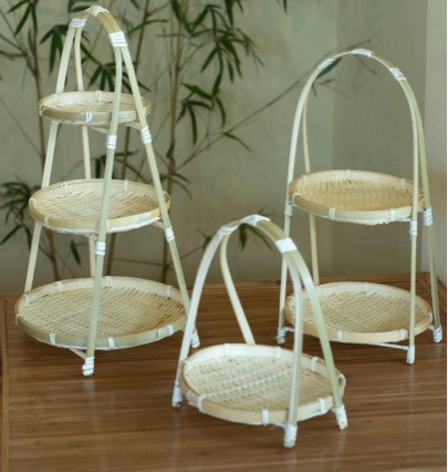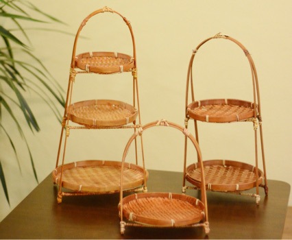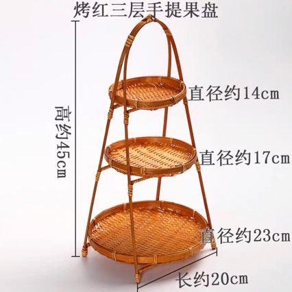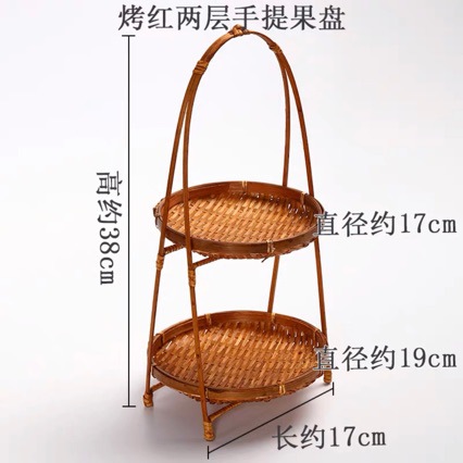 现货围炉手工竹编蛋糕摆台水果零食婚礼收纳单层手提篮多功能托盘