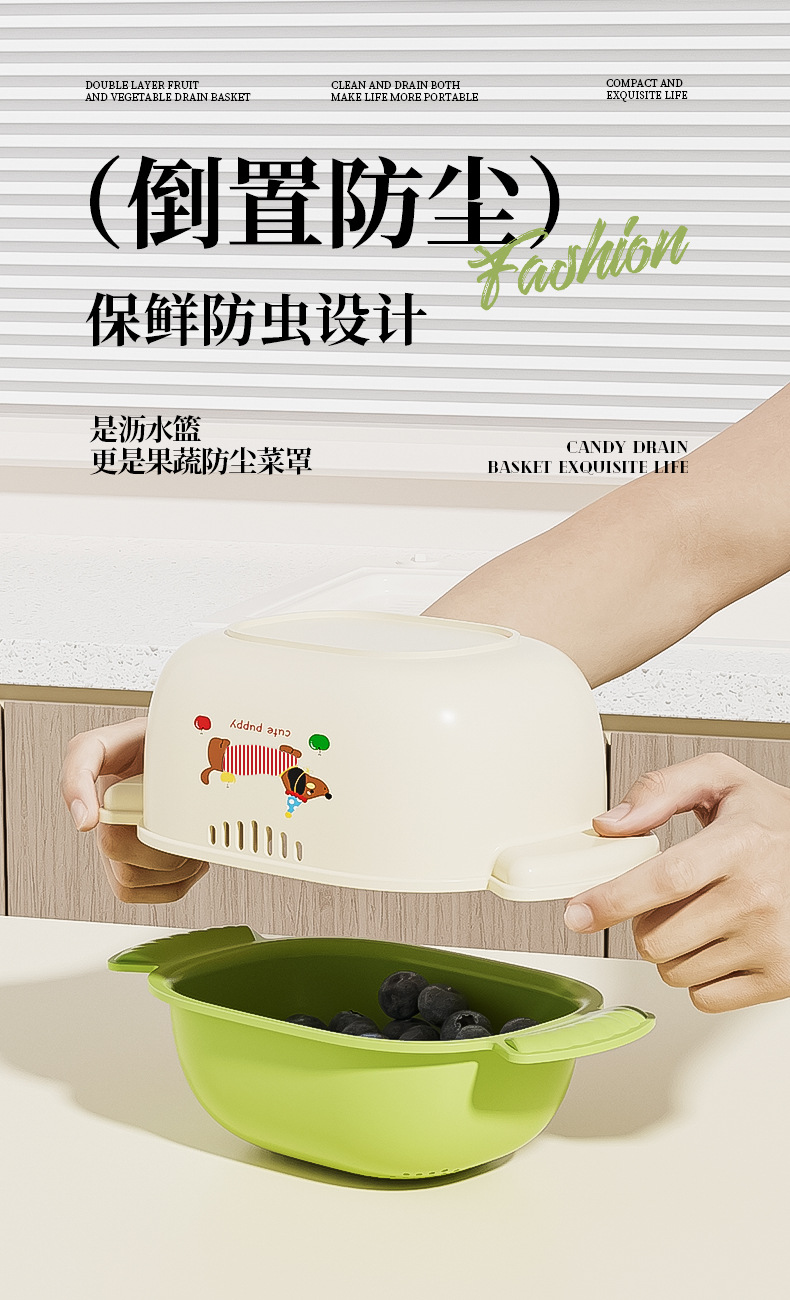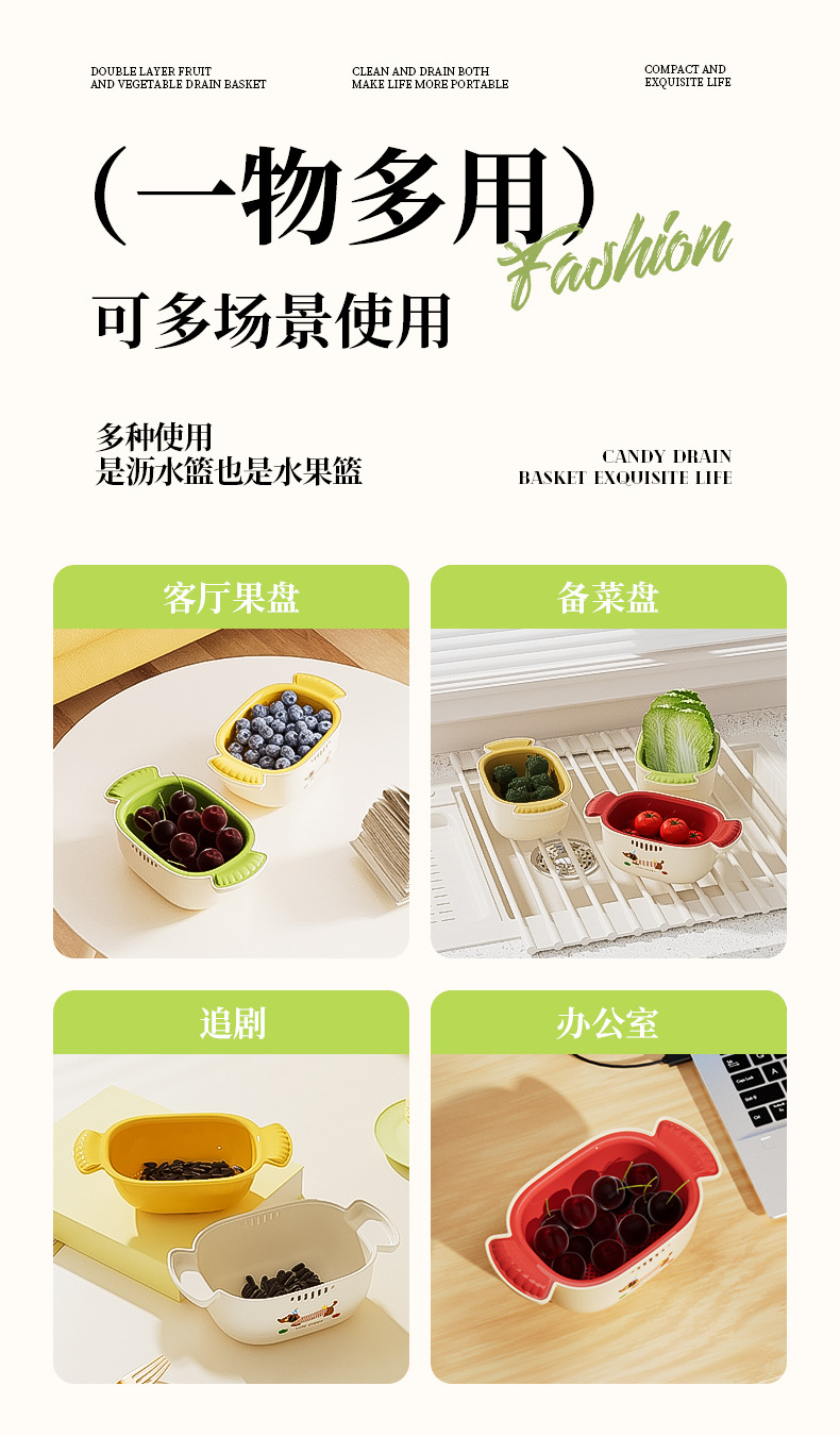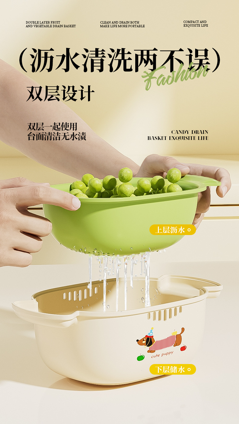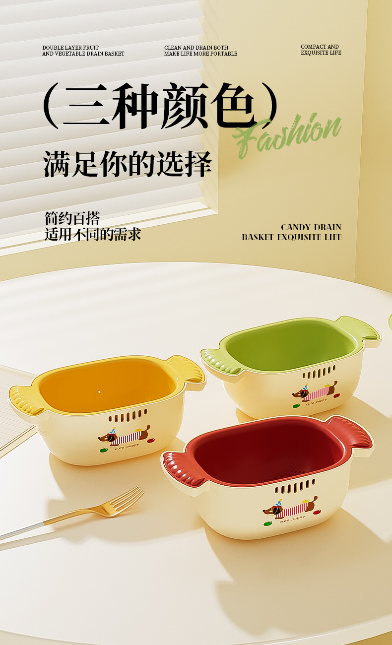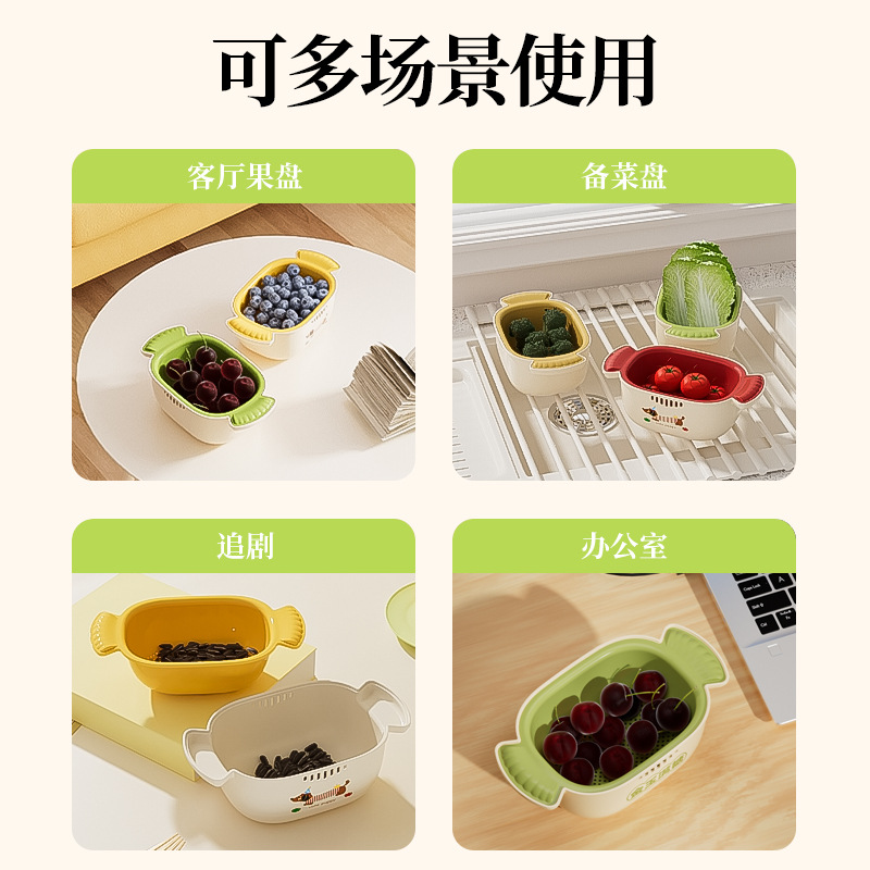多巴胺双层沥水篮滤水筛洗水果加厚多功能厨房果盘果篮家用好物