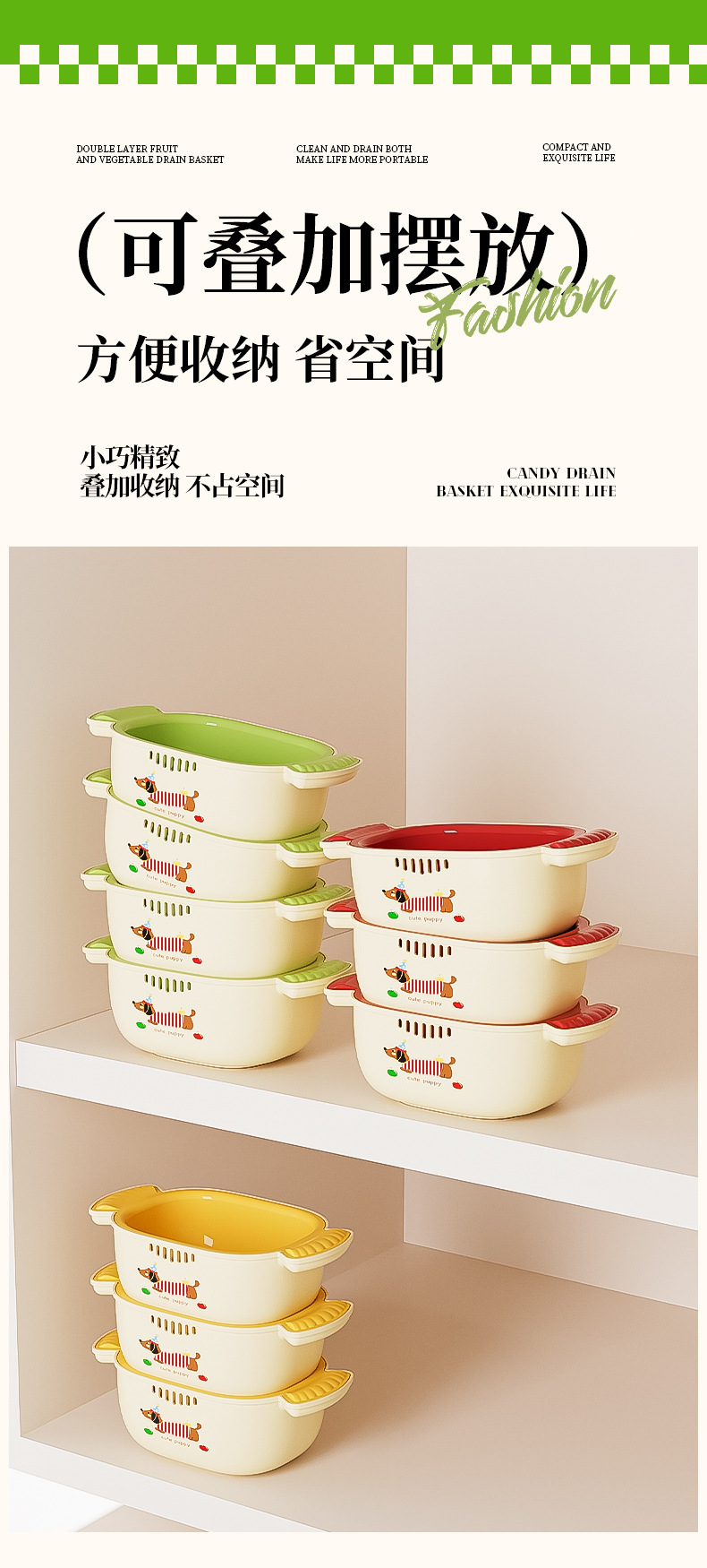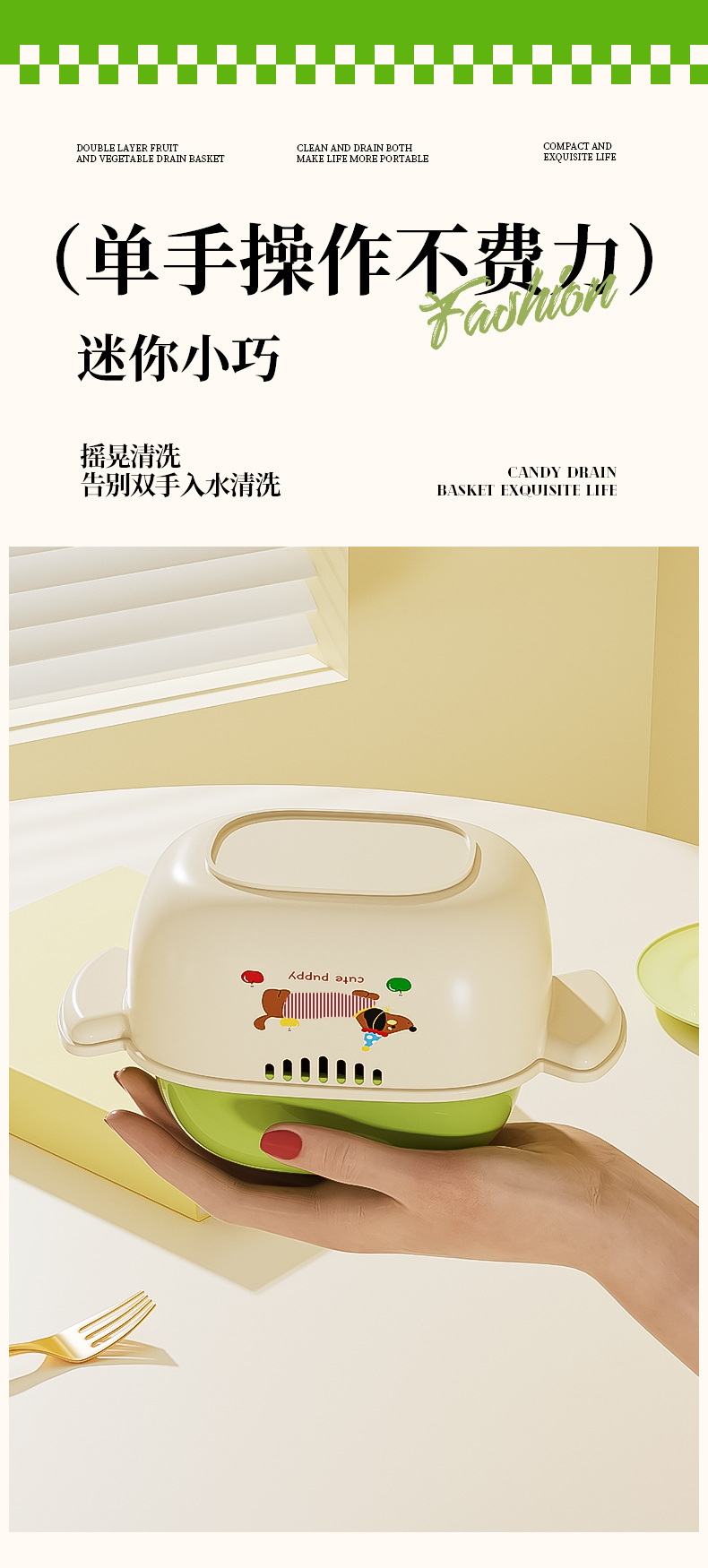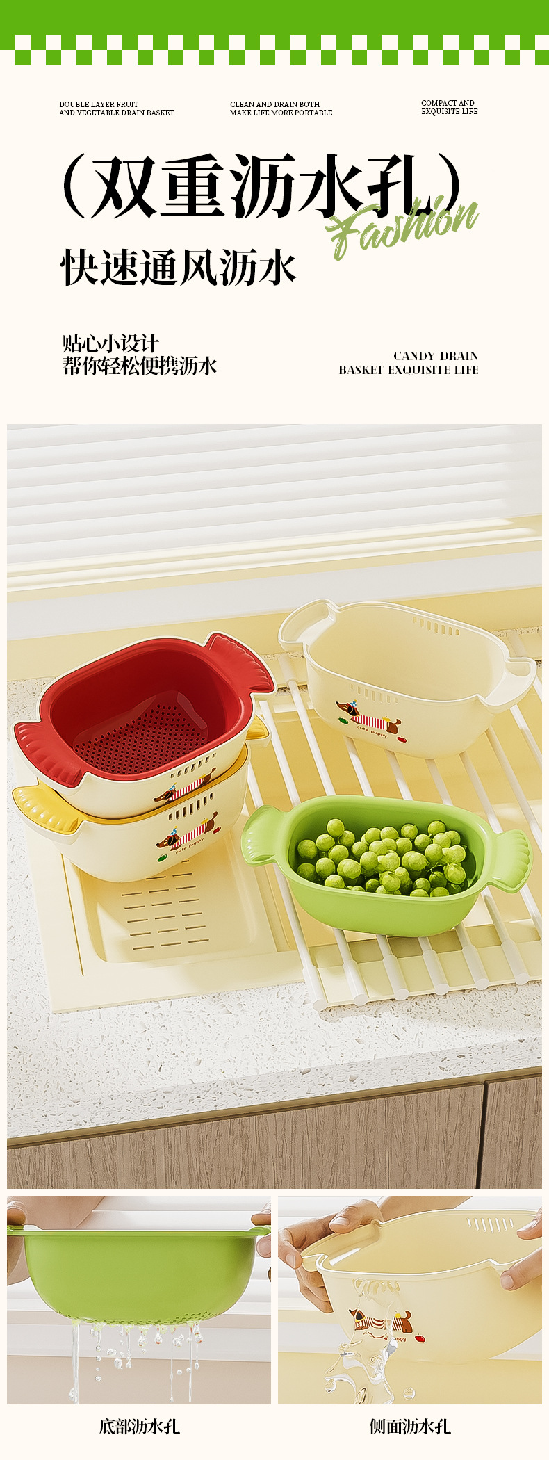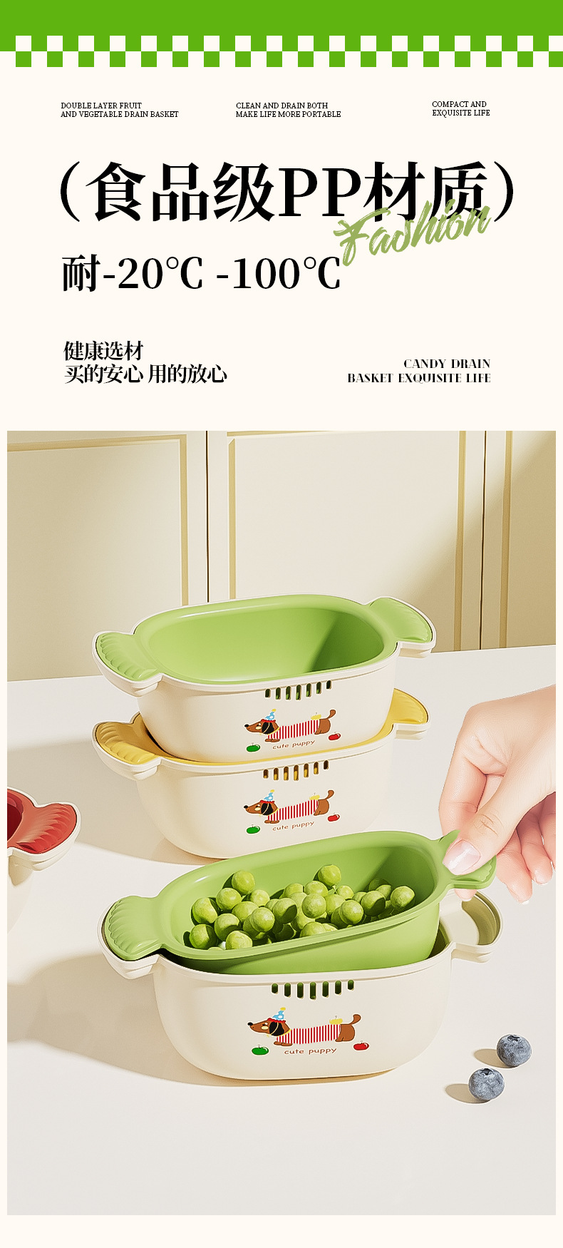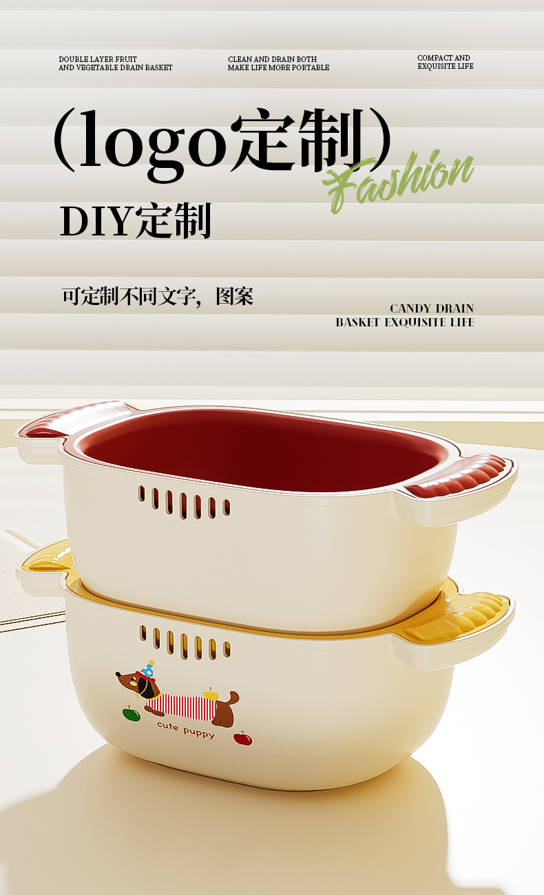 多巴胺双层沥水篮滤水筛洗水果加厚多功能厨房果盘果篮家用好物