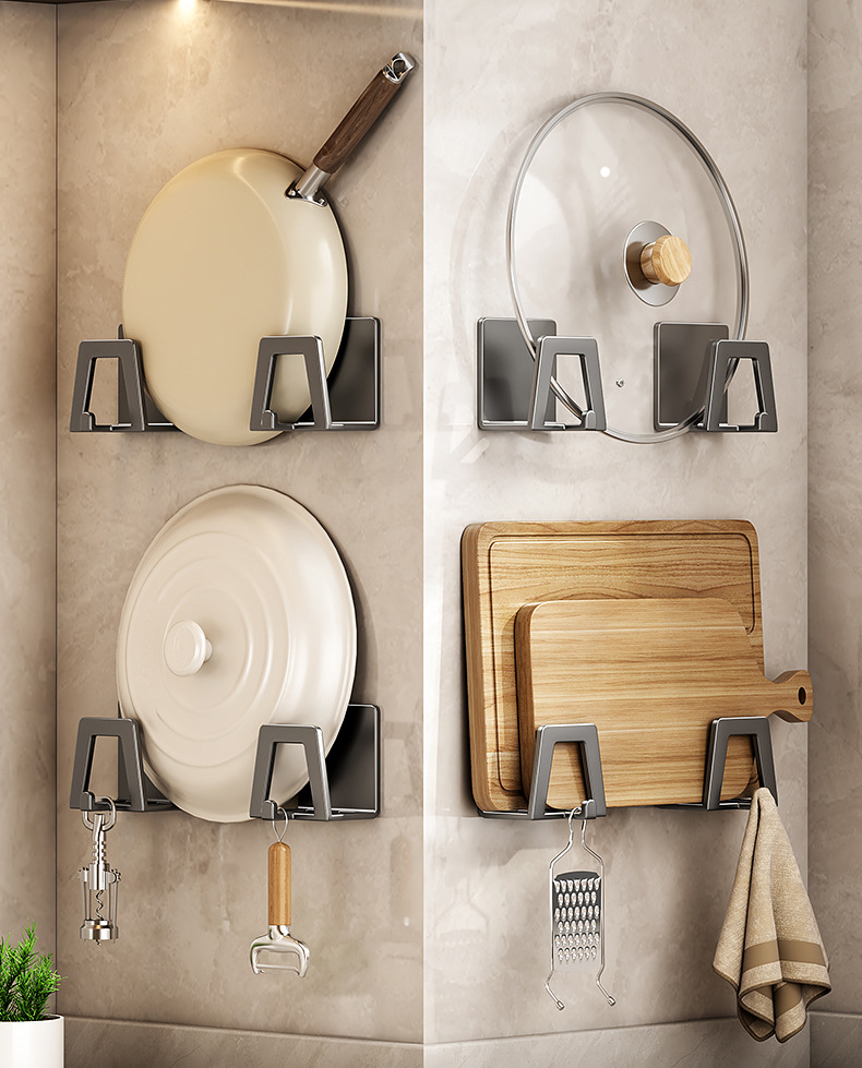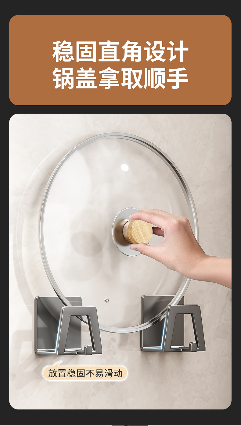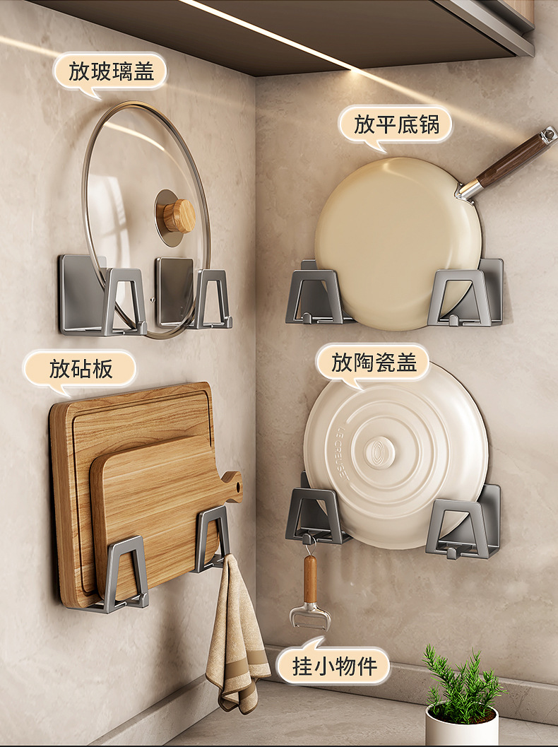 免打孔厨房锅盖架壁挂置物放菜板架墙上免打孔锅盖收纳架家用锅架