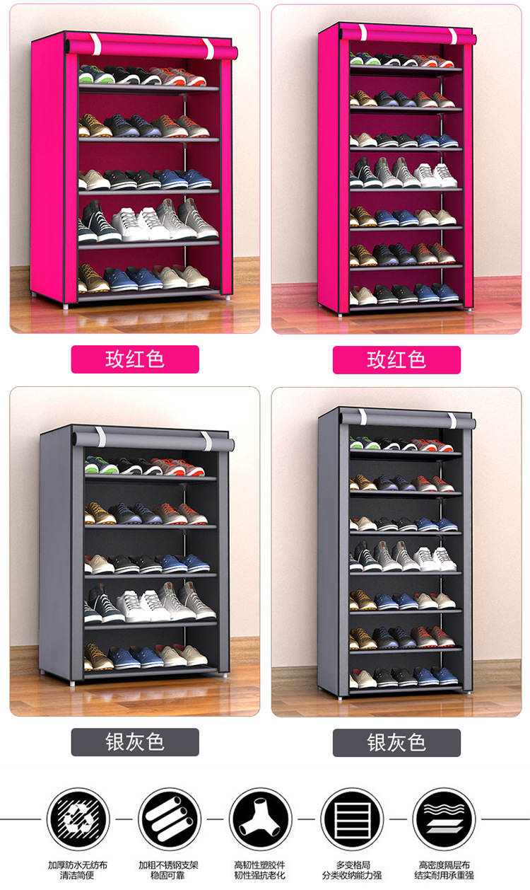简易鞋架多层家用客厅省空间金属防尘无纺布收纳鞋子架厂家批发