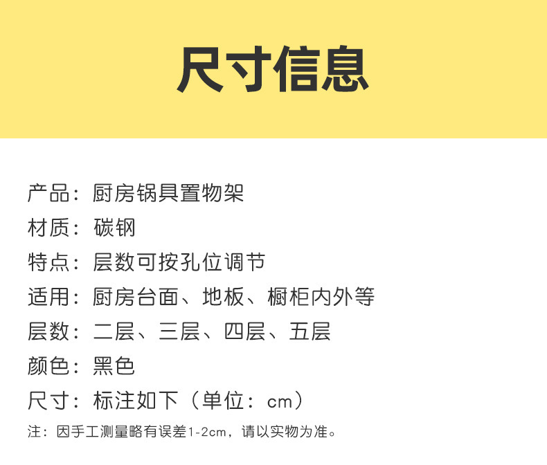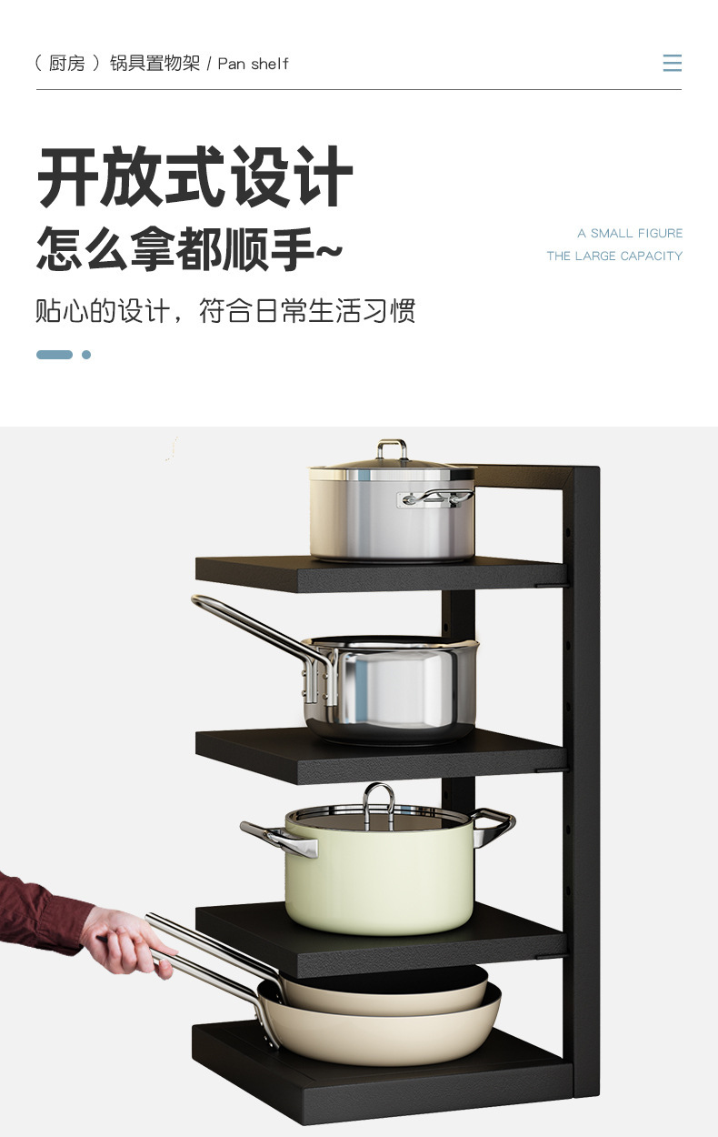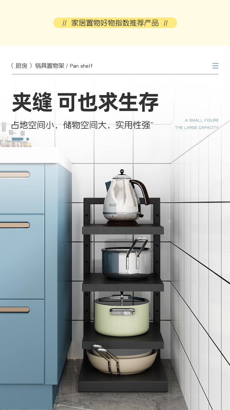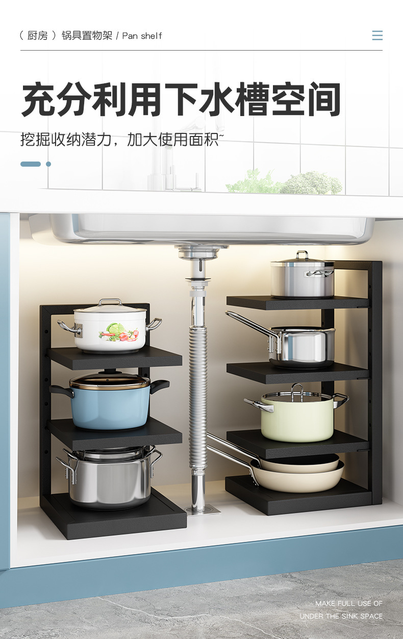 厨房置物架碳钢落地多层锅具收纳架分层下水槽置物家用多层锅架
