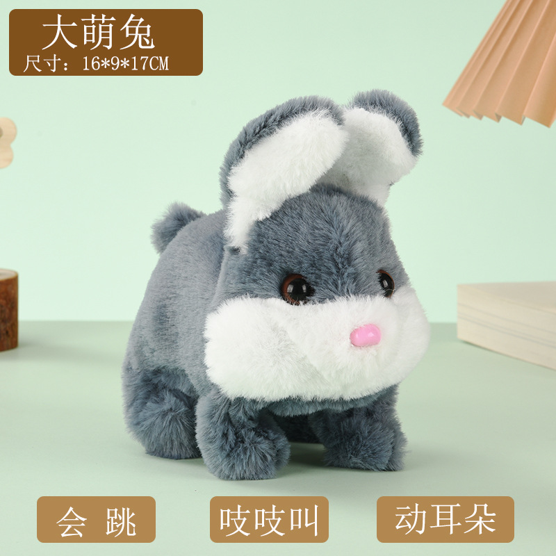 毛绒电动小白兔仿真宠物会走会叫会动嘴会摇耳朵长毛兔宠物玩具