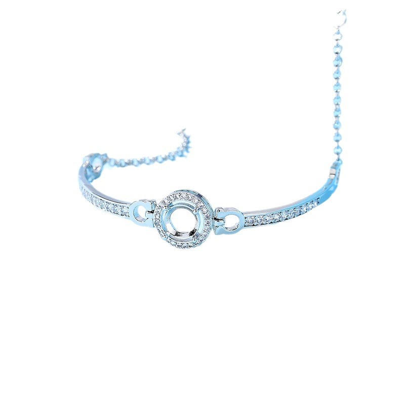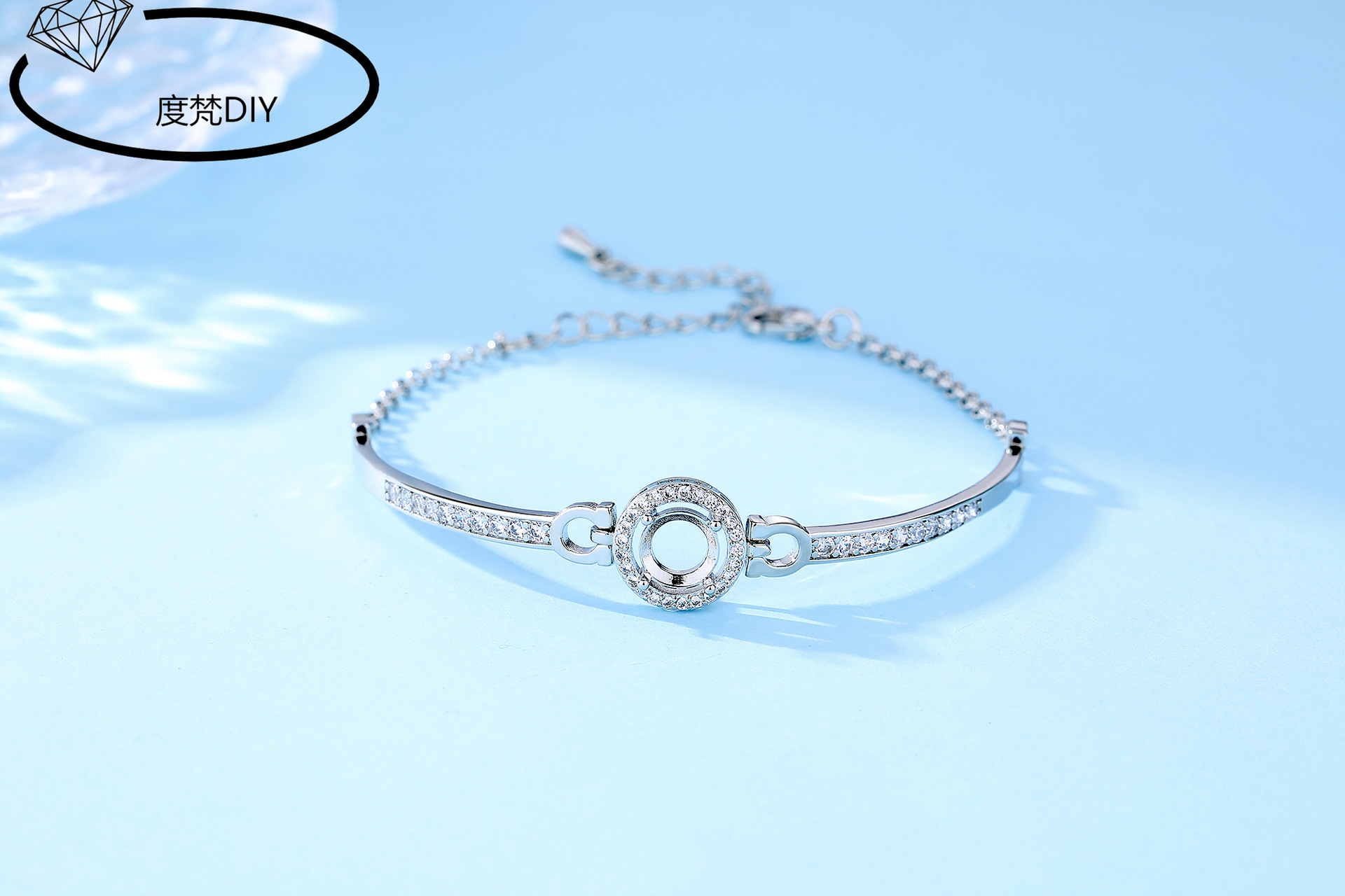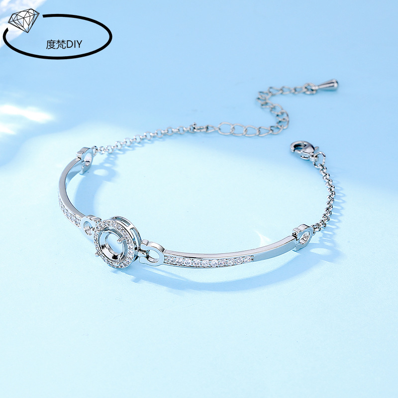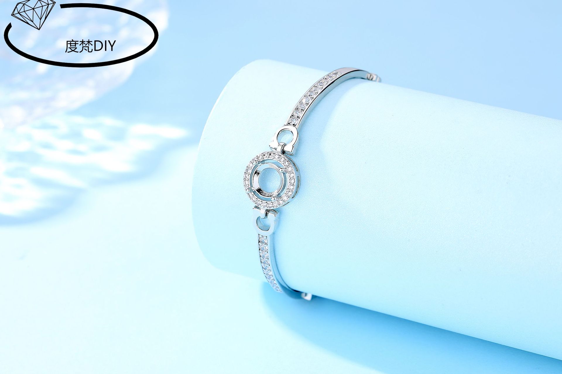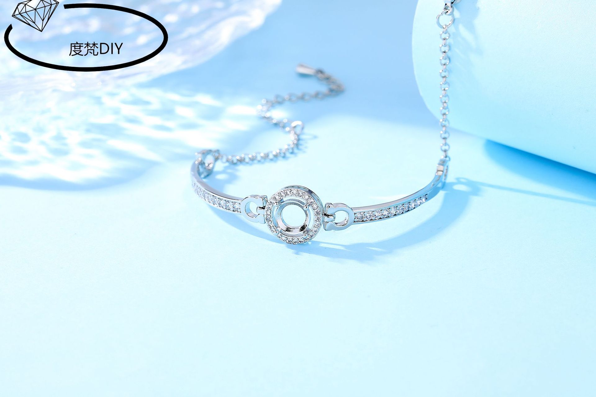 新款公主时尚小太阳镀925银手镯手链空托女半镯半链镯子托镶嵌diy