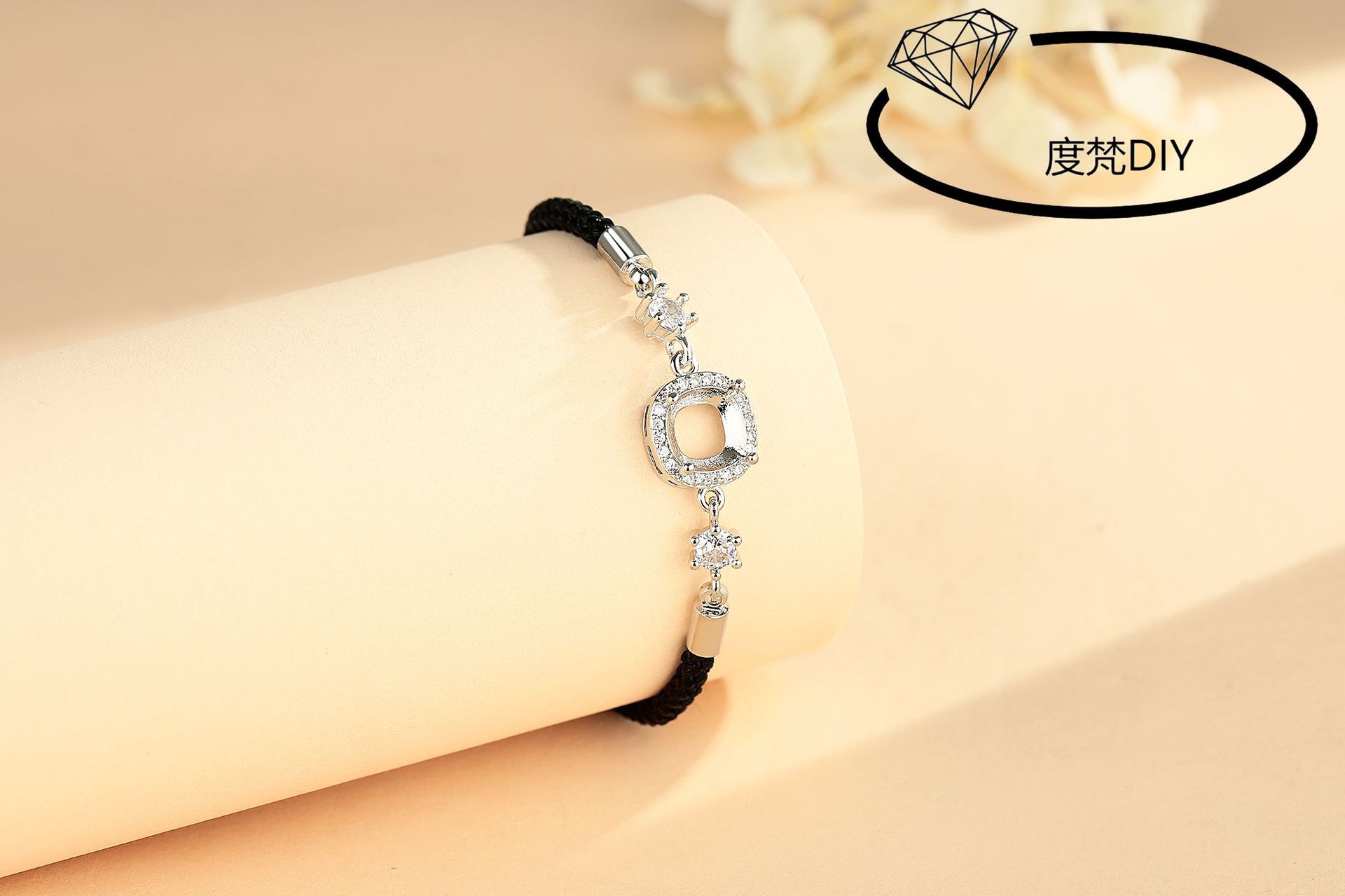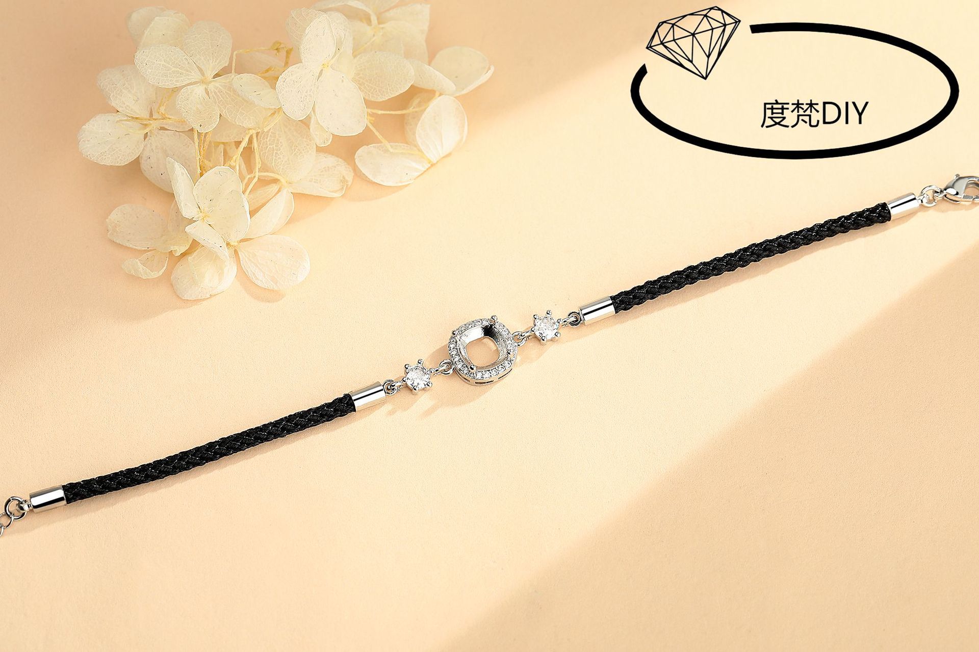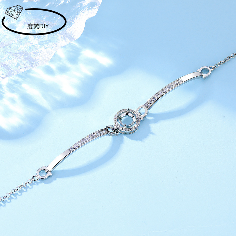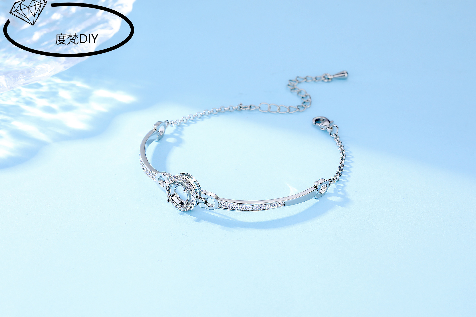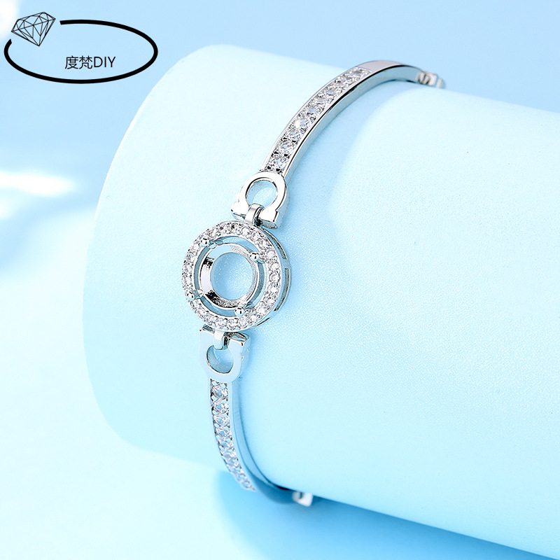 新款公主时尚小太阳镀925银手镯手链空托女半镯半链镯子托镶嵌diy