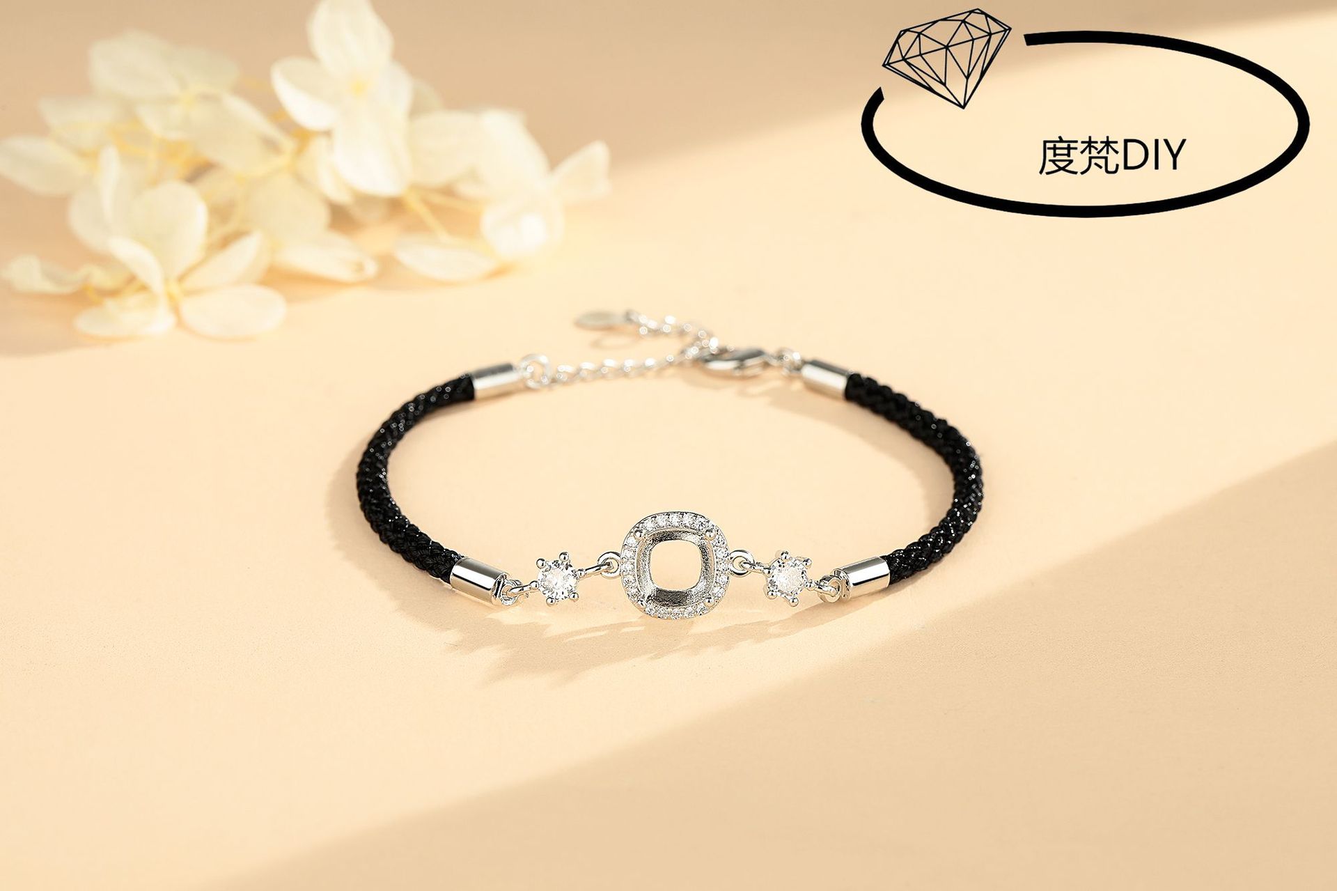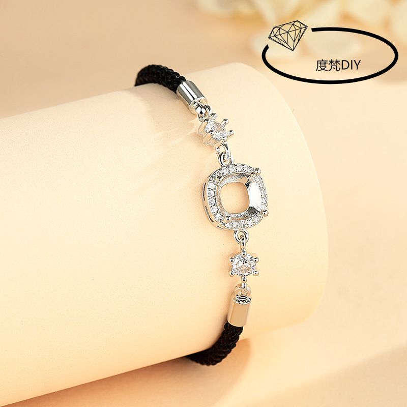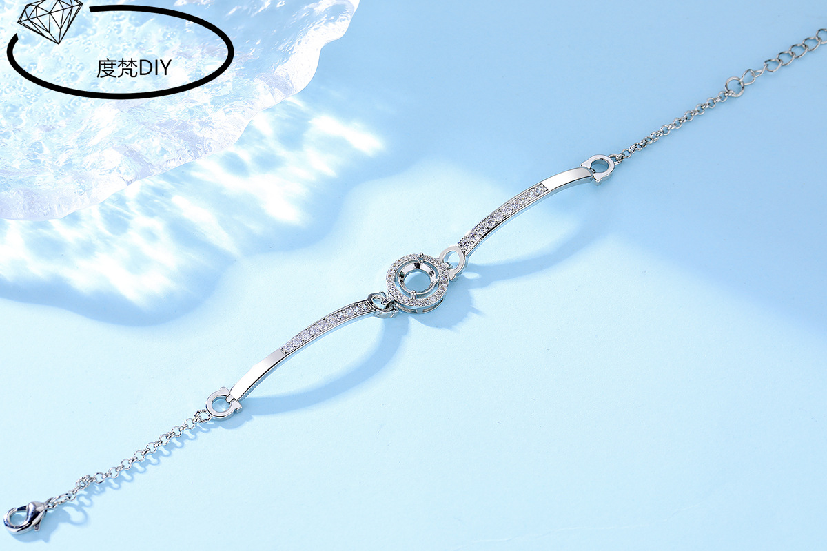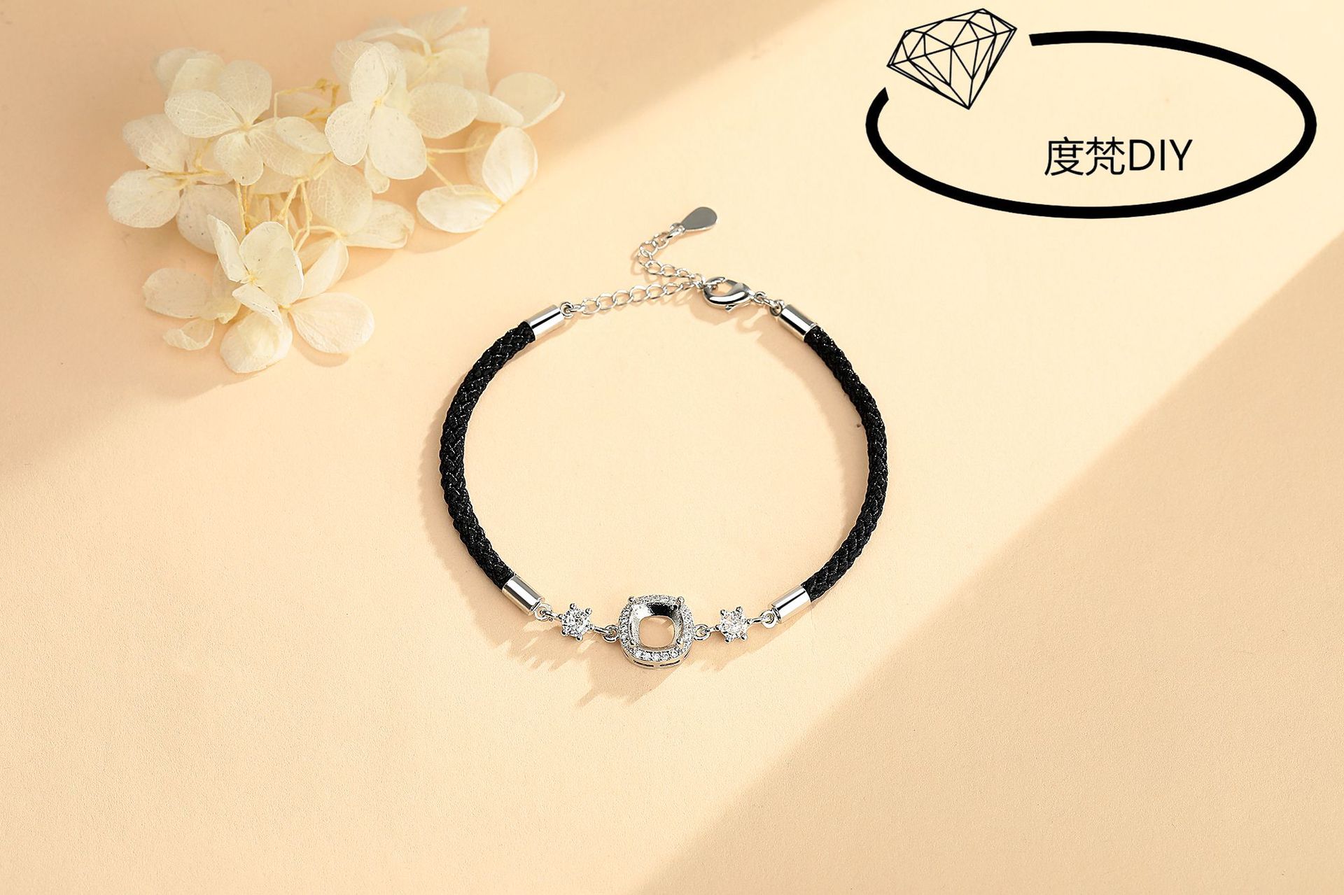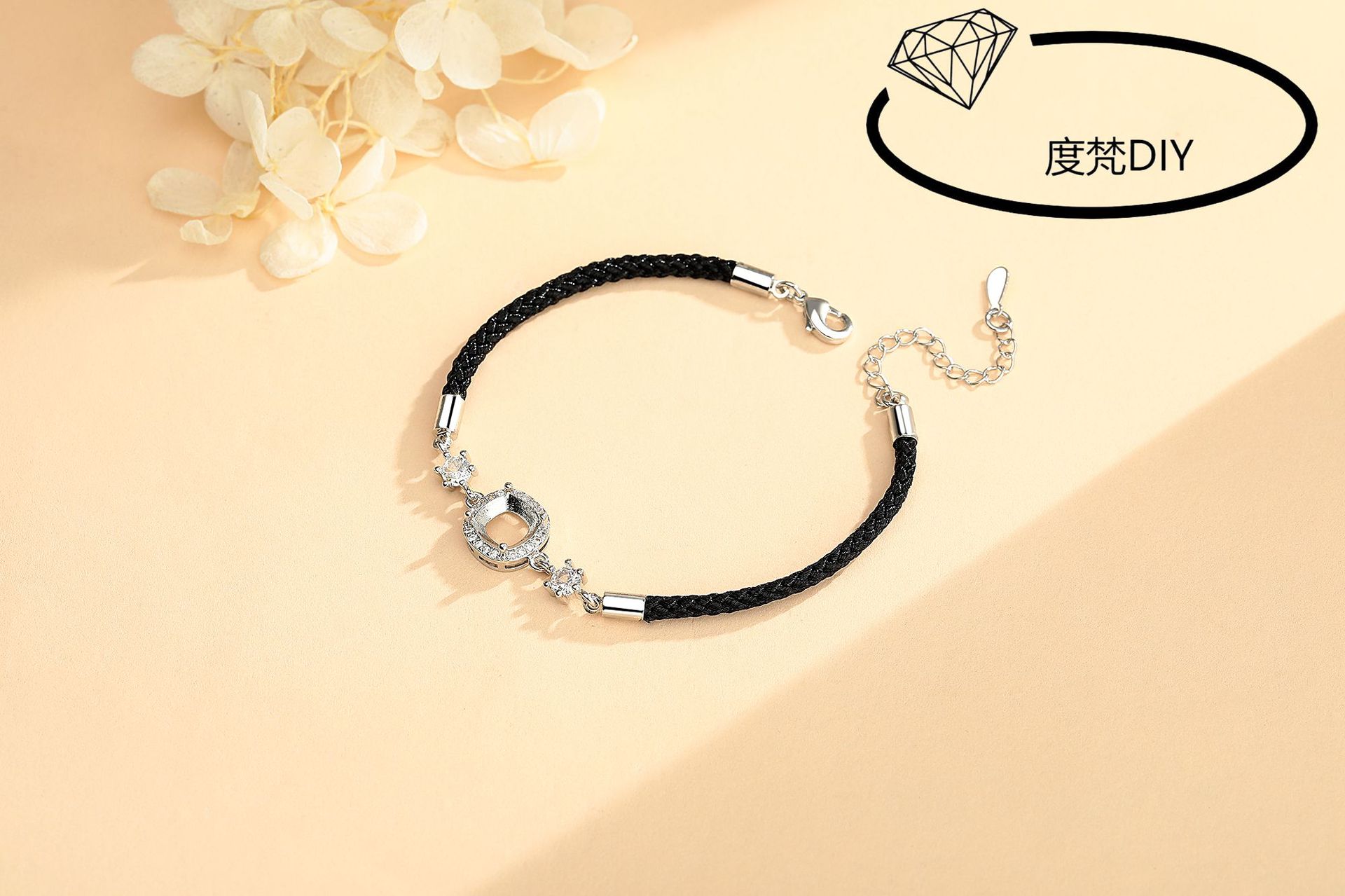 新款公主时尚小太阳镀925银手镯手链空托女半镯半链镯子托镶嵌diy