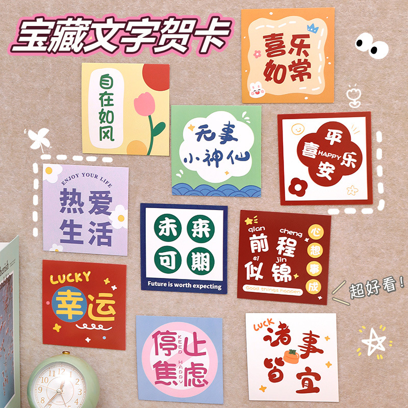 宝藏文字祝福贺卡 儿童节手写diy留言明信片可爱文艺装饰小卡片