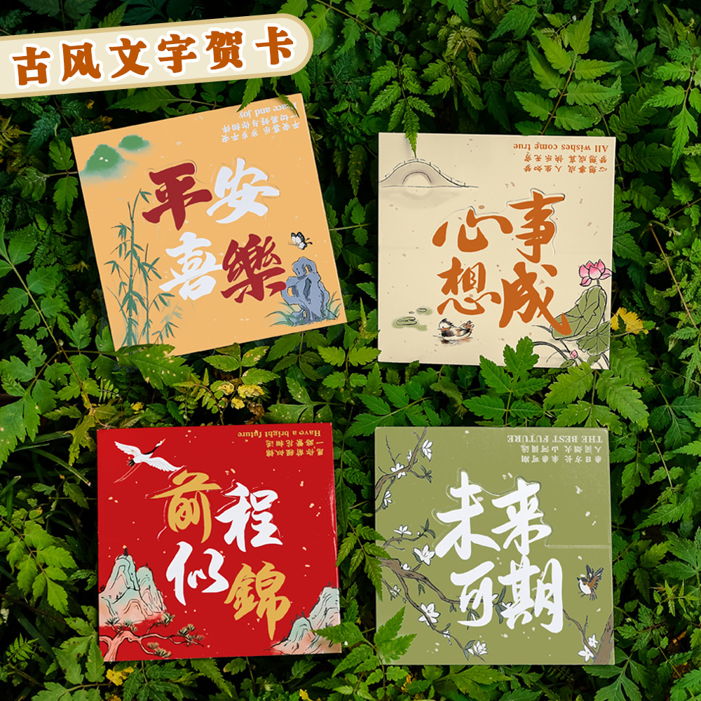 古风励志文字折叠贺卡 学生祝福留言小卡片教师节DIY礼物装饰卡头