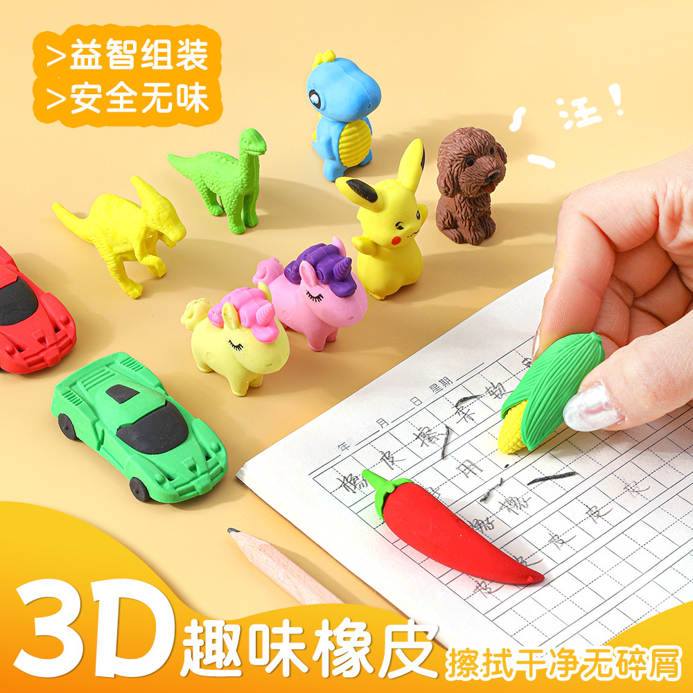 可爱橡皮擦批发创意橡皮文具皮卡丘甜造型恐龙学生小礼品奖品文具