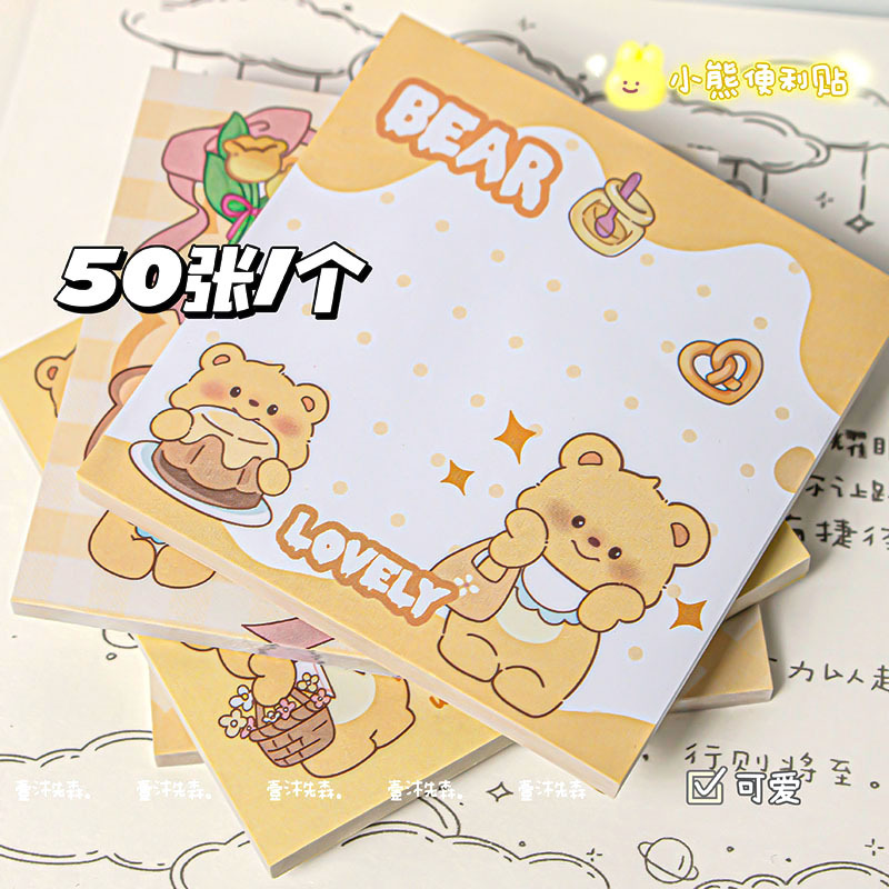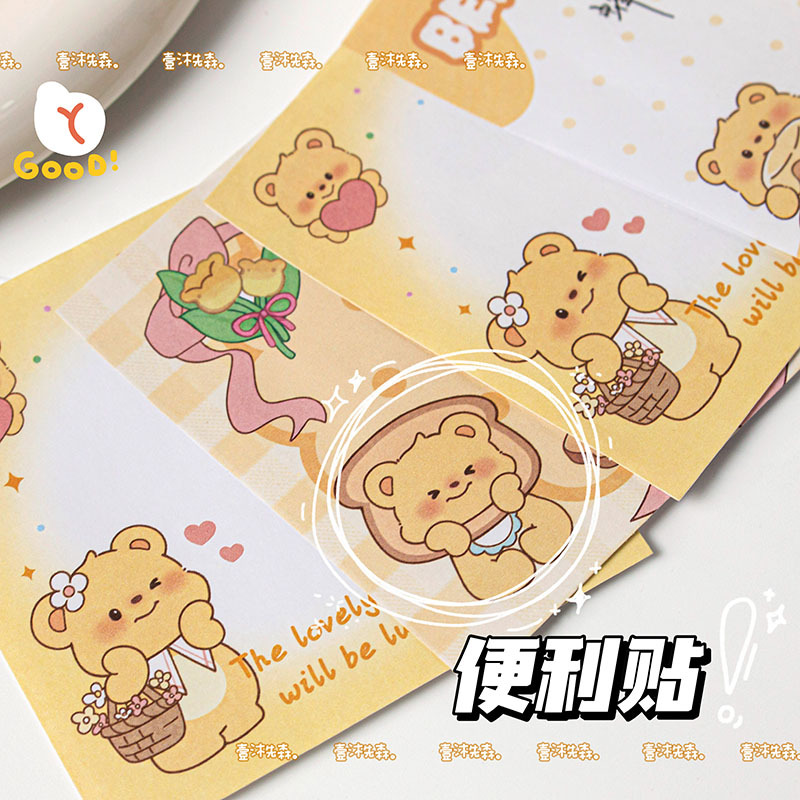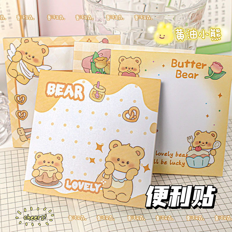 黄油小熊便利贴可爱卡通学生留言贴纸可撕便签本手帐高颜值装饰贴