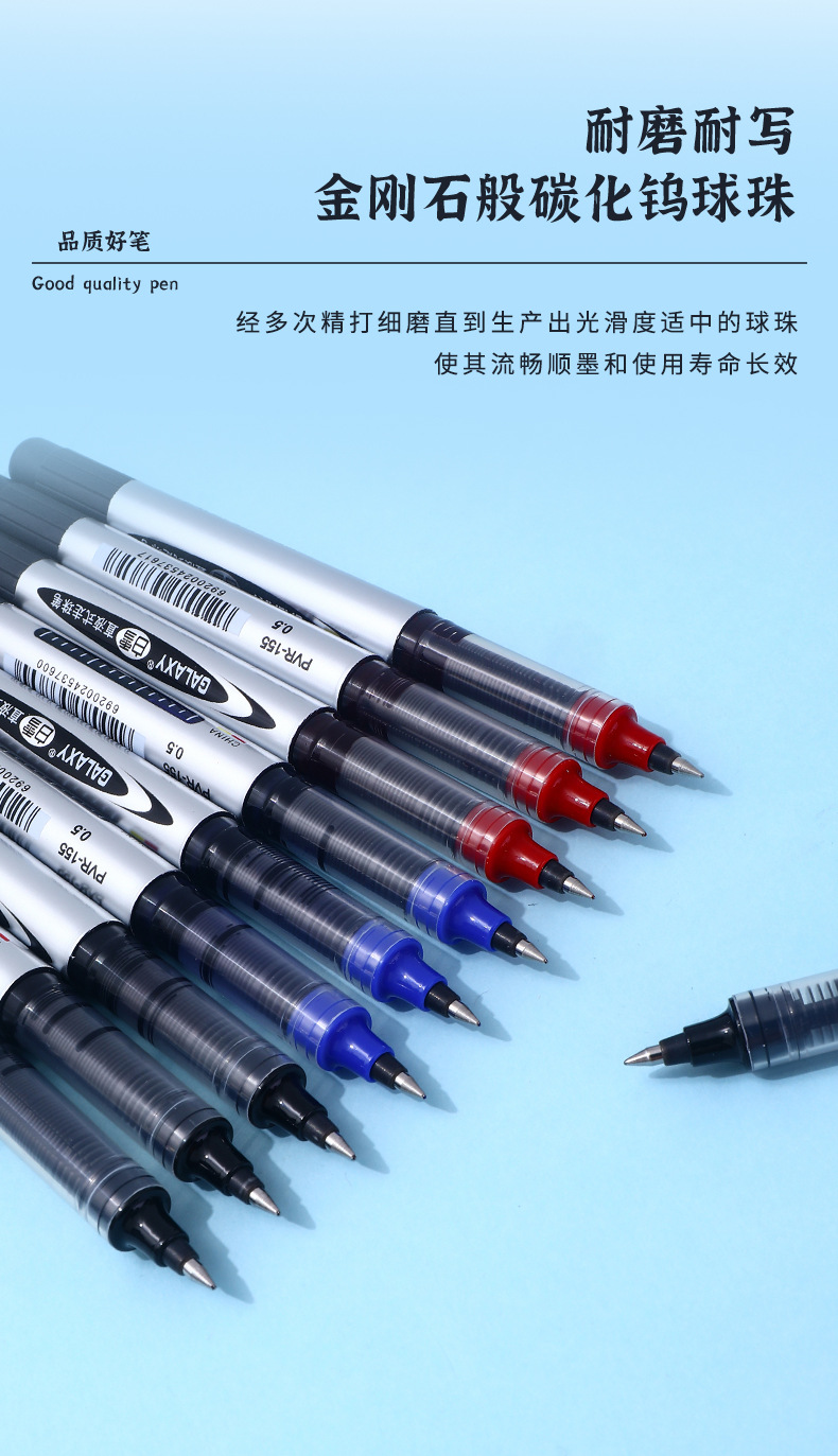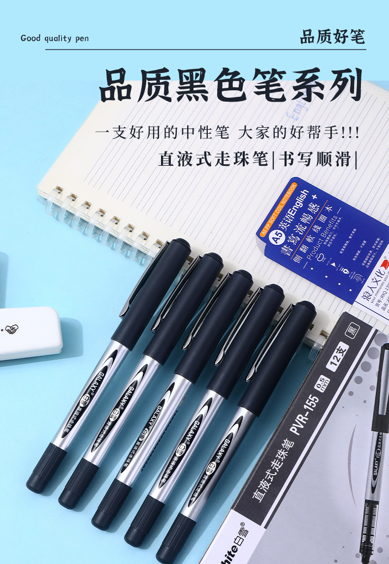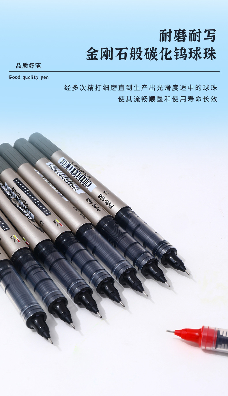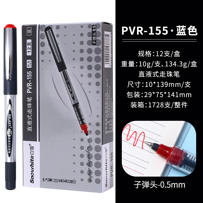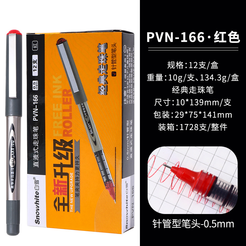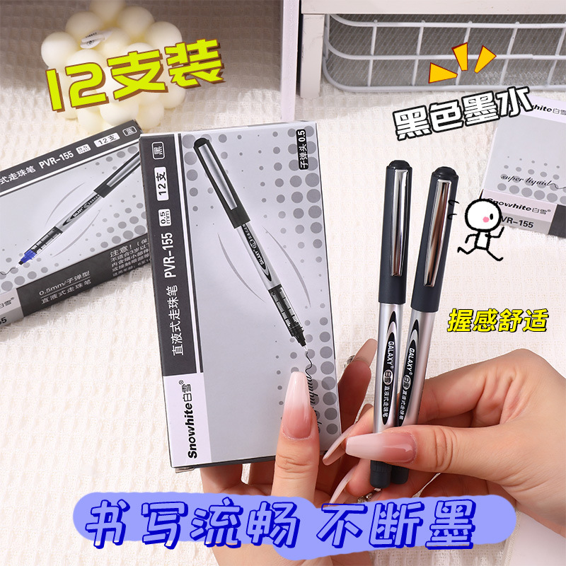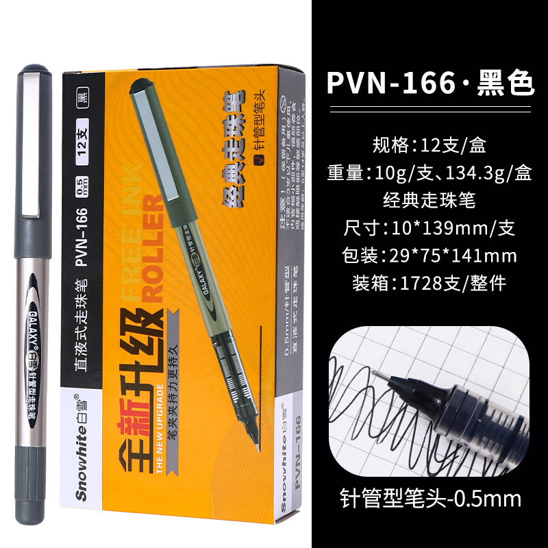 白雪直液式走珠笔155/166子弹头0.5办公用水笔考试碳素签字中性笔