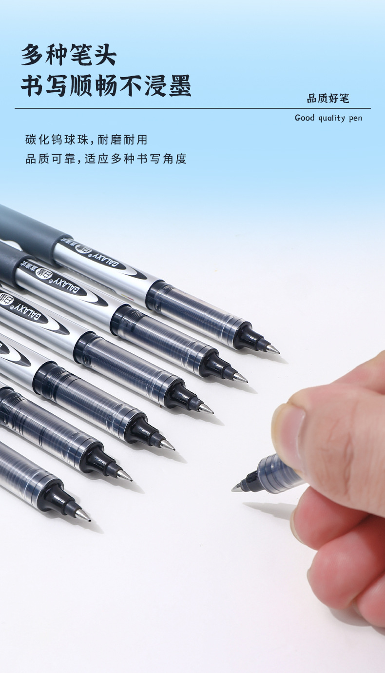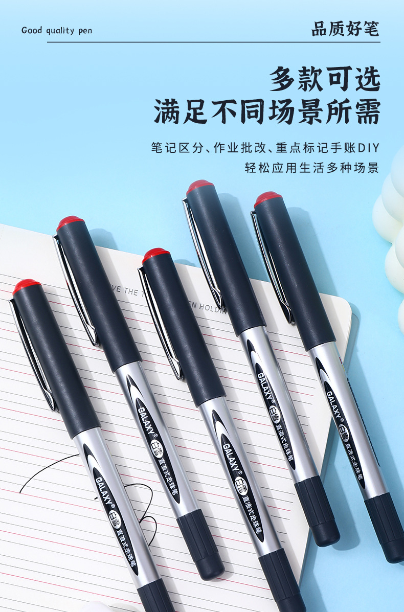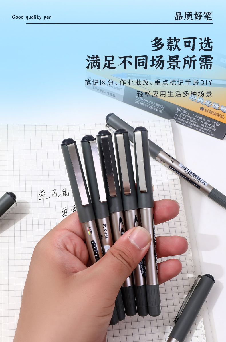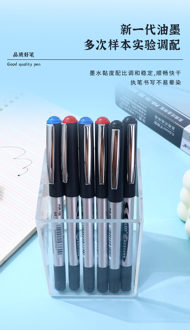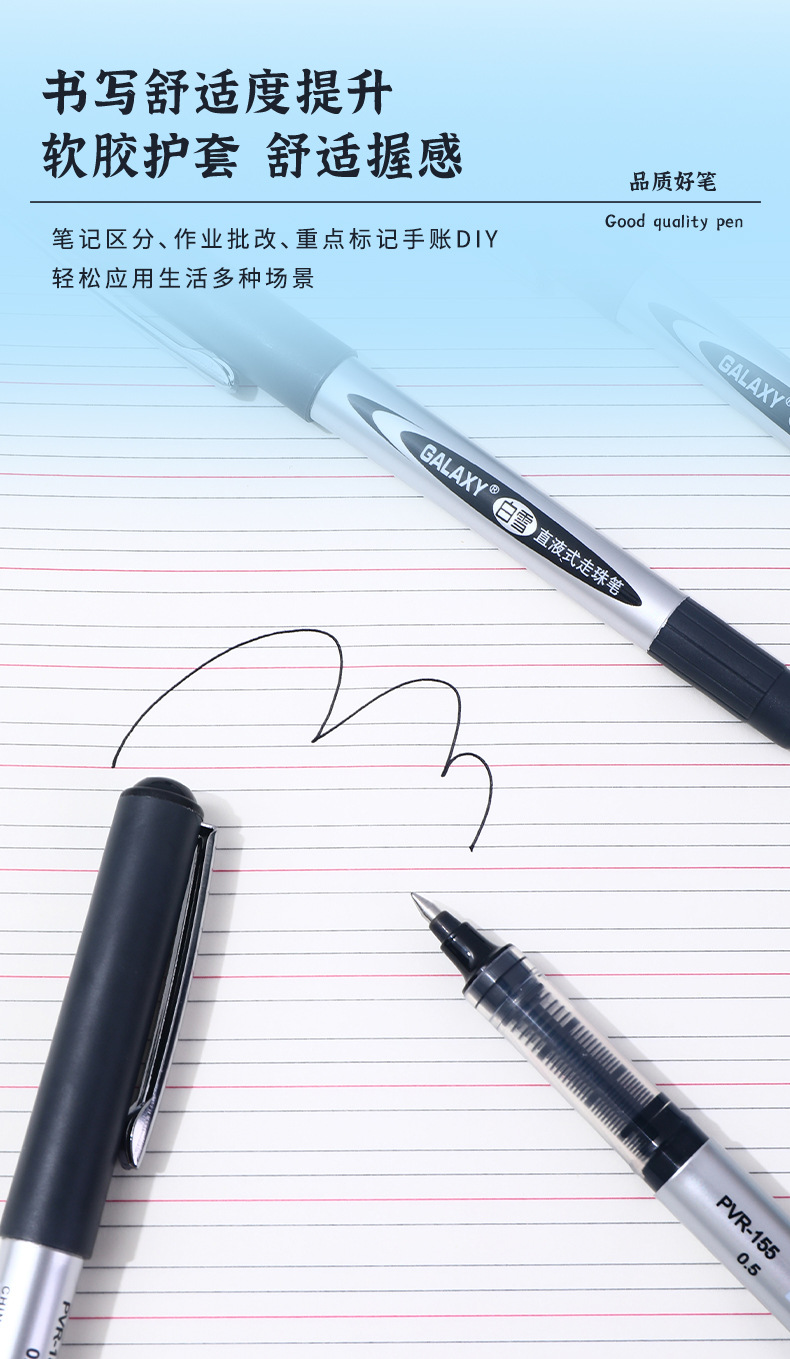 白雪直液式走珠笔155/166子弹头0.5办公用水笔考试碳素签字中性笔
