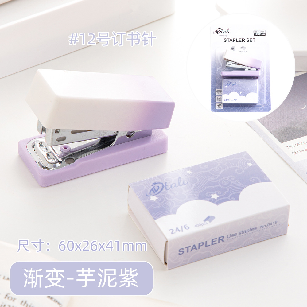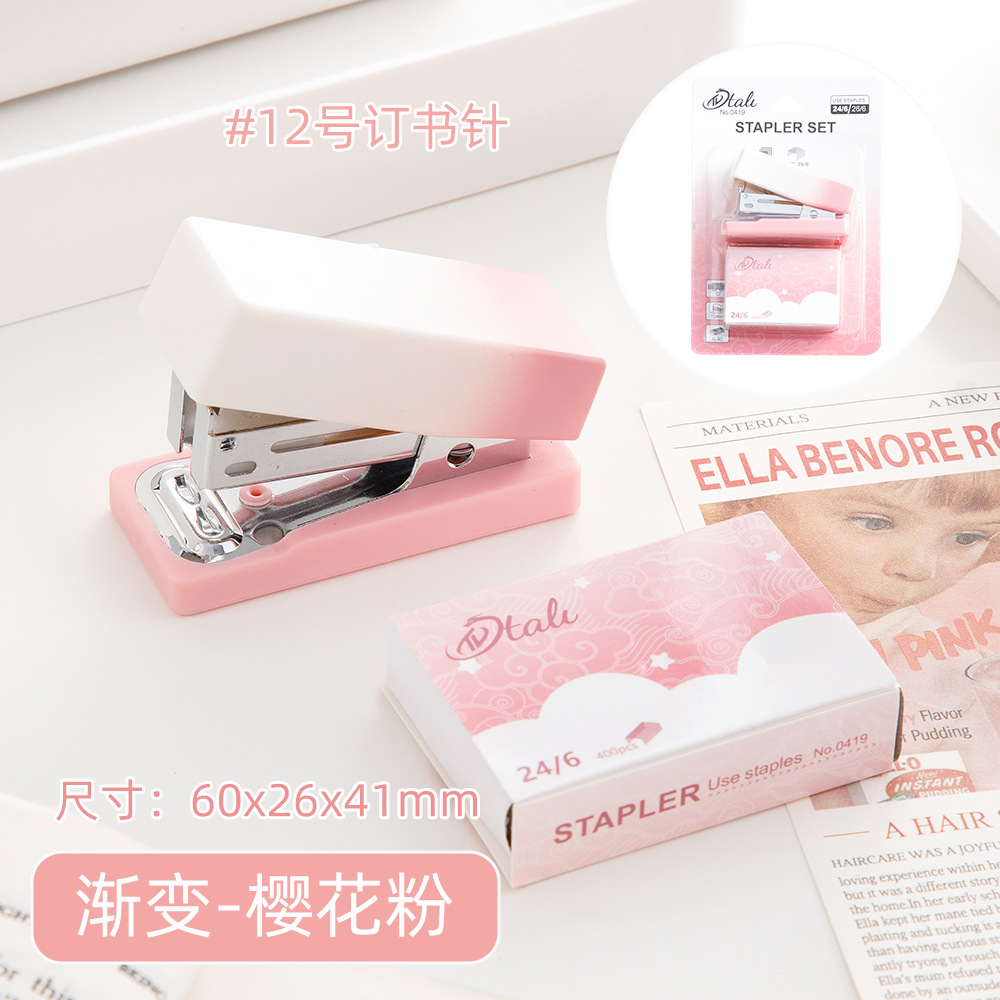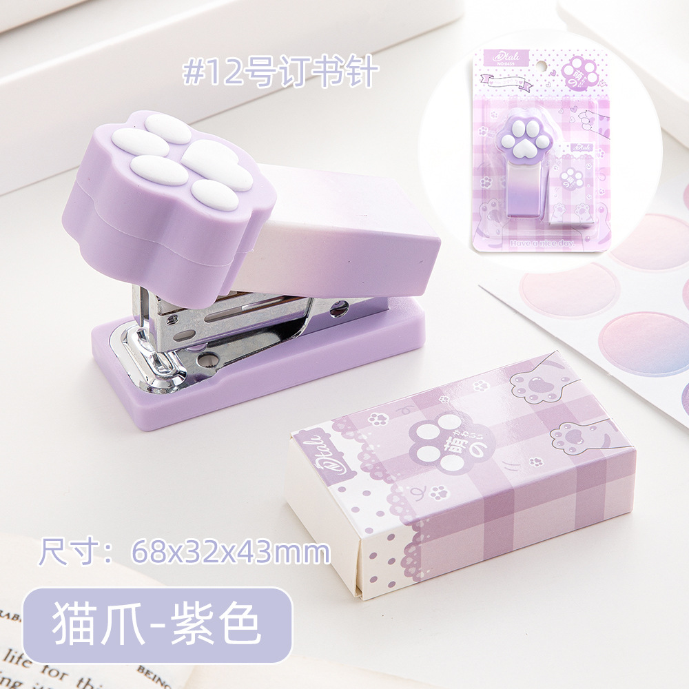 渐变马卡龙色迷你猫爪省力订书器学生办公用便携式装订用品订书机