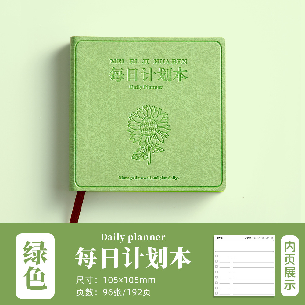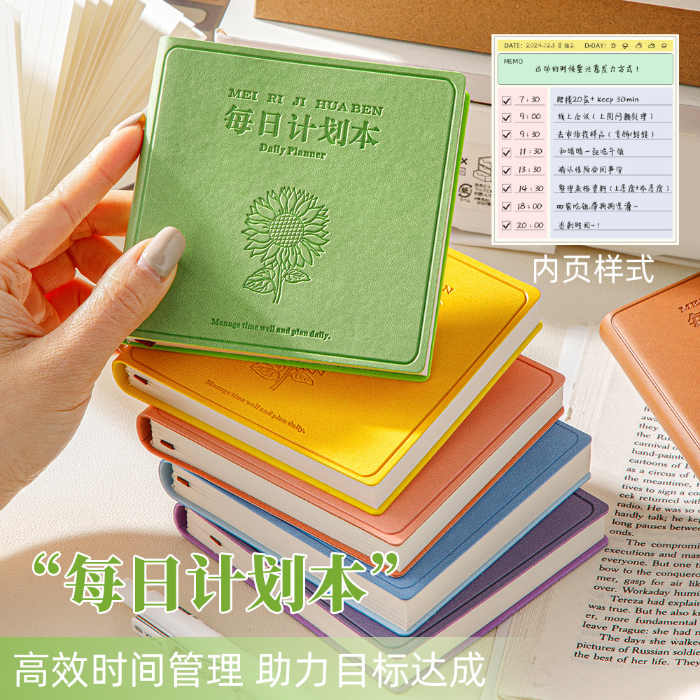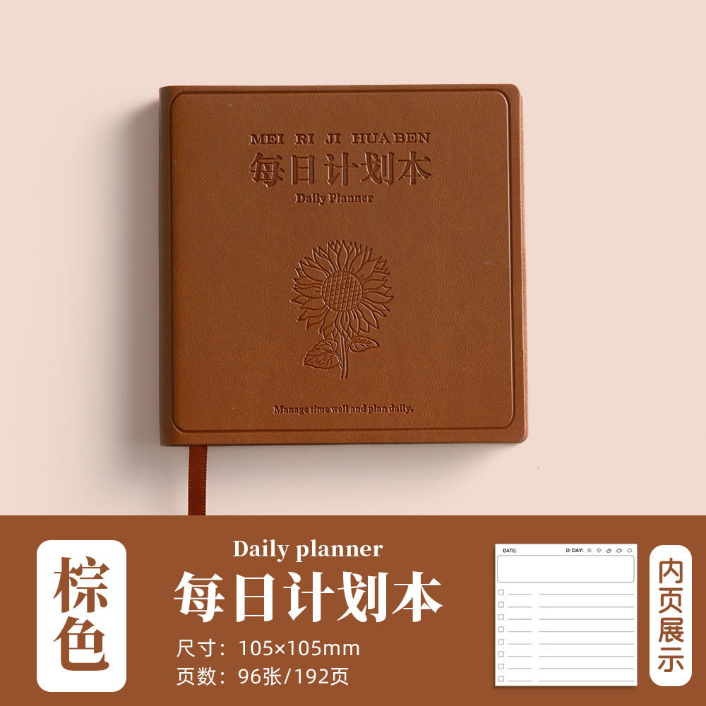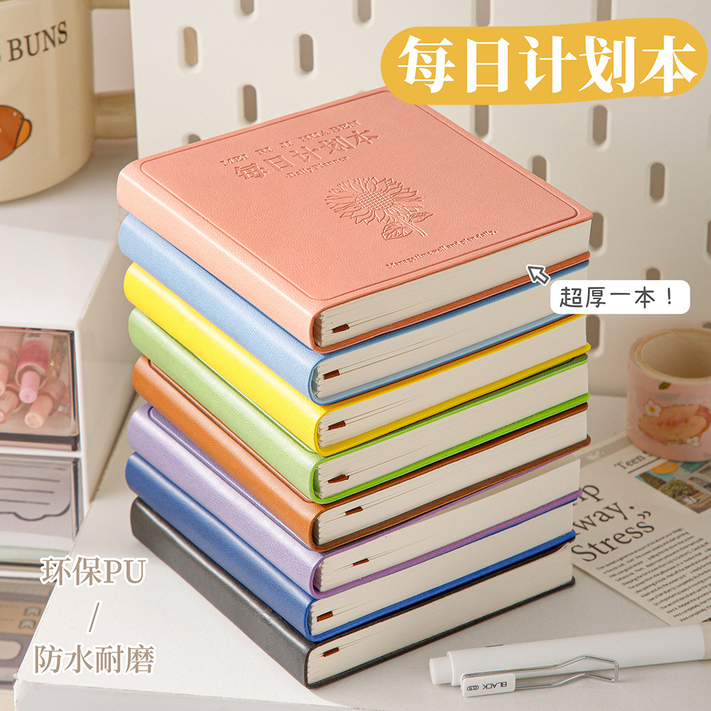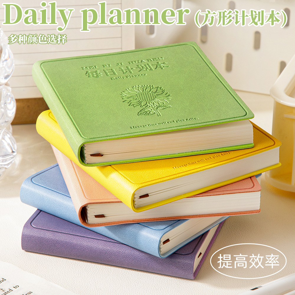 每日计划本方形笔记本子高颜值皮面本批发时间管理自律打卡日程本