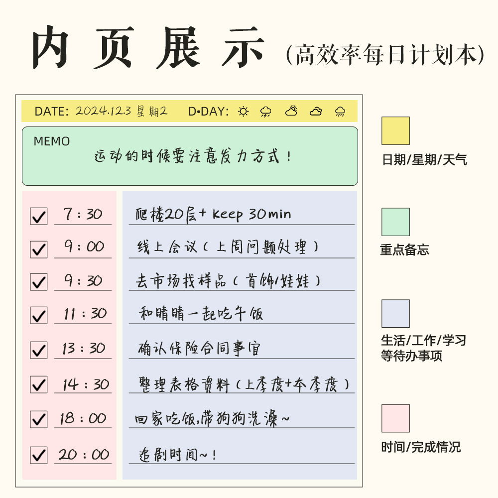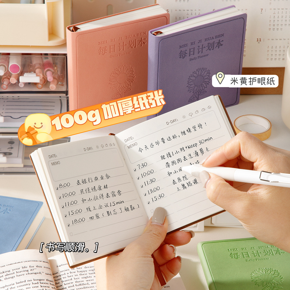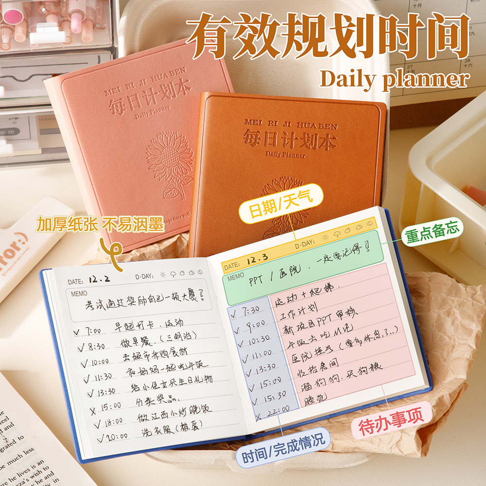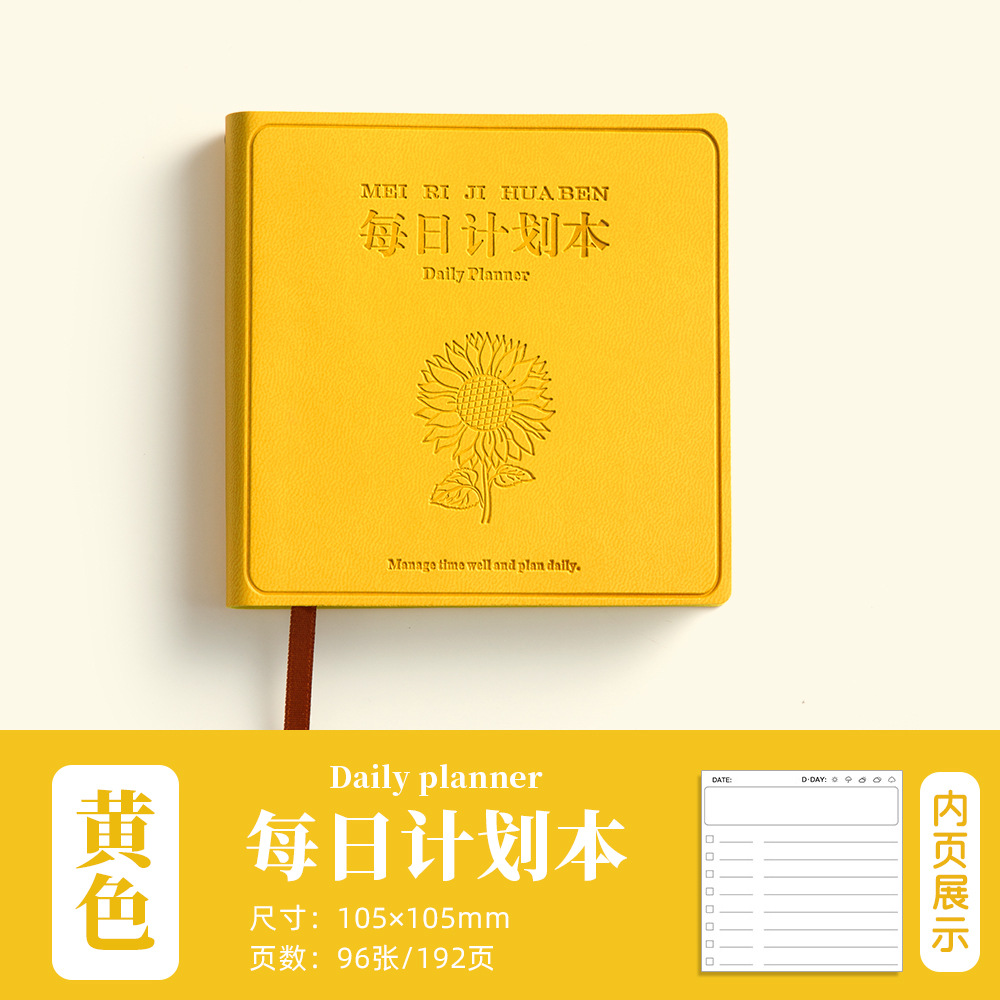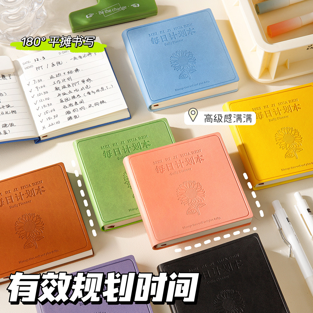 每日计划本方形笔记本子高颜值皮面本批发时间管理自律打卡日程本