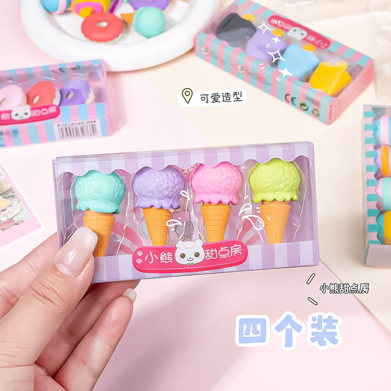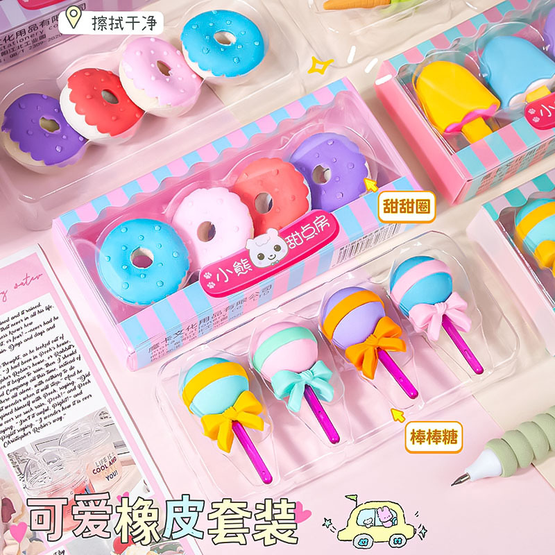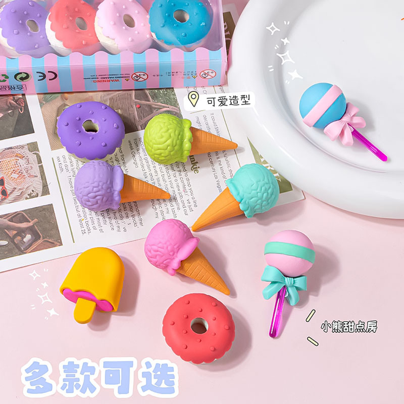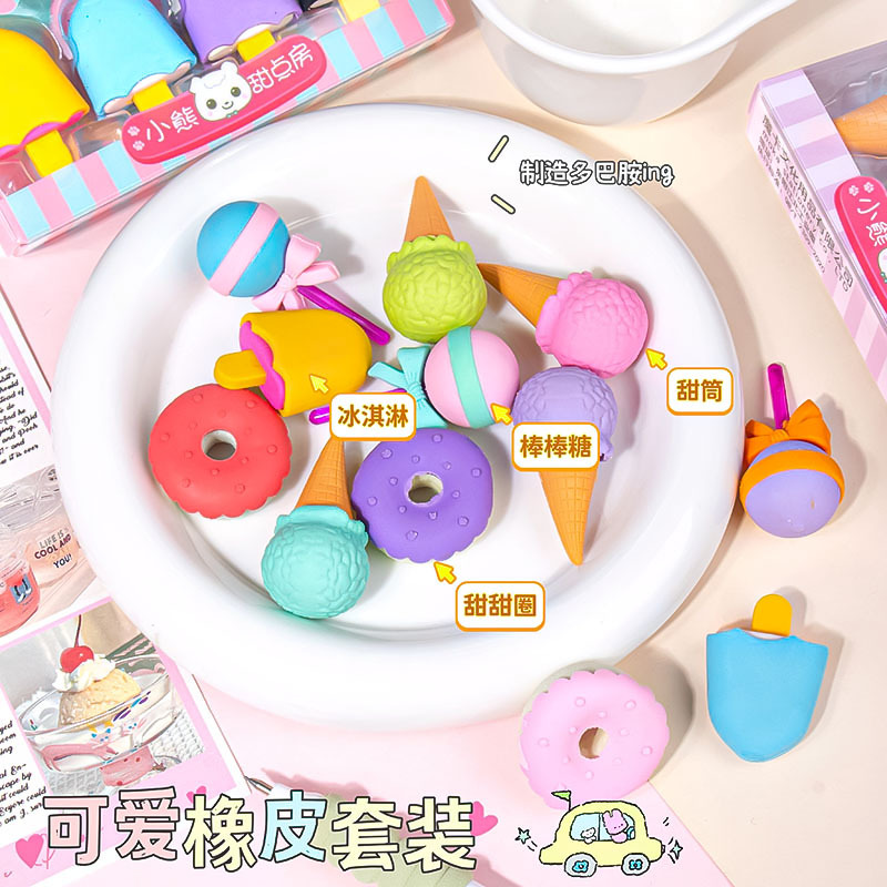 橡皮擦创意卡通礼盒橡皮学生节日奖品礼物仿真汉堡甜点橡皮擦批发