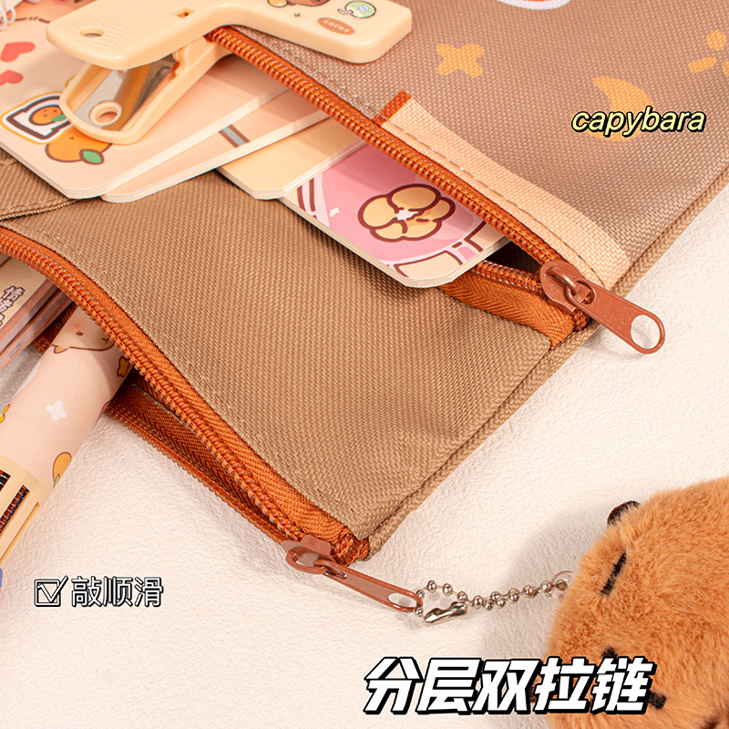 卡皮巴拉补习袋文件袋试卷袋学生补课学习手提袋拉链款文件收纳袋
