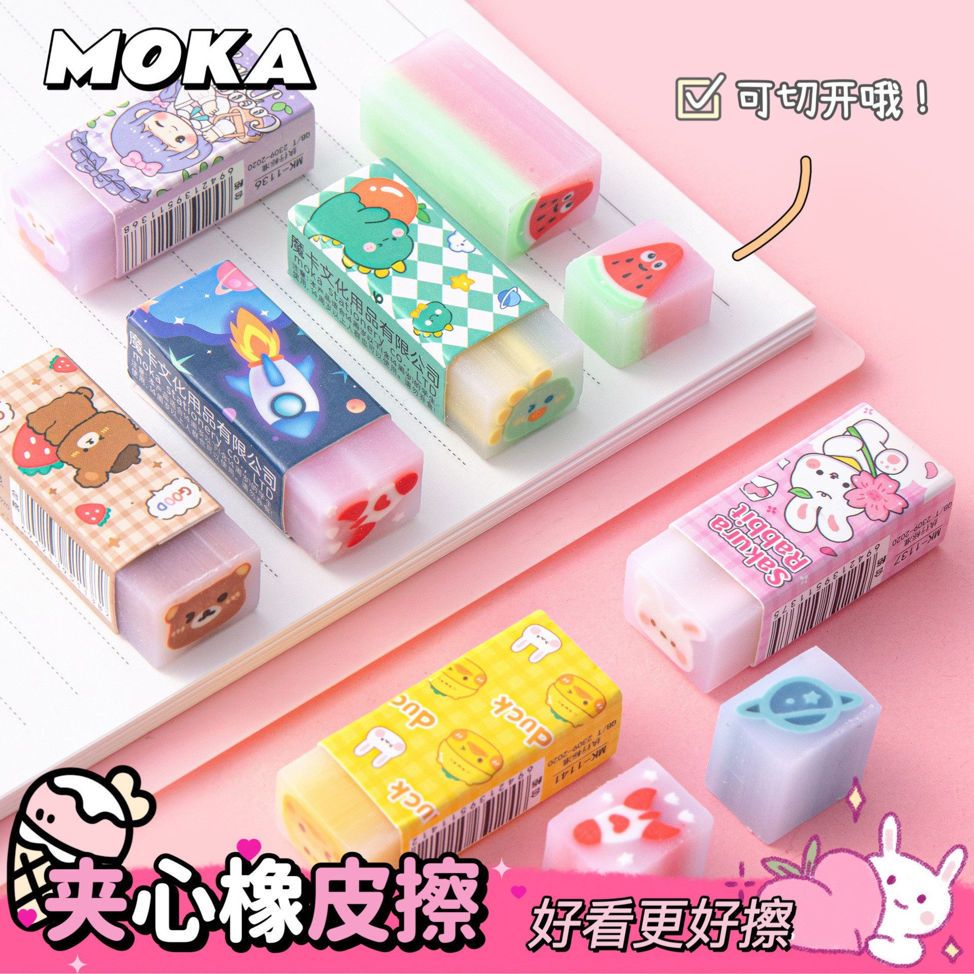 高颜值卡通可爱夹心橡皮小学生奖品铅笔擦可切干净无屑橡皮擦批发