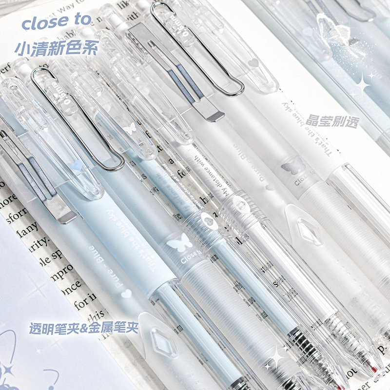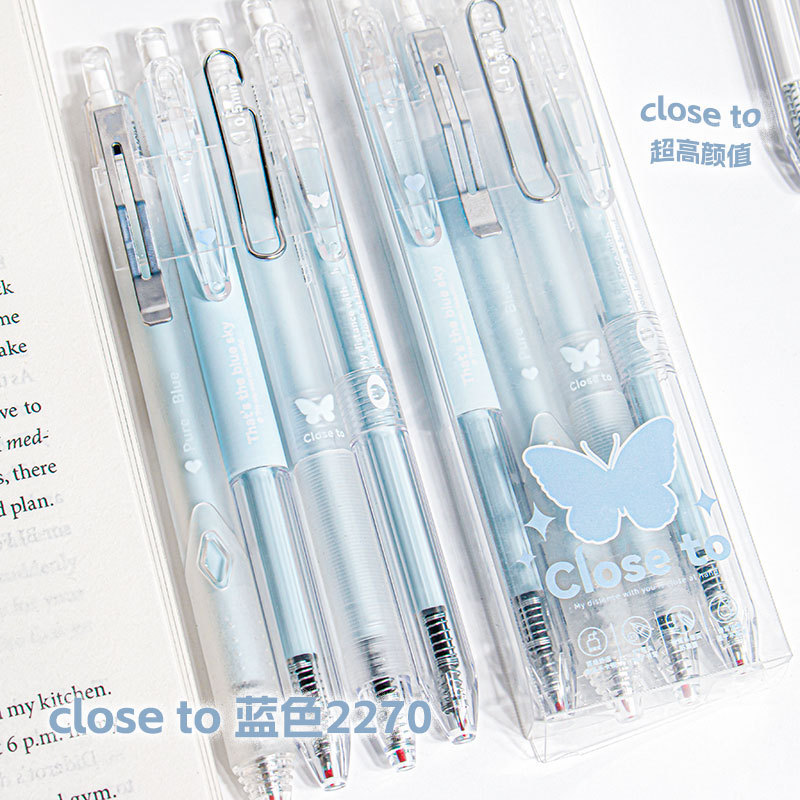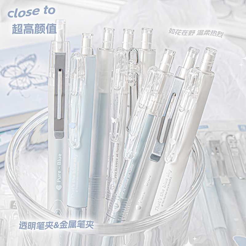 小清新按动笔高颜值ST头速干黑色水笔ins清透感中性笔套装刷题笔