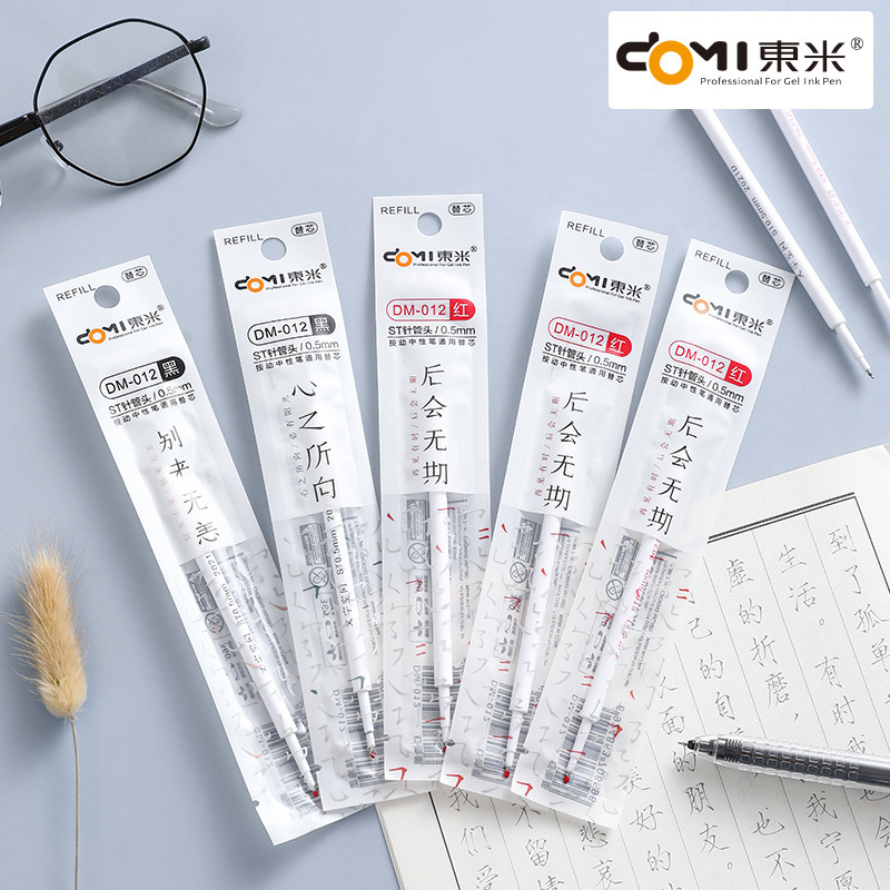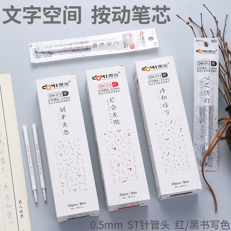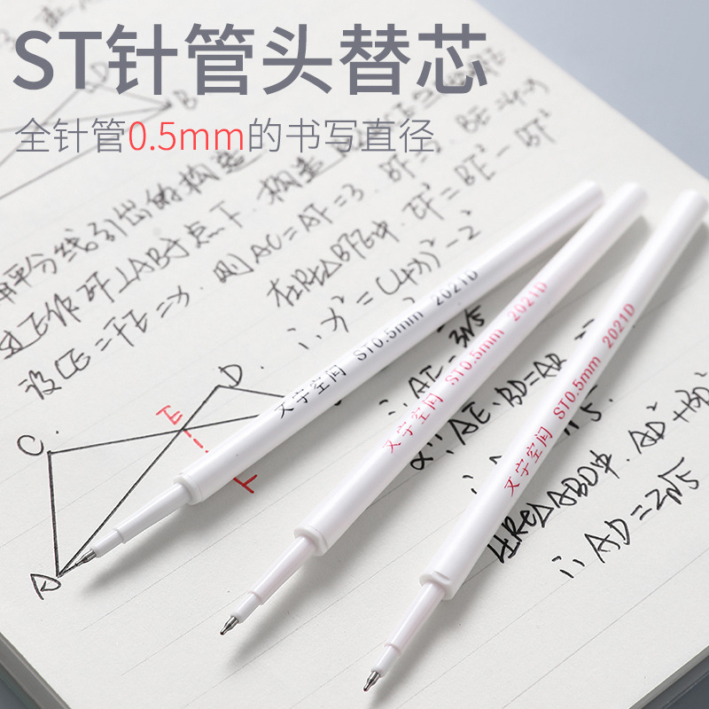 东米新款012通用笔芯白杆ST针管头0.5mm黑红替芯顺滑好写
