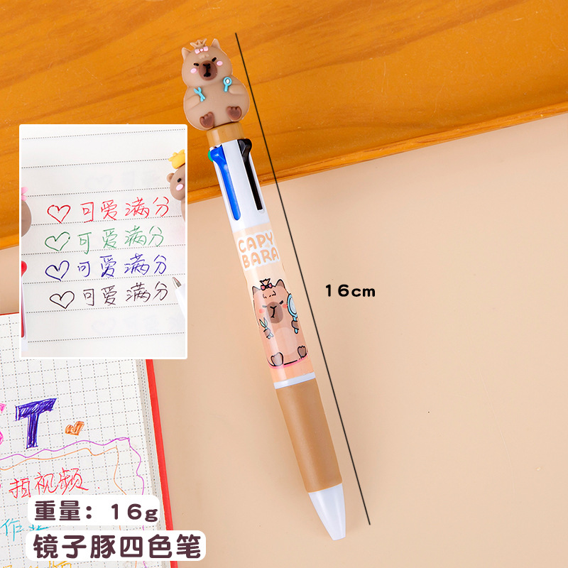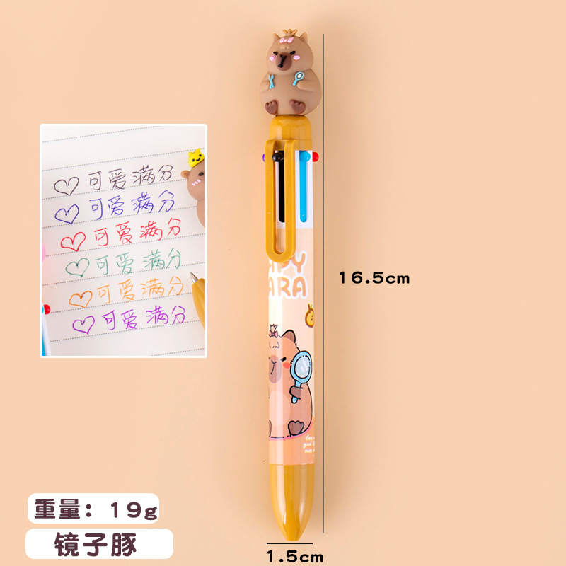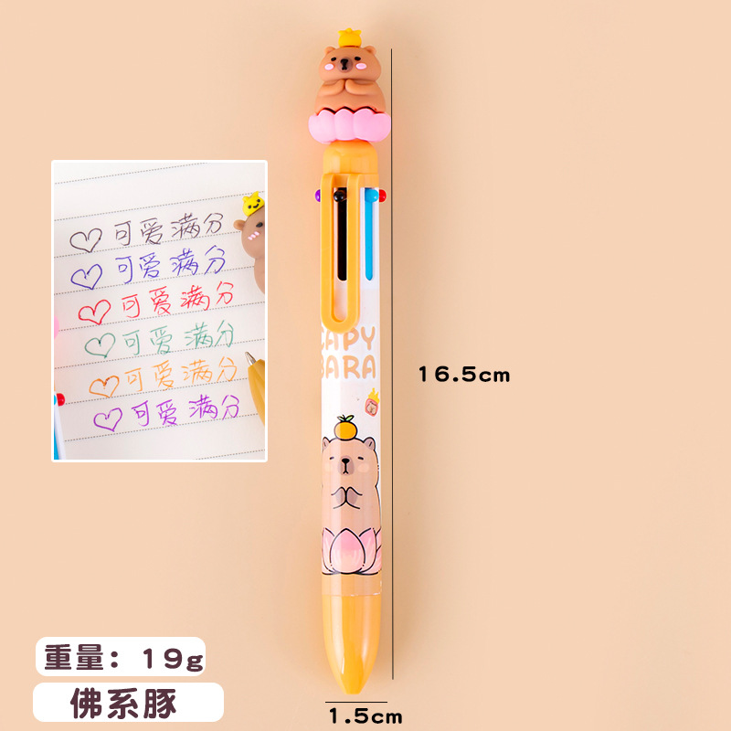 卡皮巴拉十色圆珠笔ins高颜值学生手账笔记号笔按动式卡通多色笔