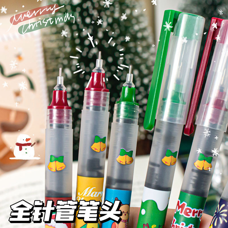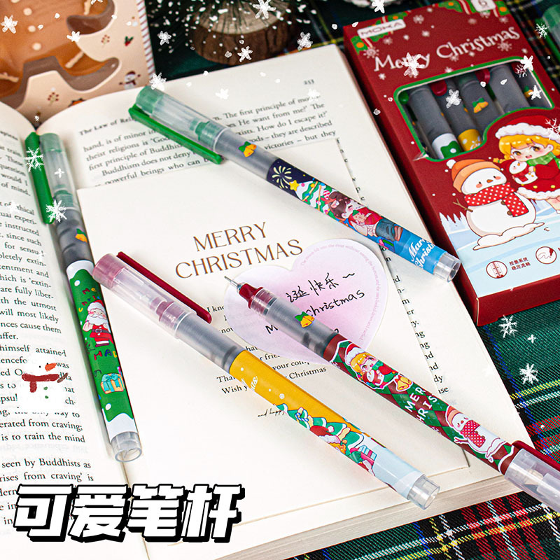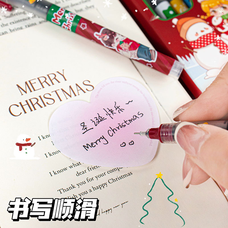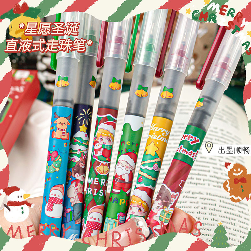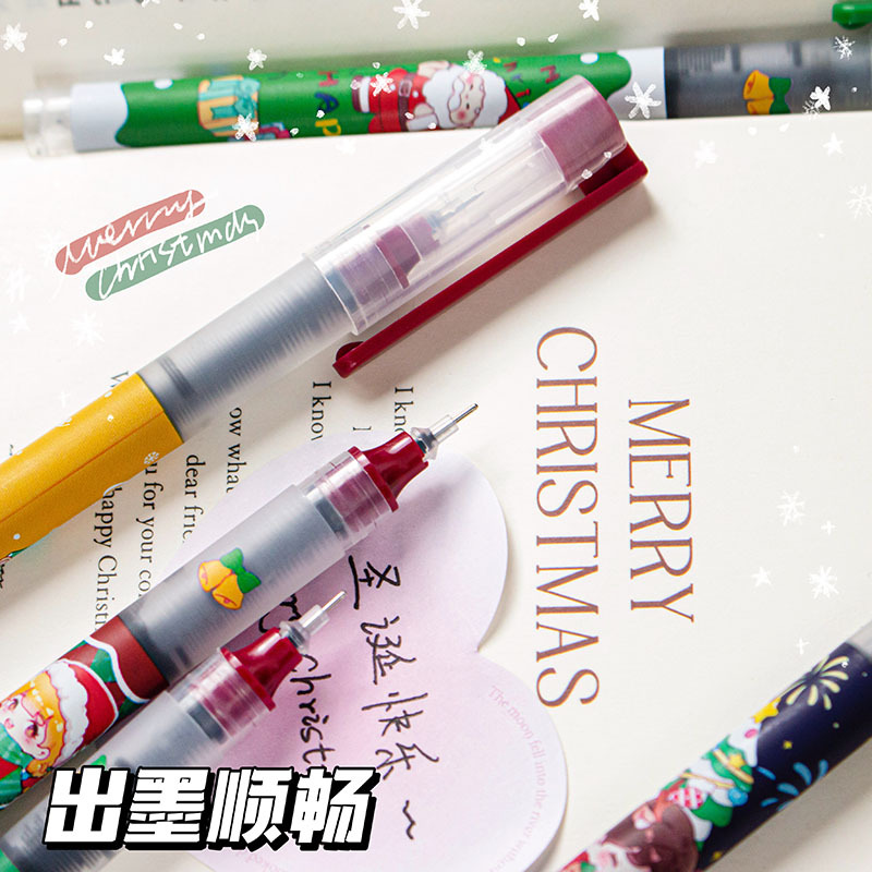 圣诞文具直液式走珠笔学生圣诞节礼物高颜值速干黑色水笔中性笔