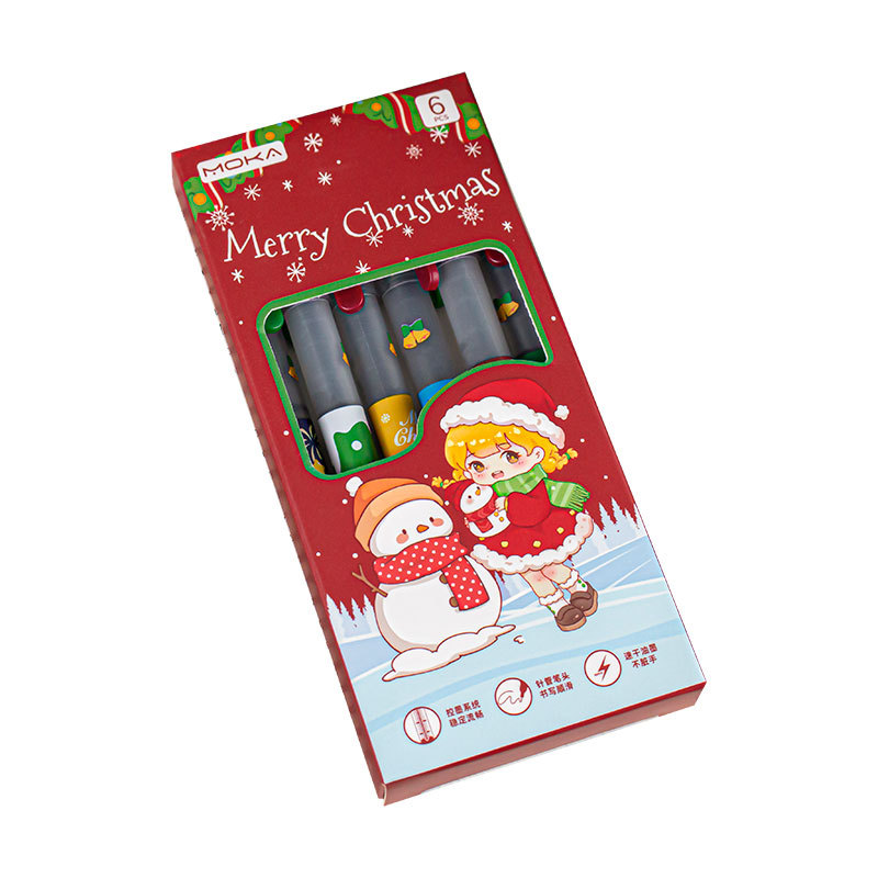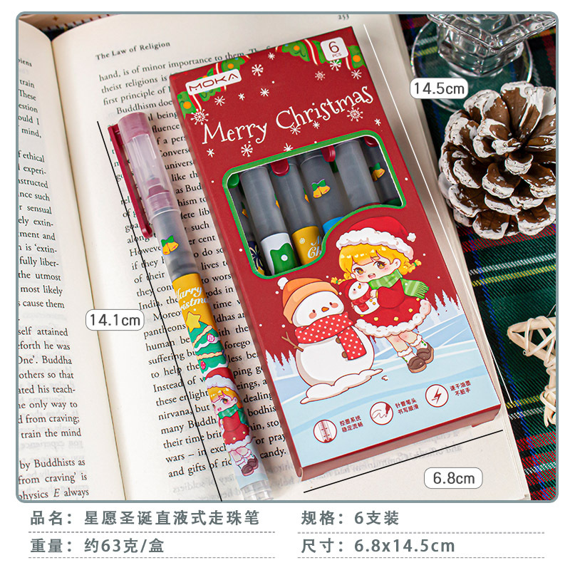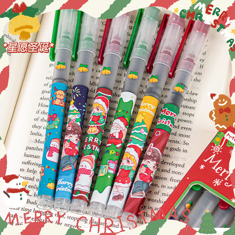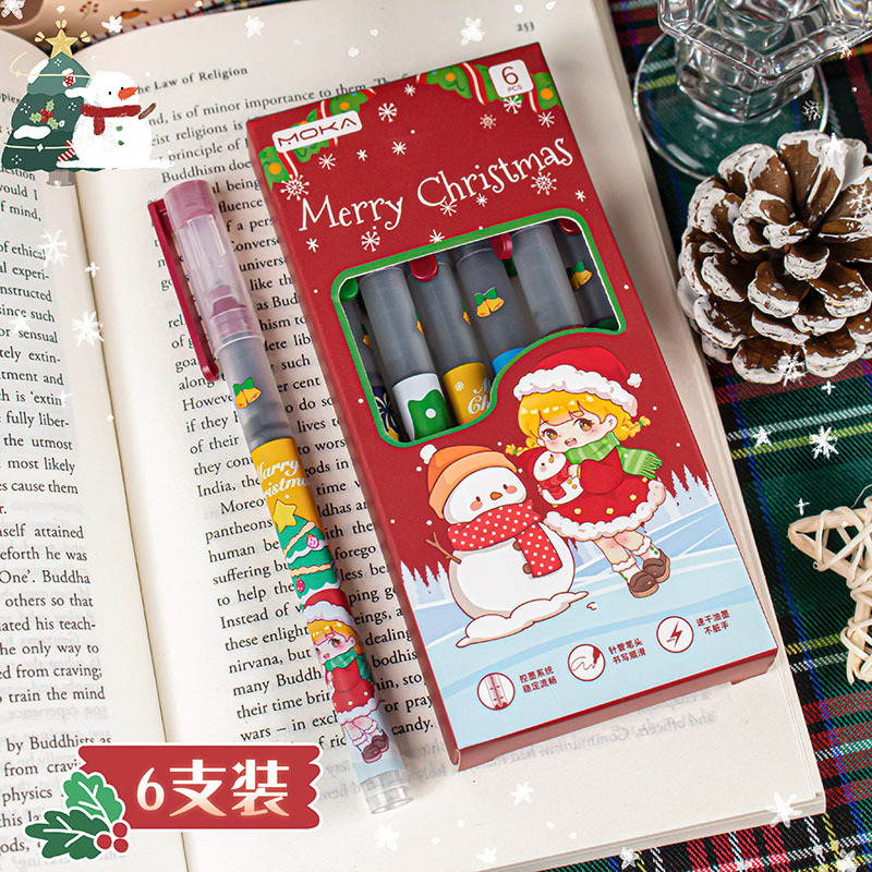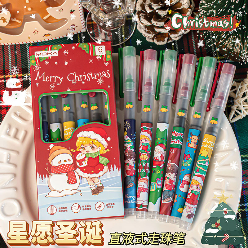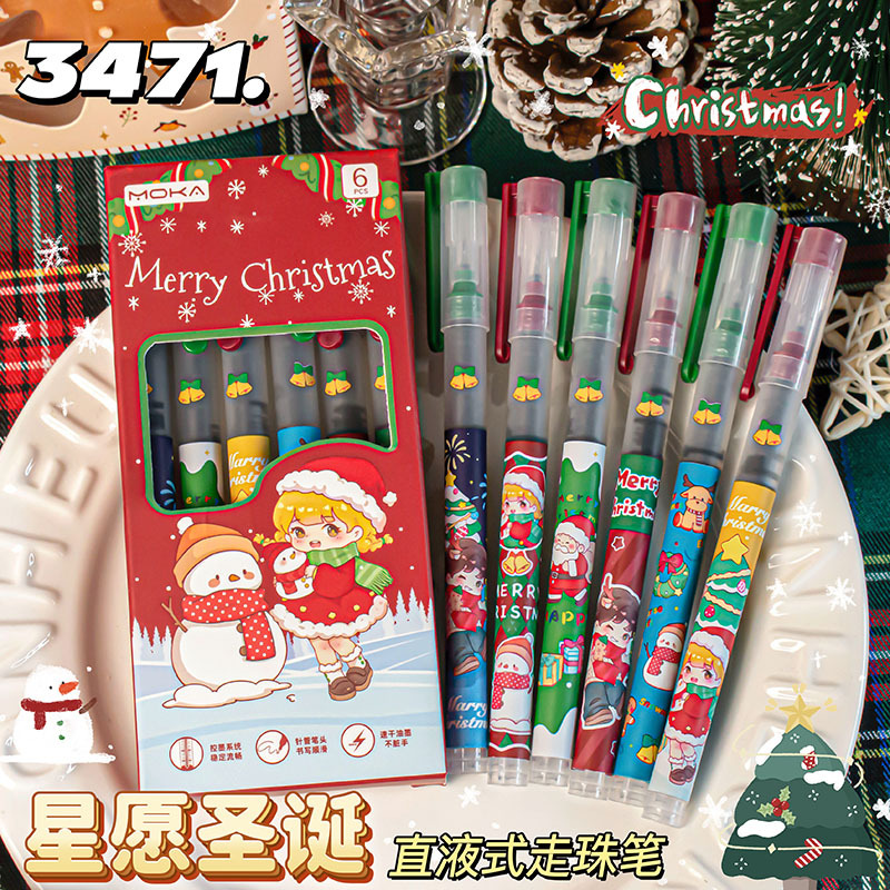 圣诞文具直液式走珠笔学生圣诞节礼物高颜值速干黑色水笔中性笔