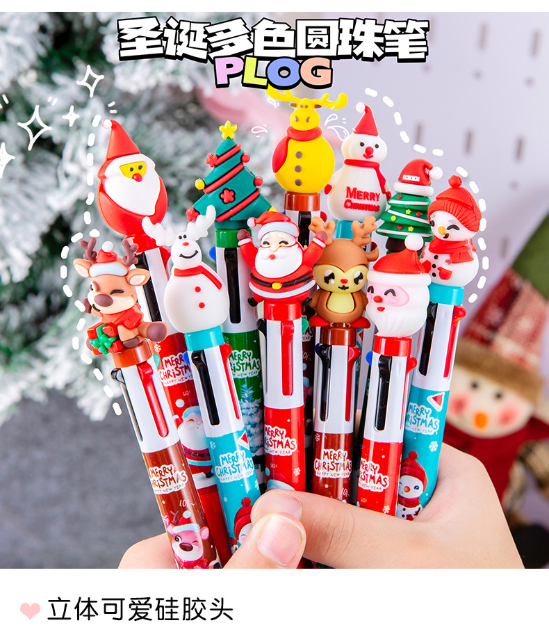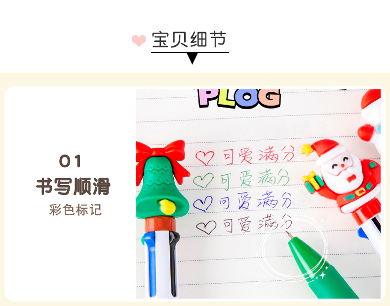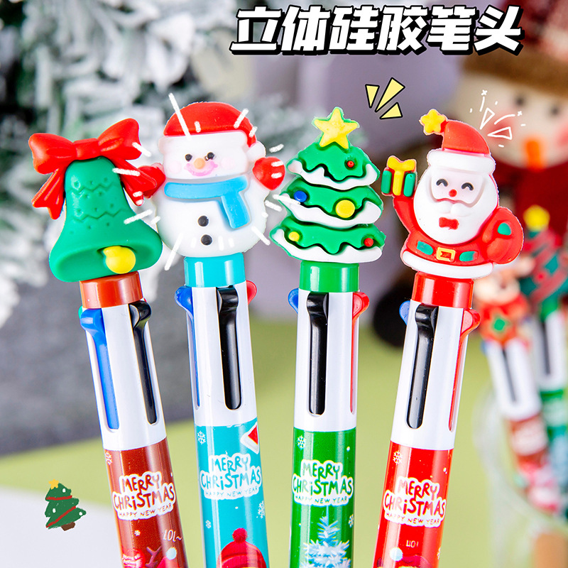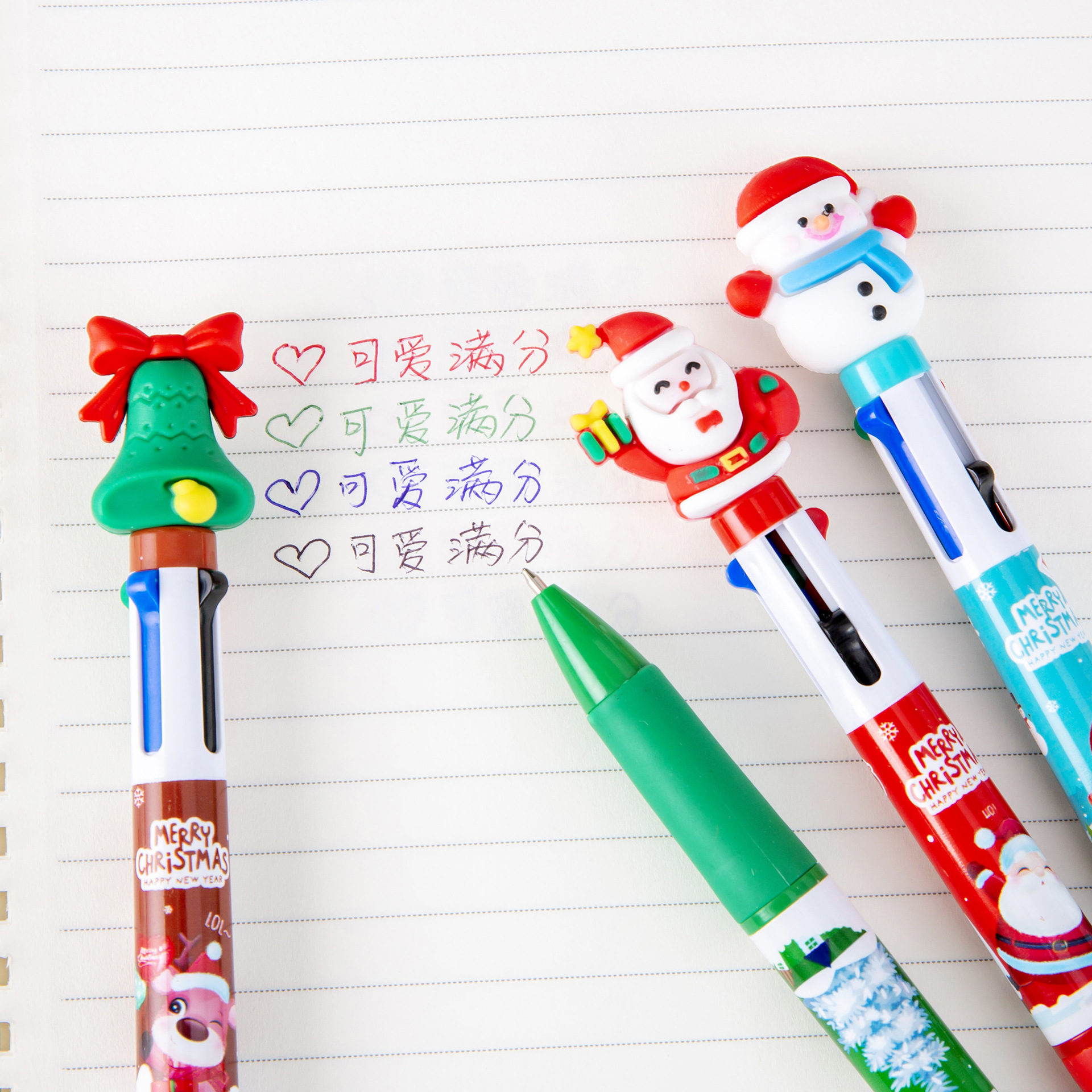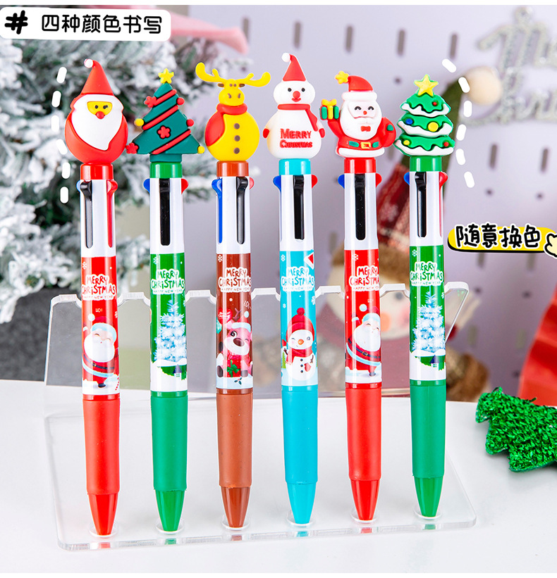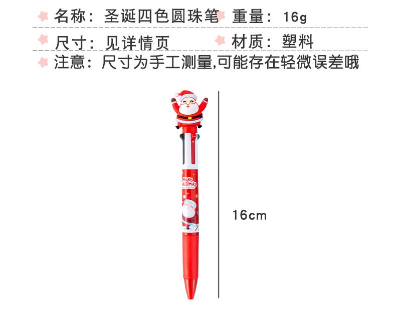 卡通圣诞四色圆珠笔圣诞节学生奖品礼物多色笔手账笔按动彩色笔