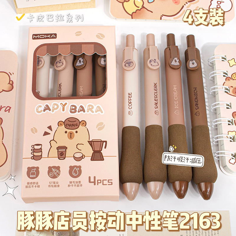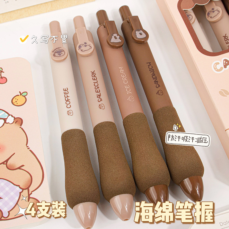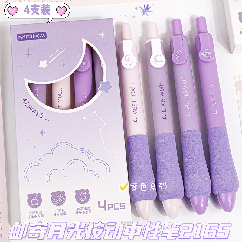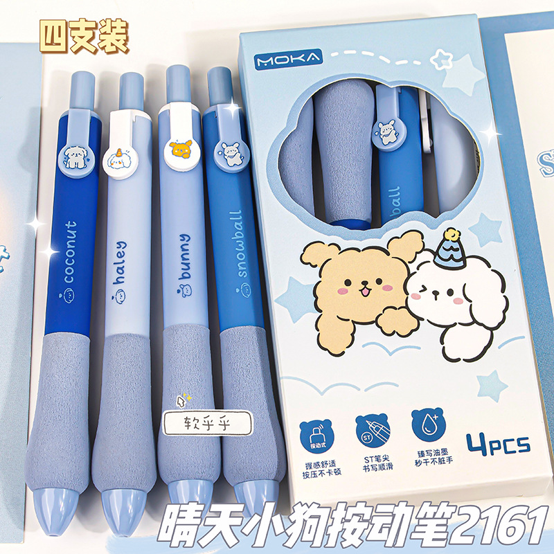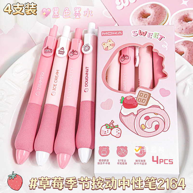 水滴渐变中性笔ins风小众减压按动笔4支装学生ST速干不断墨刷题笔