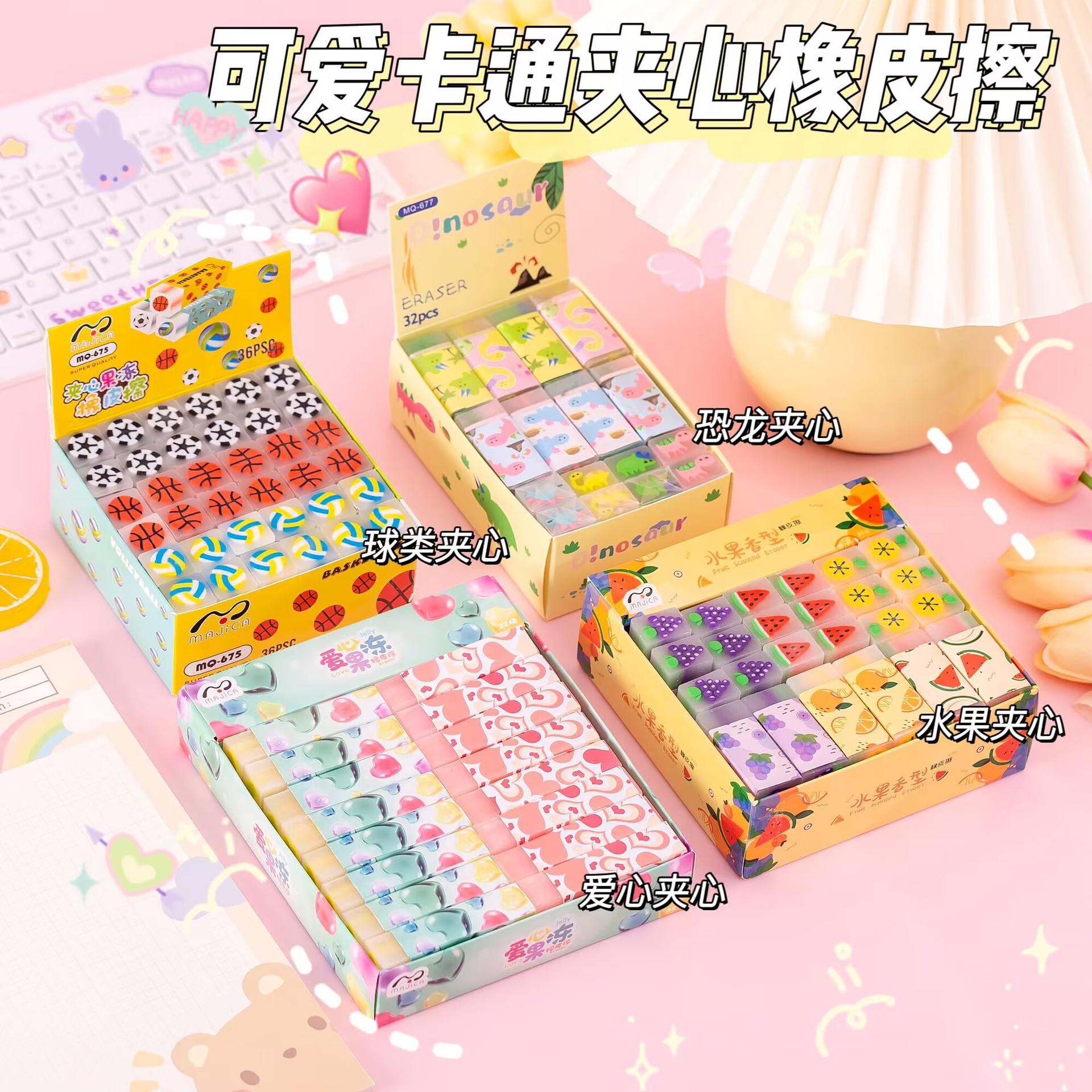 厂家批发创意水果橡皮擦可爱小学生文具礼品儿童可切果冻夹心橡皮