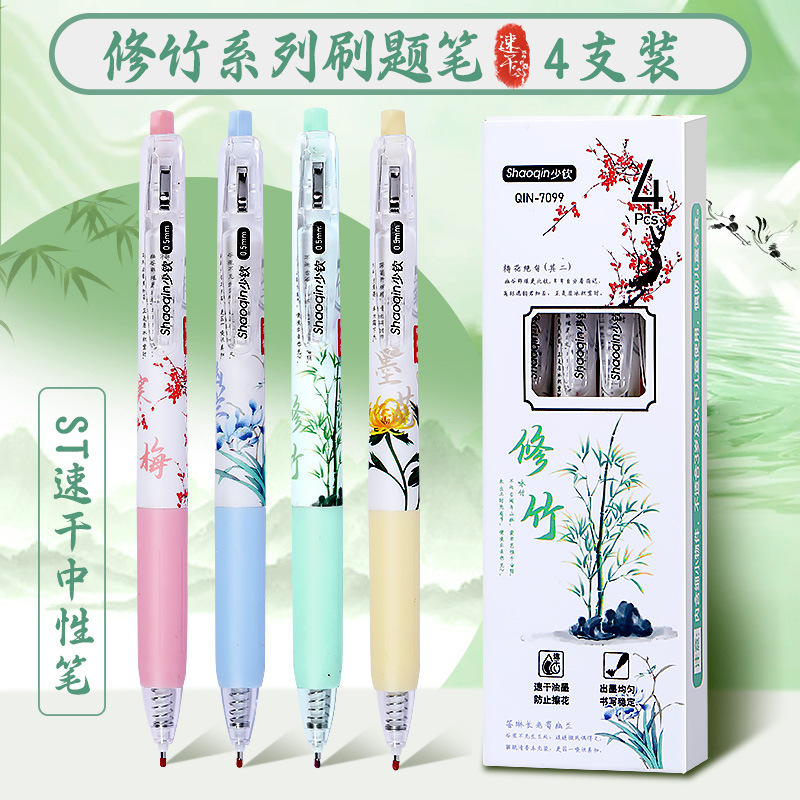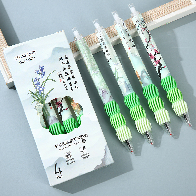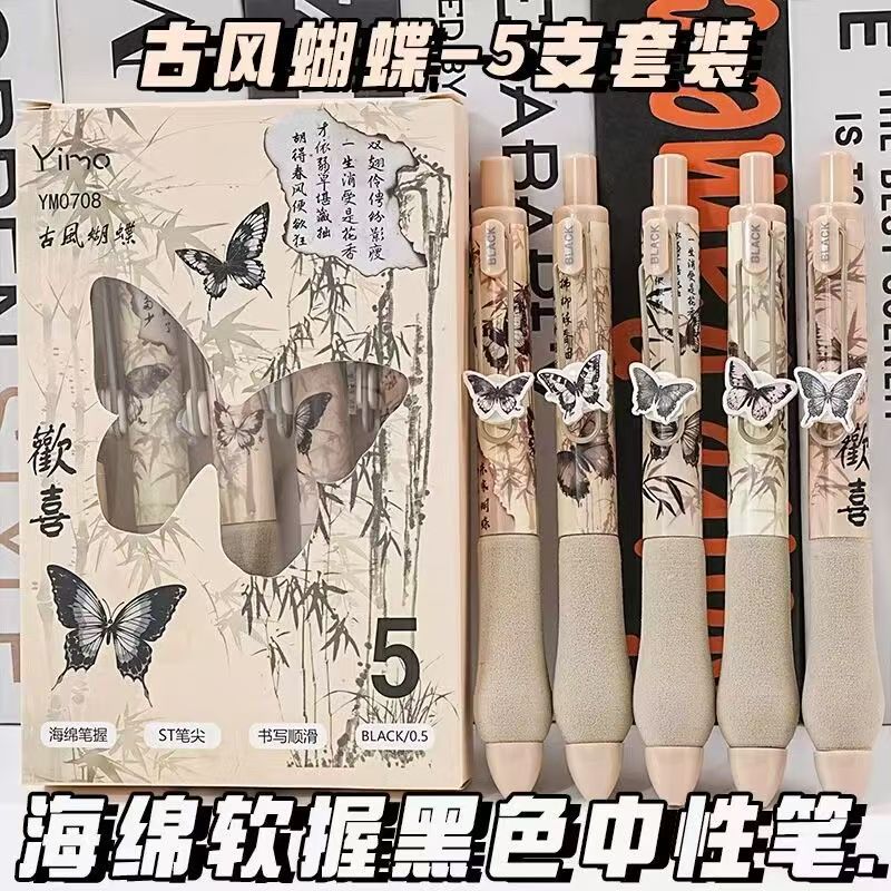 欧包ins按动笔st弹簧头高颜值减压护套0.5mm顺滑速干中性笔刷题笔