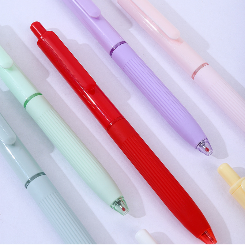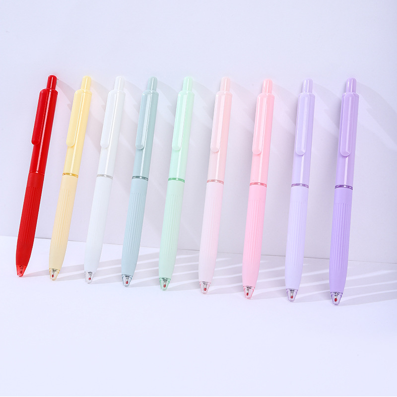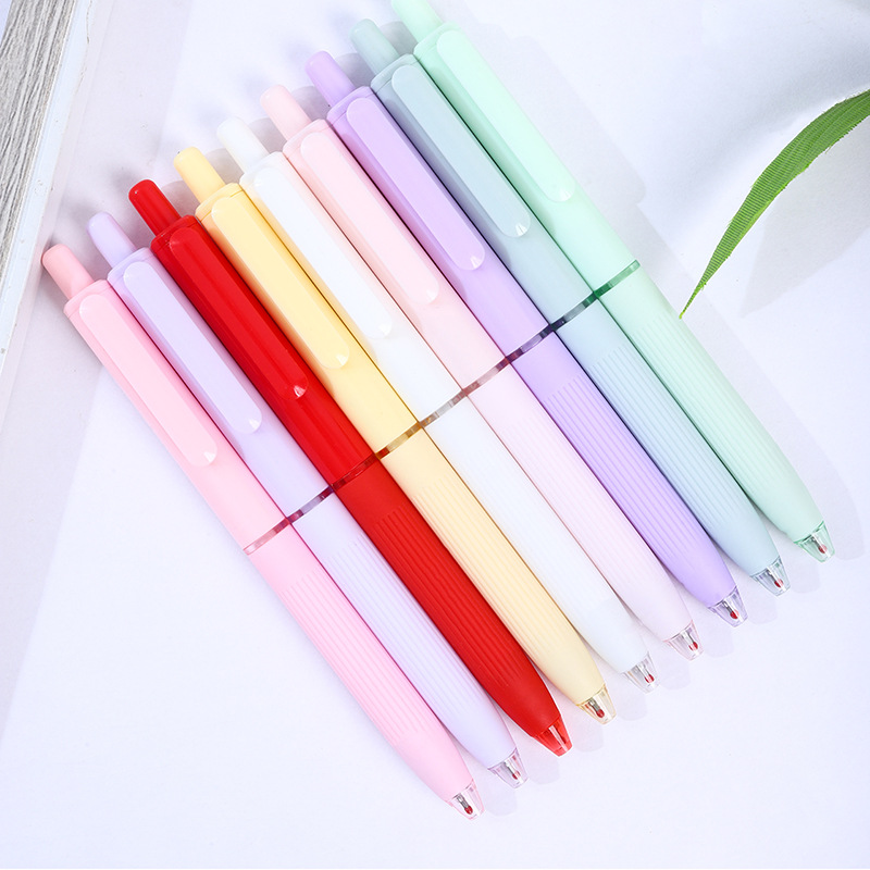 马卡龙色速干按动中性笔0.5软握刷题笔莫兰迪高颜值简约黑色水笔