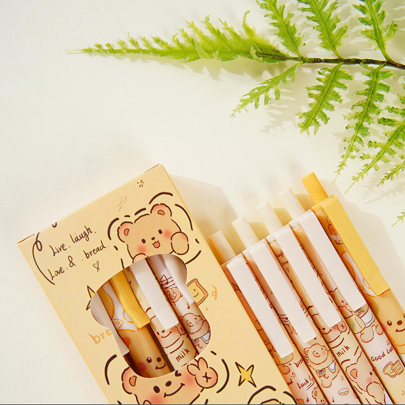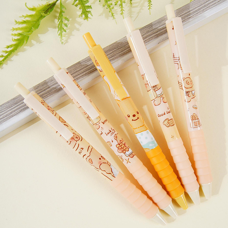 卡通小熊中性笔按动学生专用笔速干签字笔可爱按压式速干0.5m黑色