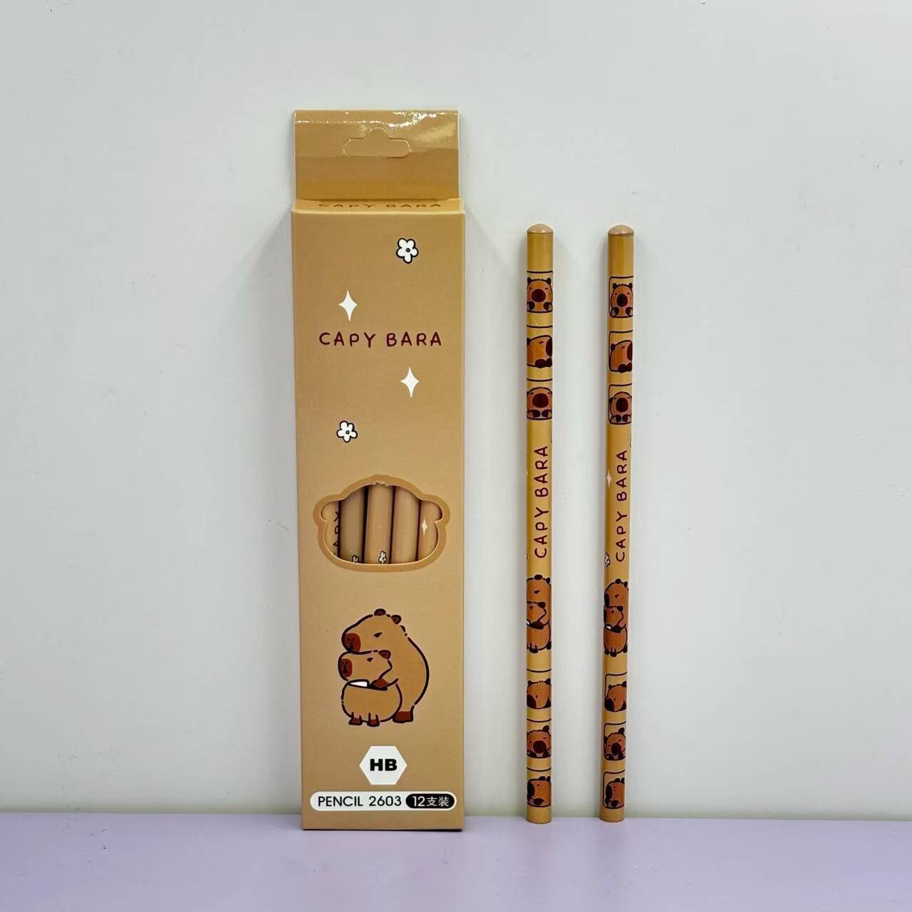 创意可爱卡皮巴拉铅笔盒装12支儿童学生书写绘画HB铅笔素描笔