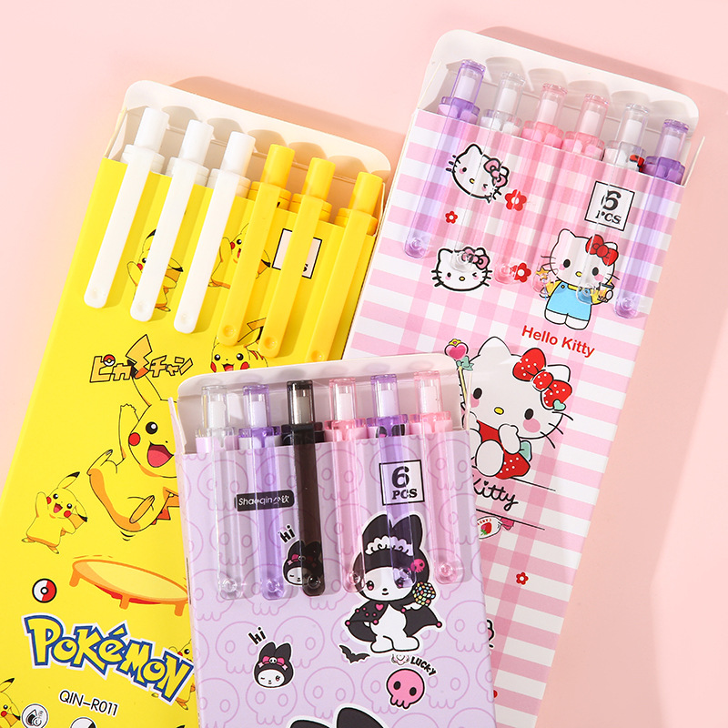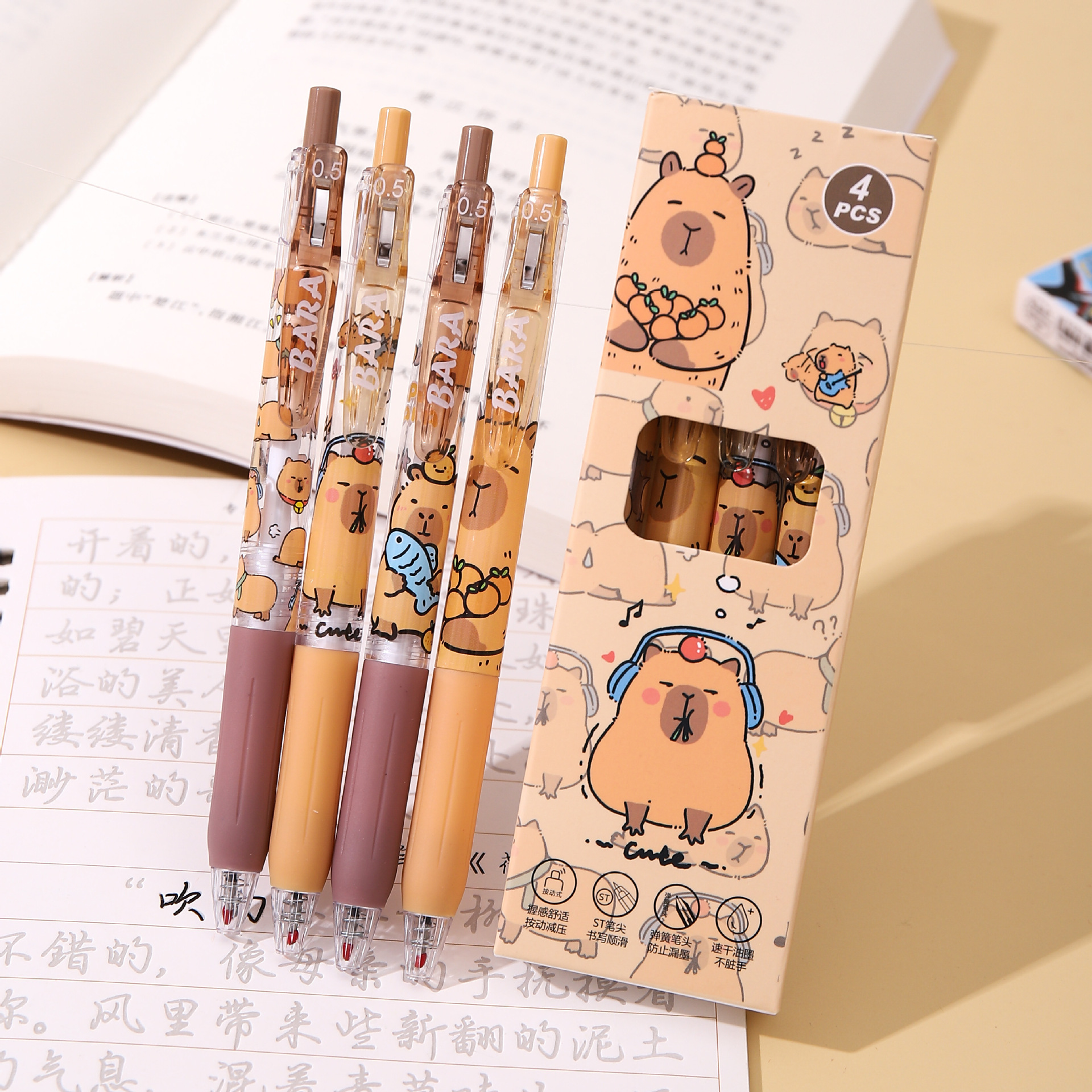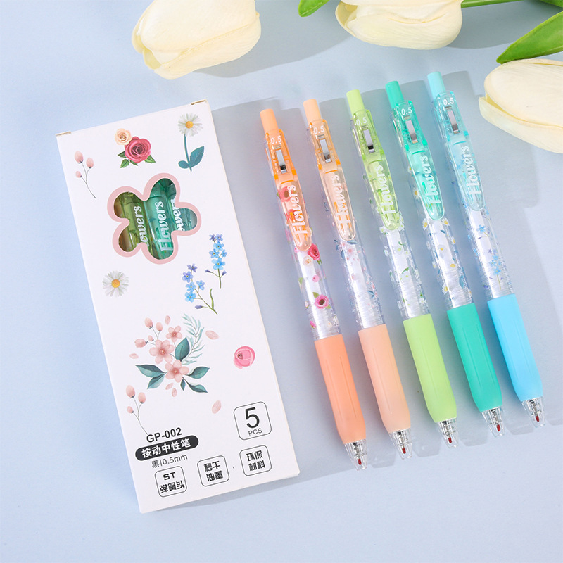 高颜值花膜按动中性笔卡通少女心可爱儿童圆珠笔签字黑笔st笔速干