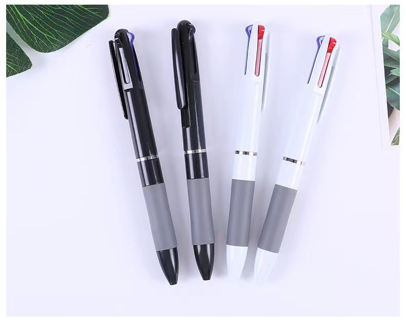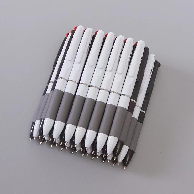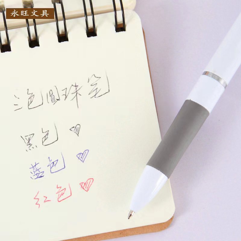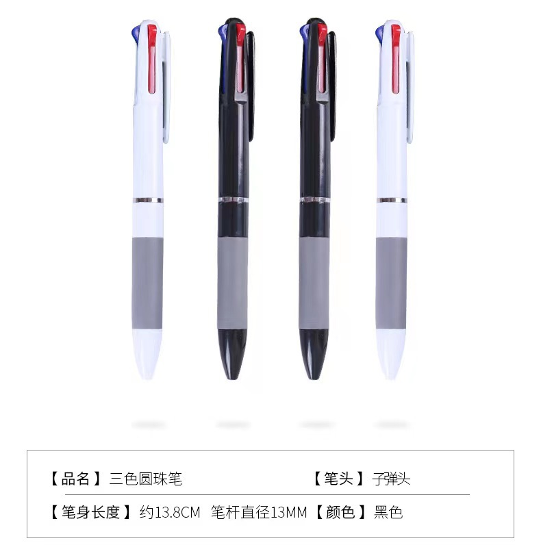 简约款三色圆珠笔高颜值按动笔学生办公书写签字红蓝黑色按压笔