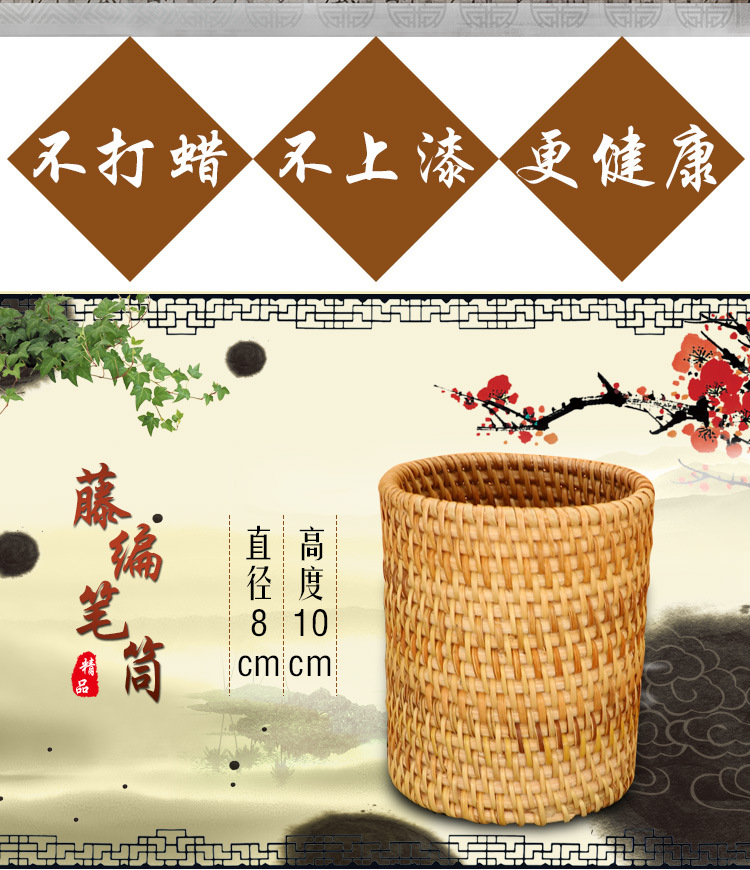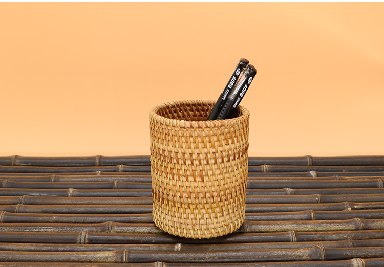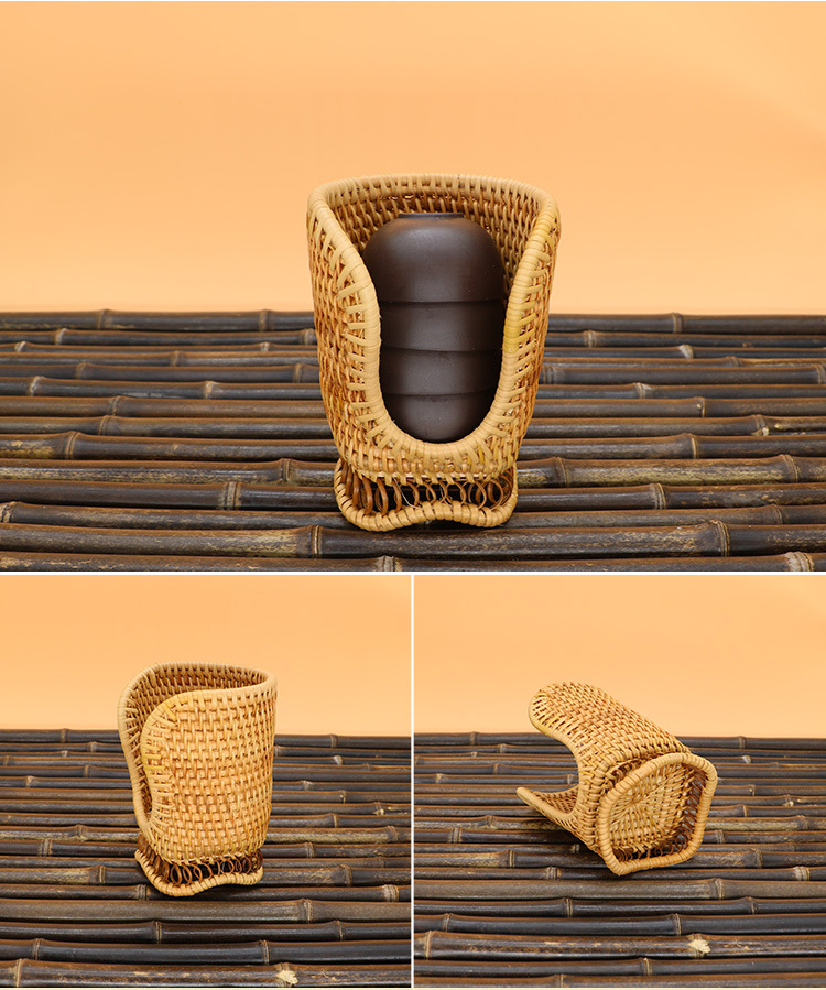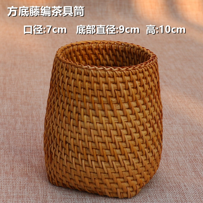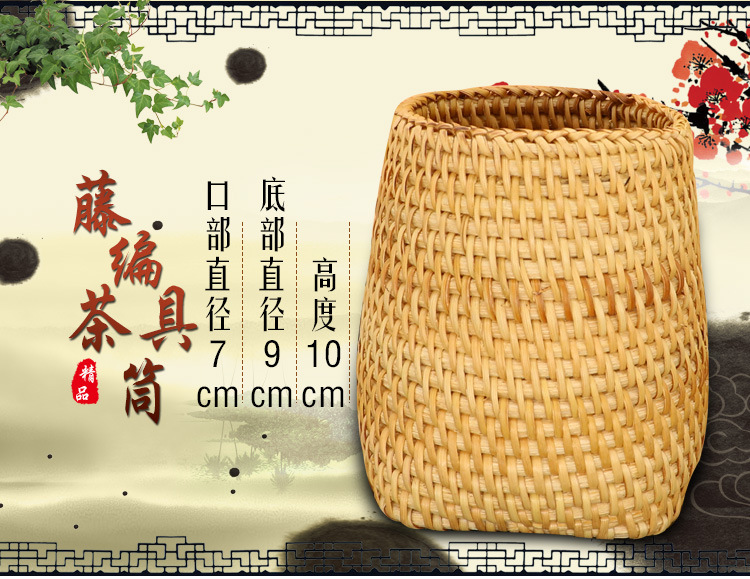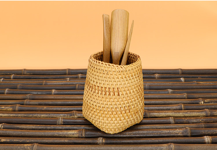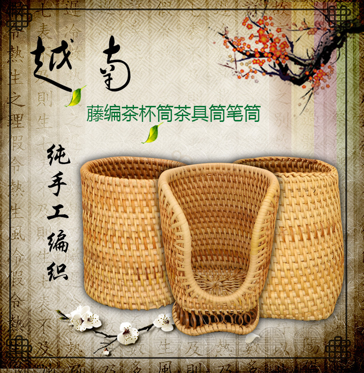 越南秋藤编笔筒 茶具竹茶夹茶勺茶针 普洱茶六君子茶道配件收纳筒
